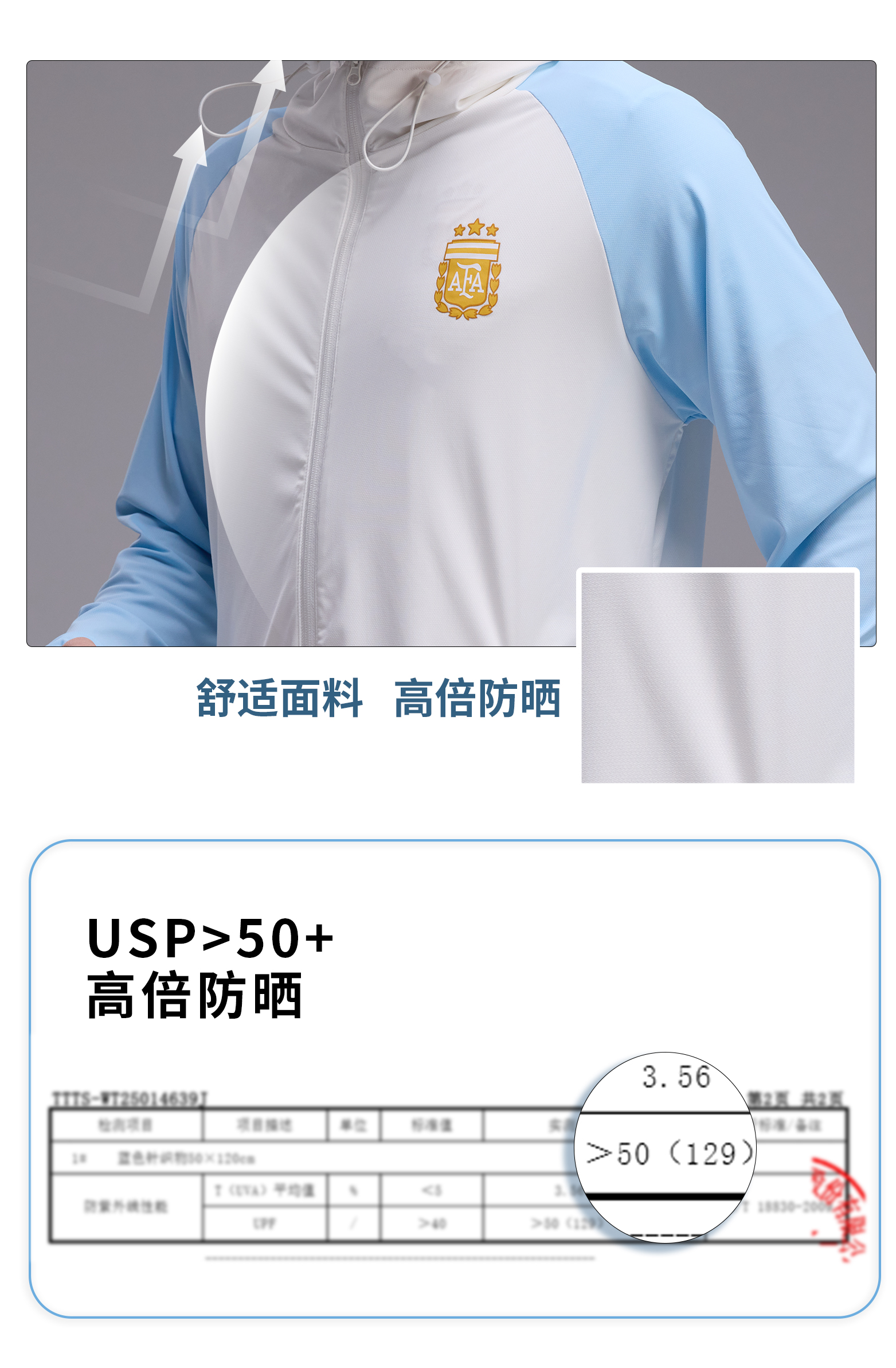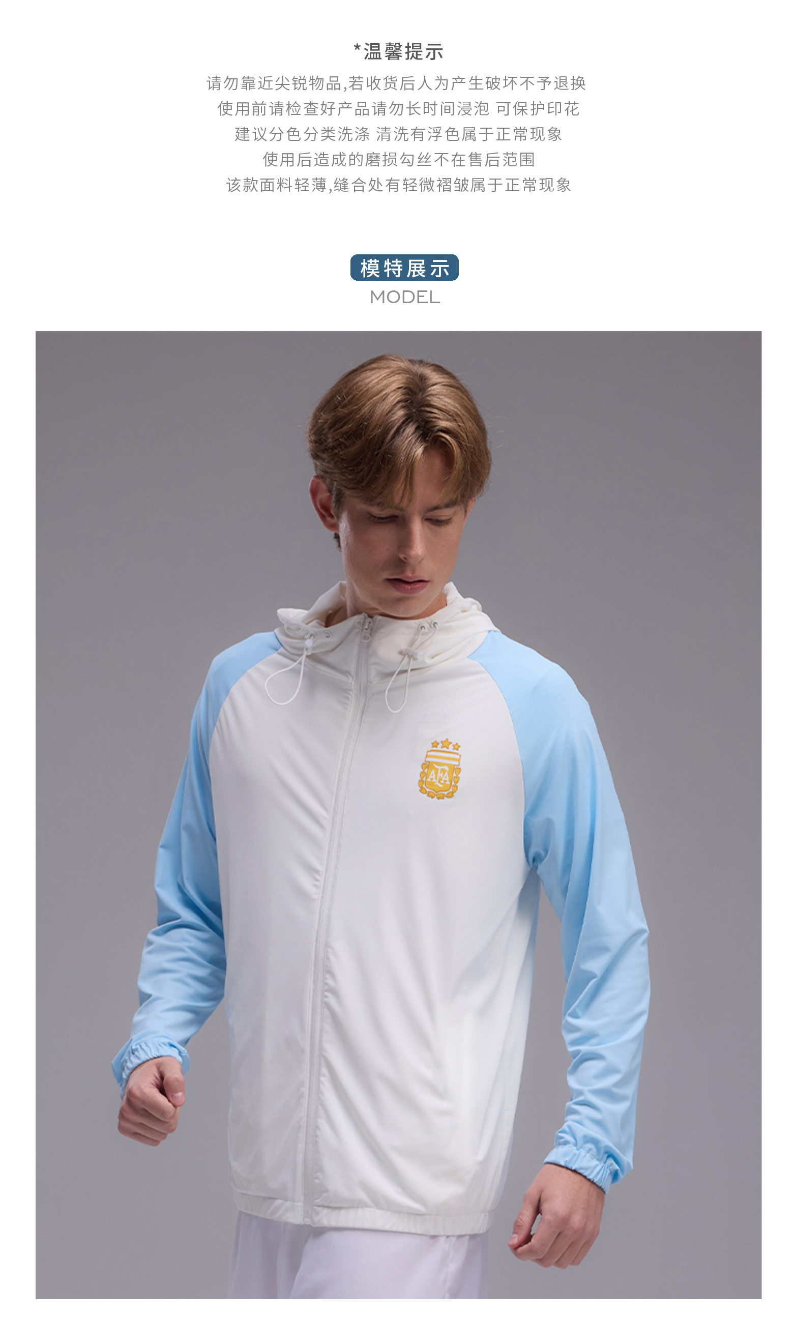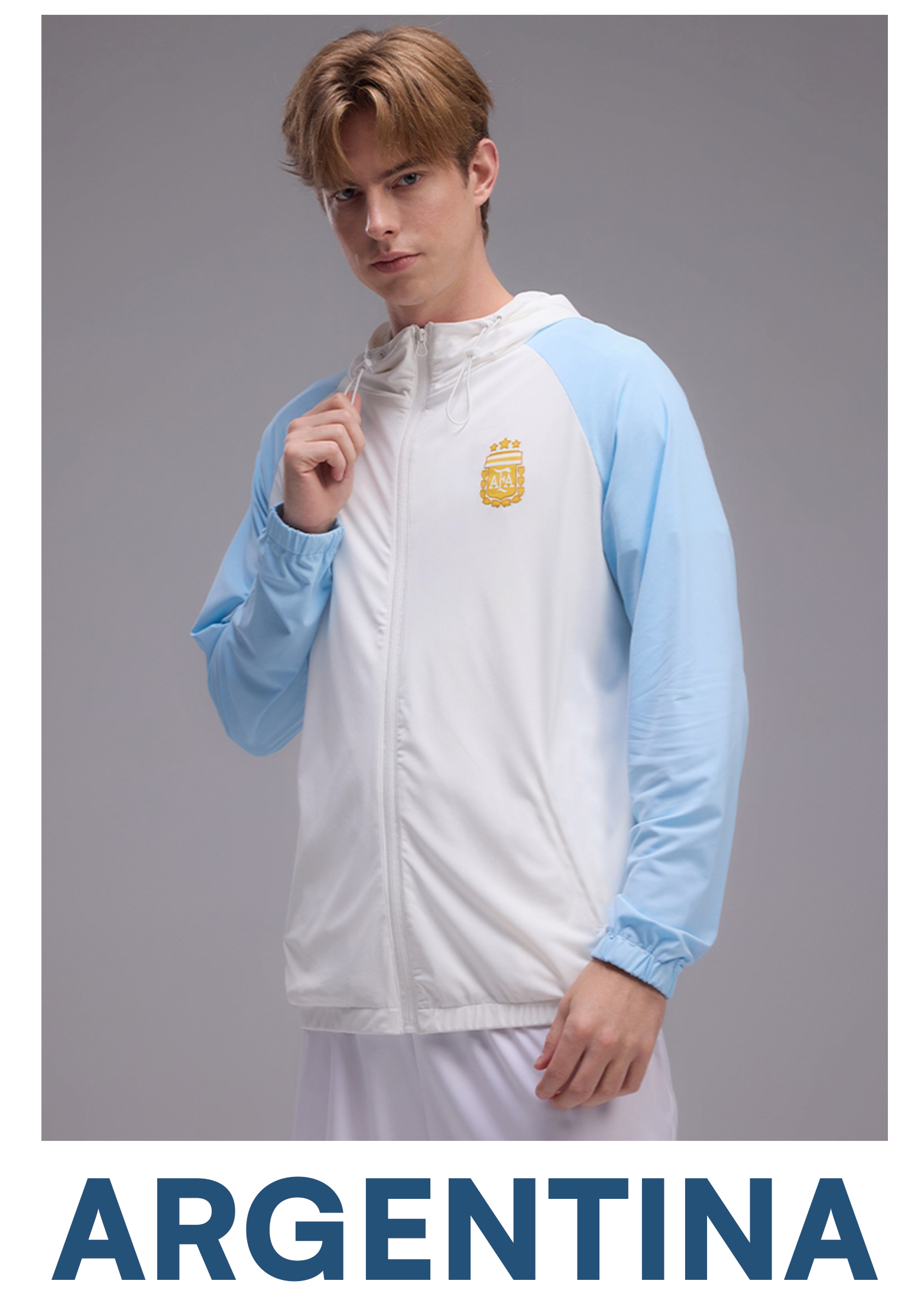 【官方正版】阿根廷国家队 | 拼色皮肤衣蓝白连帽松紧袖口拉链防晒衣外套