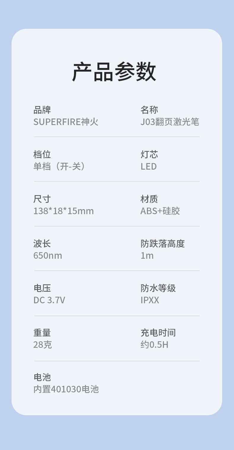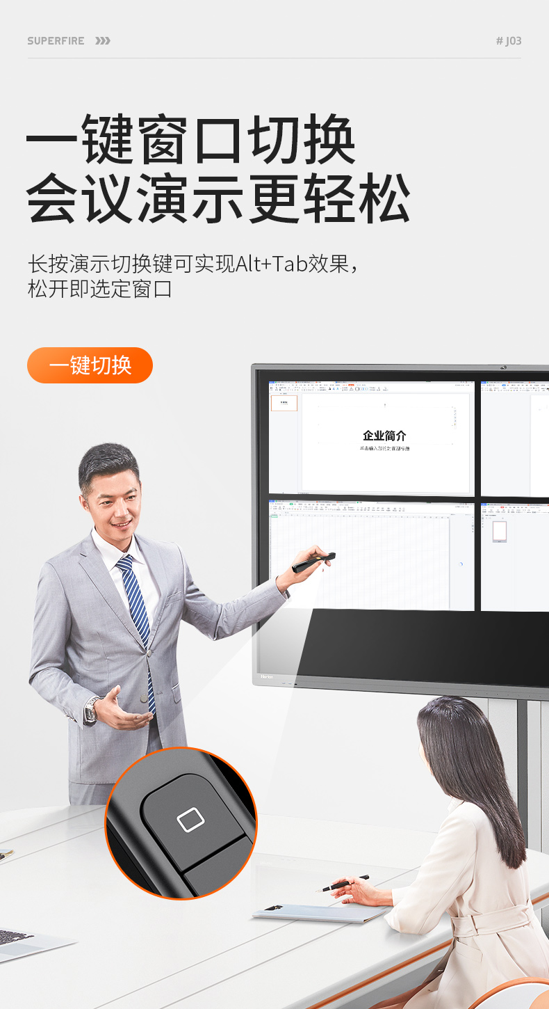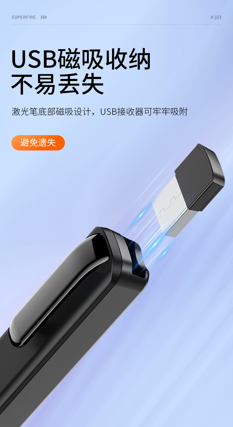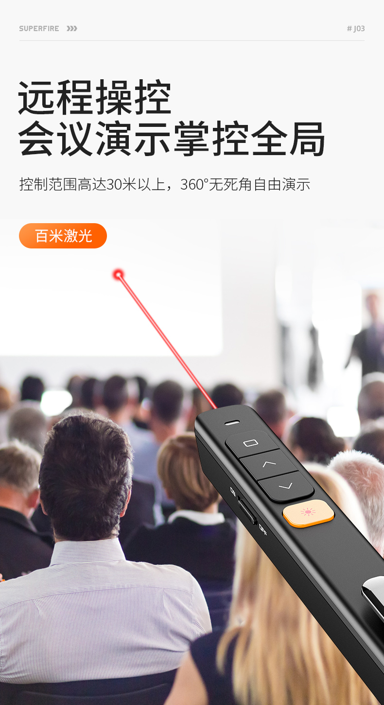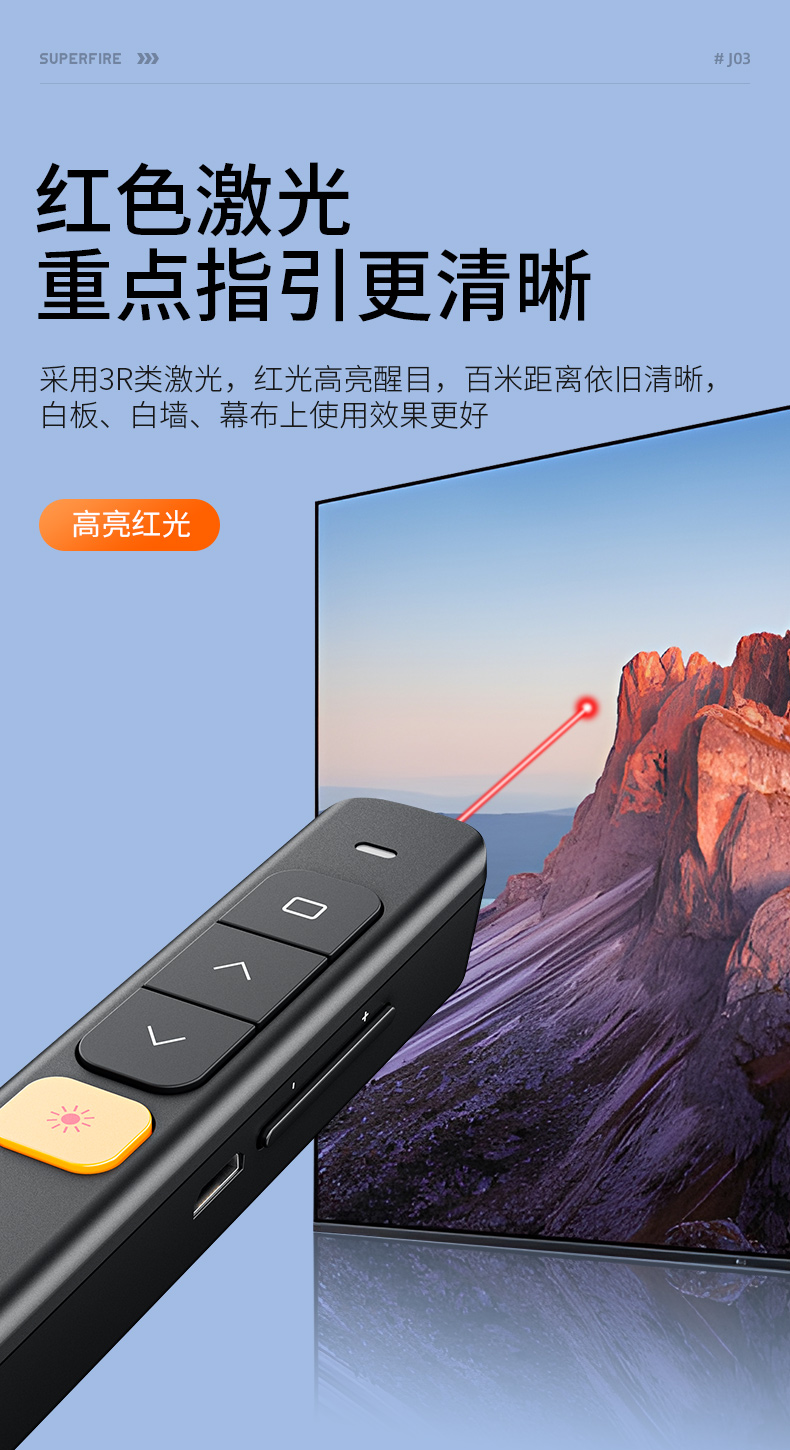 SUPERFIRE神火J03激光翻页笔多功能充电ppt教师用电子白板投影仪笔