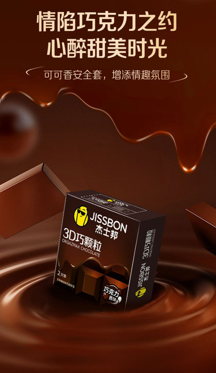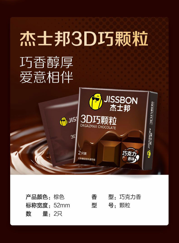 杰士邦避孕套3D大颗粒狼牙棒超薄安全套持久套巧克力香玫瑰香情人节礼物 杰士邦3D巧颗粒2只