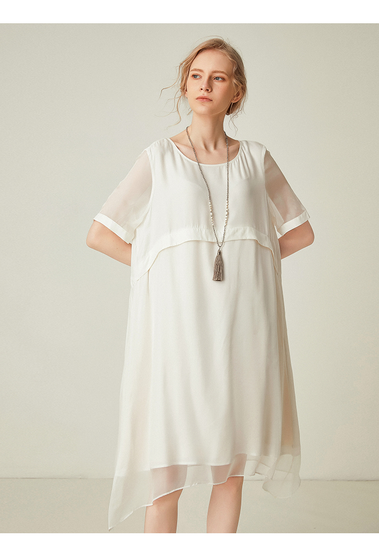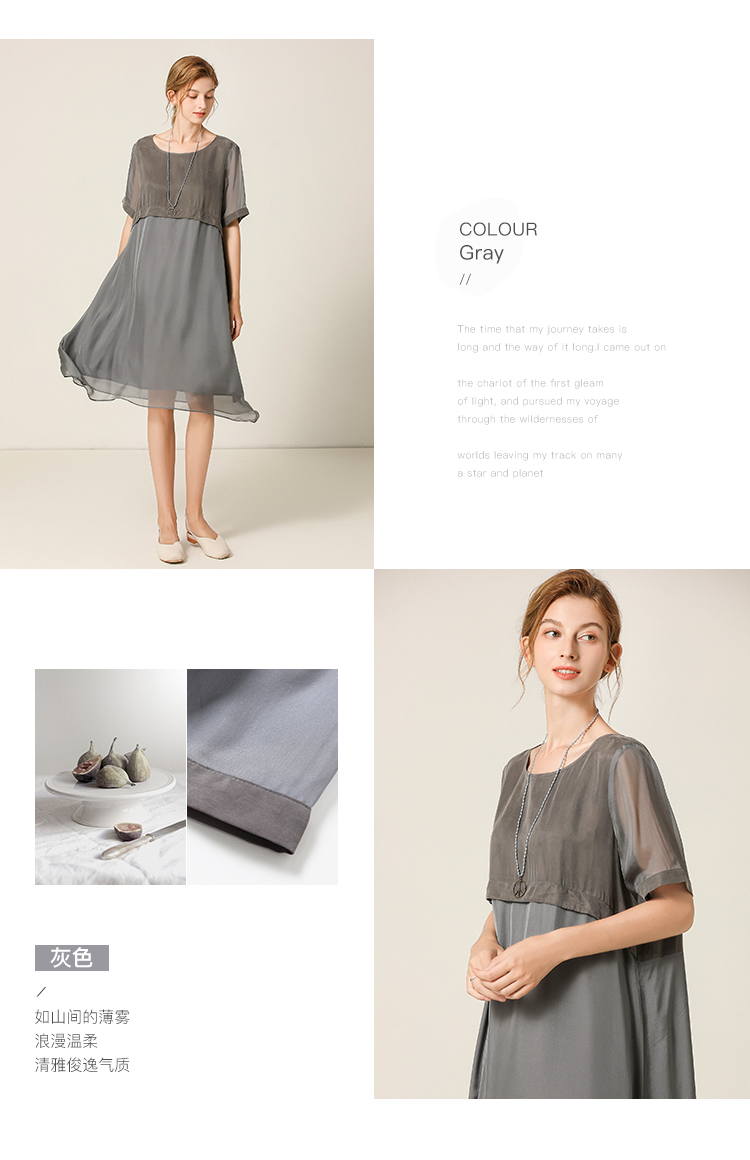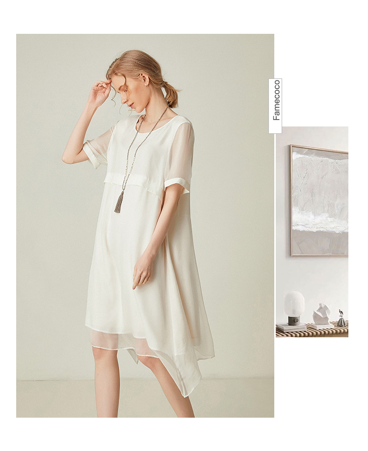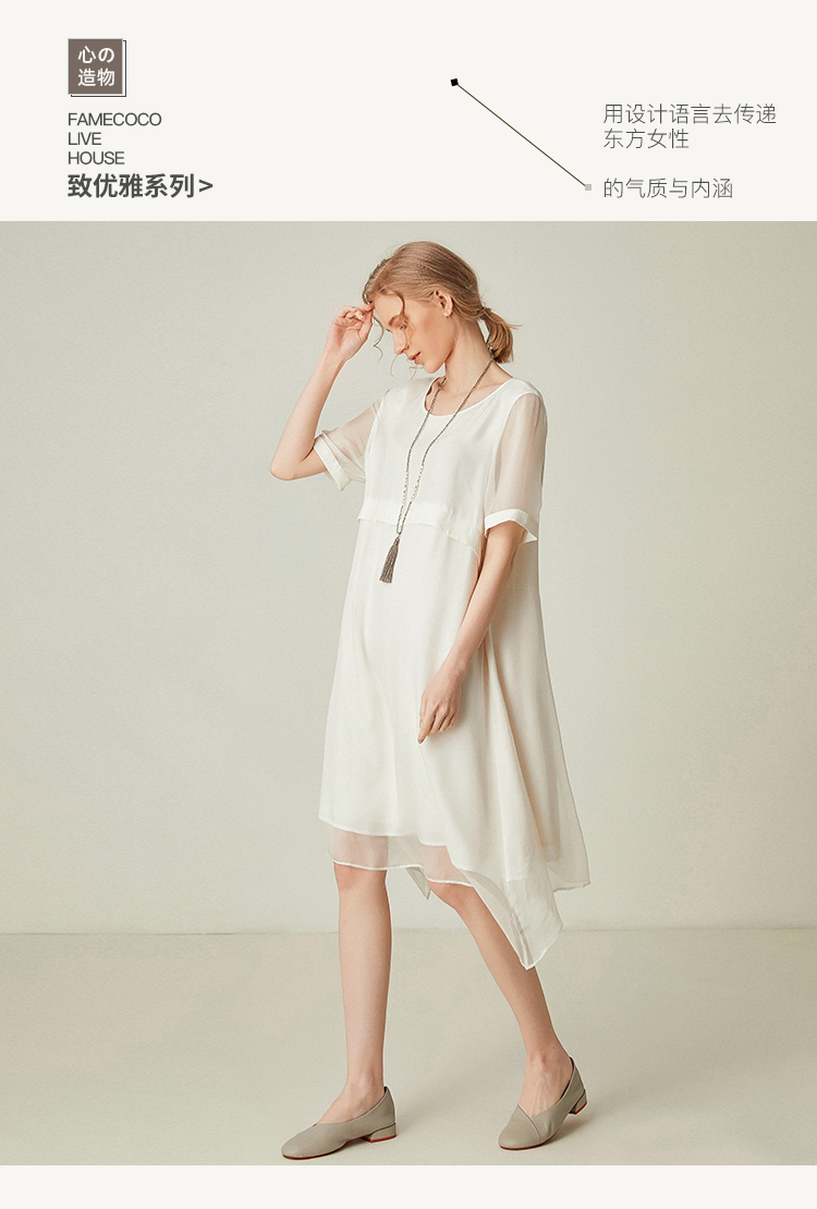 famecoco范可儿新款短袖连衣裙夏季宽松显瘦小清新中裙F193FA018