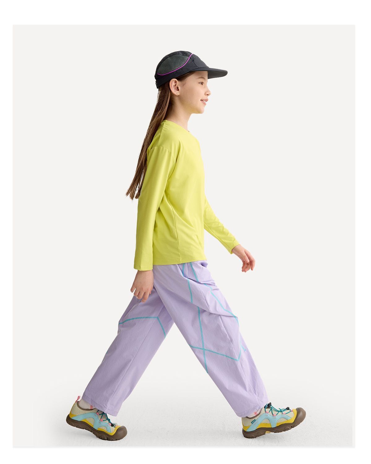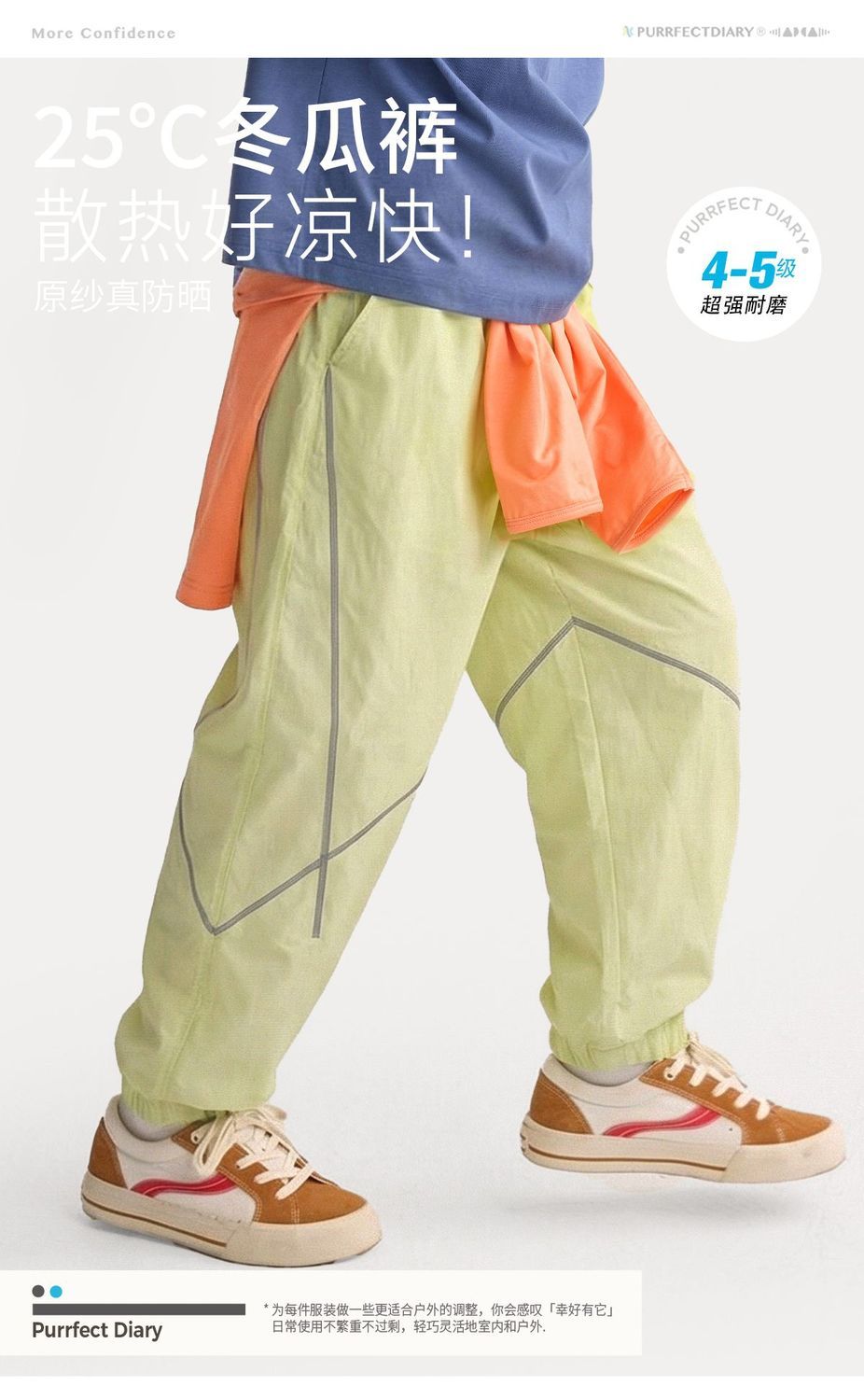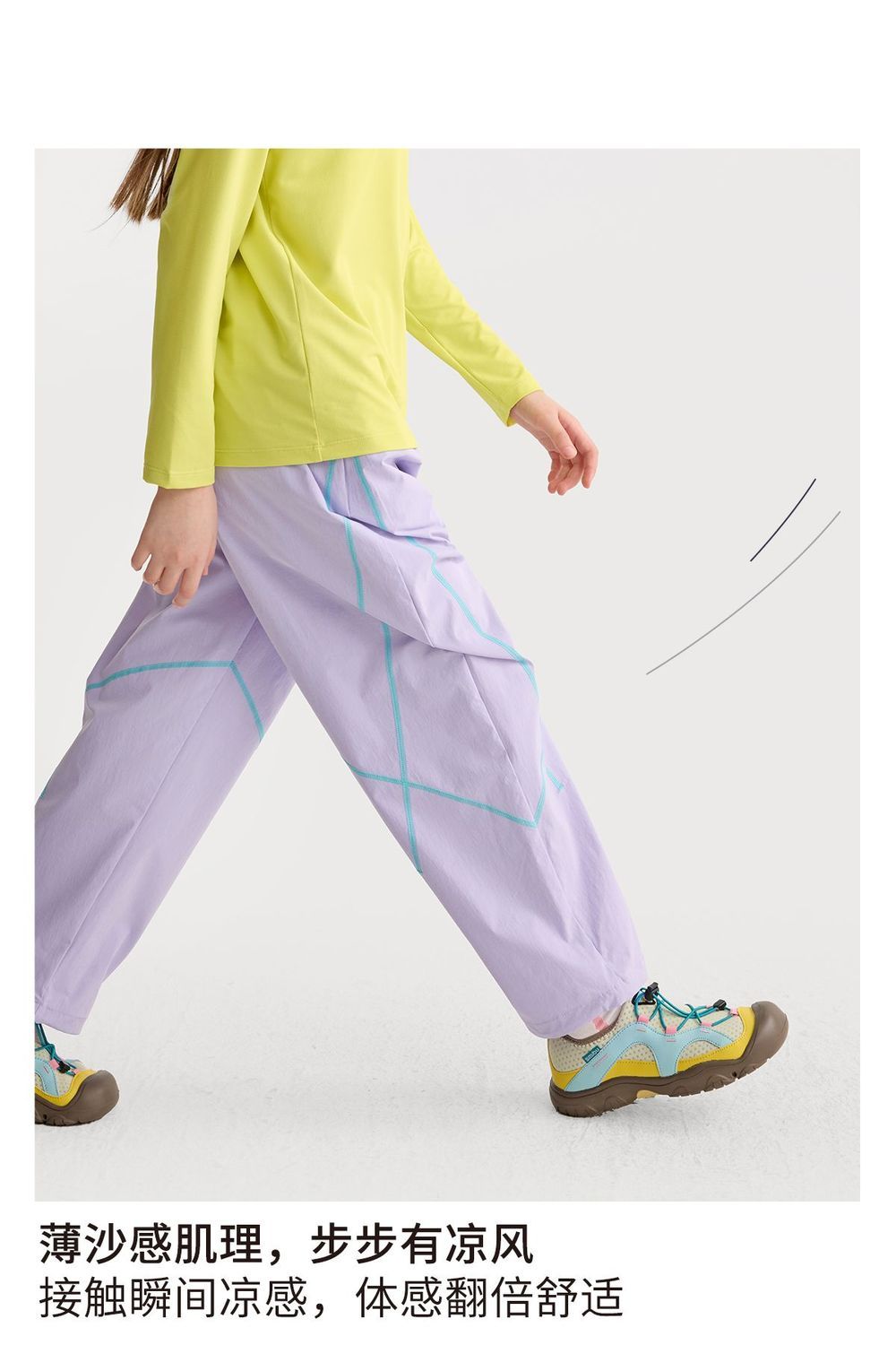 fx-咕噜日记儿童户外撞色线休闲裤男童原纱防晒春夏女童轻量运动长裤PCK2604
