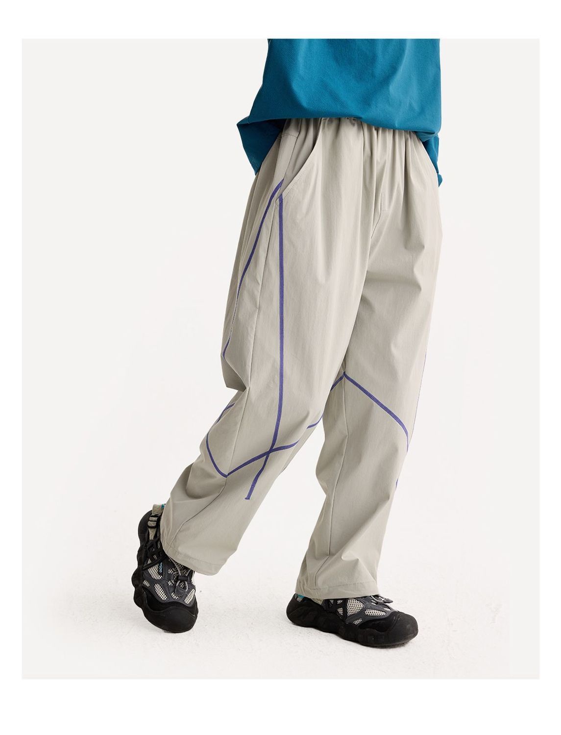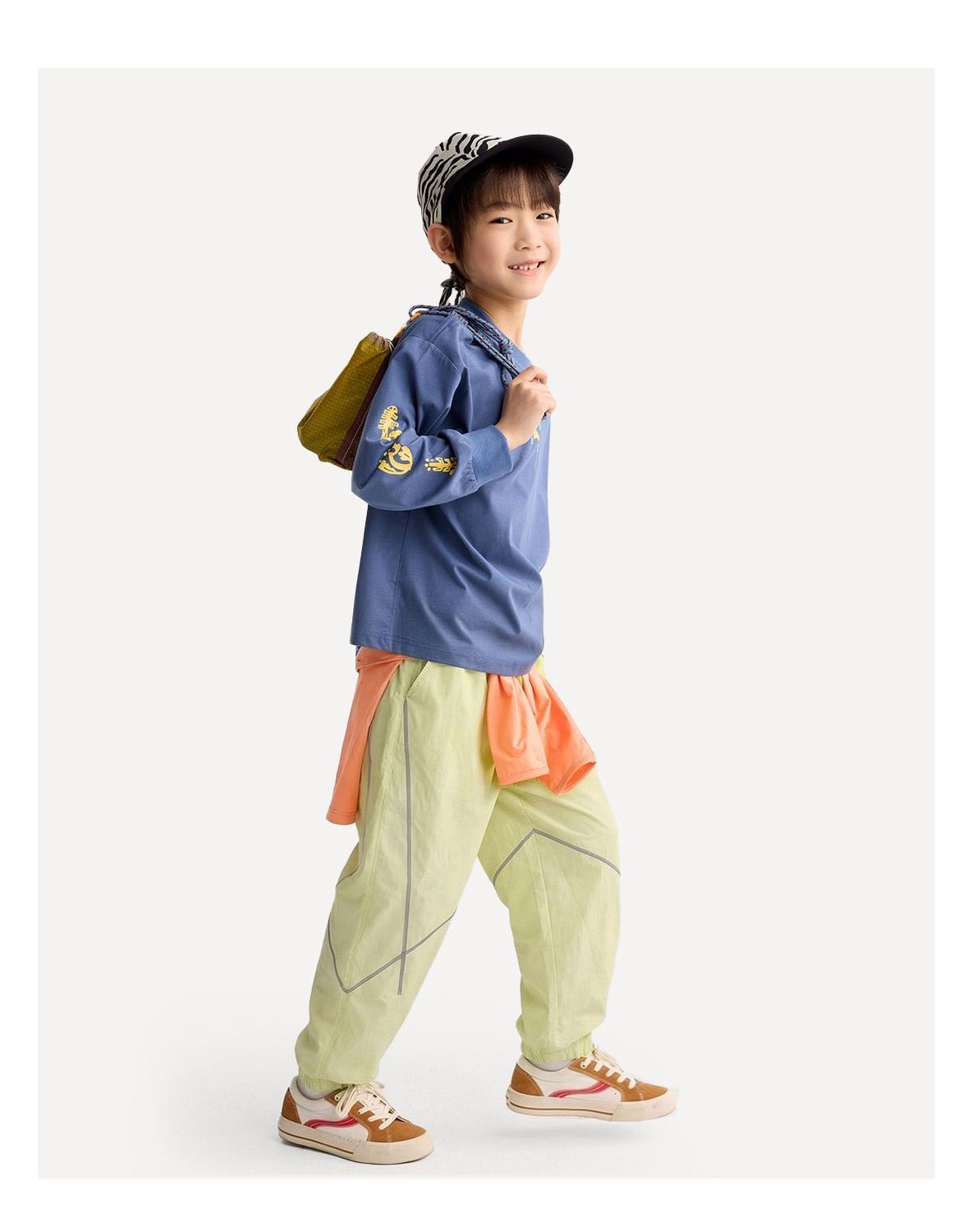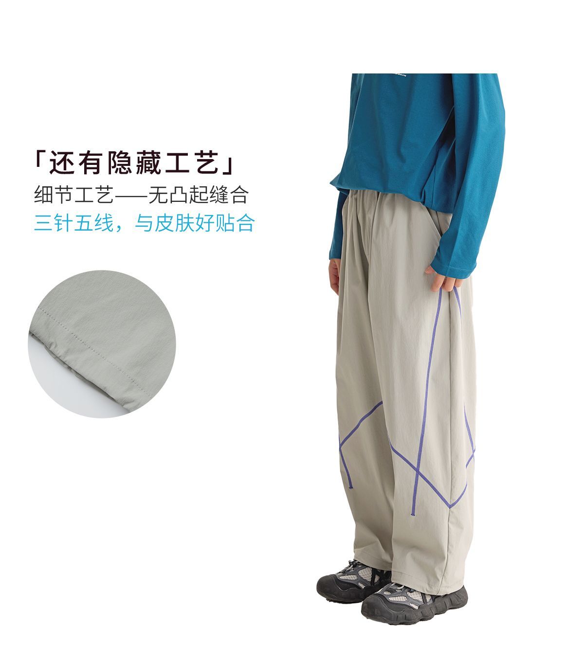 fx-咕噜日记儿童户外撞色线休闲裤男童原纱防晒春夏女童轻量运动长裤PCK2604
