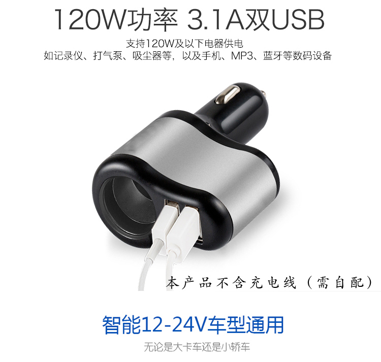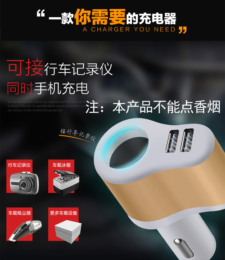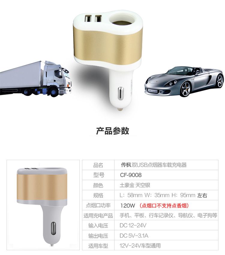 传枫 多功能车载充电器双USB单孔车充点烟器手机充电器(颜色随机发货)CF-9008