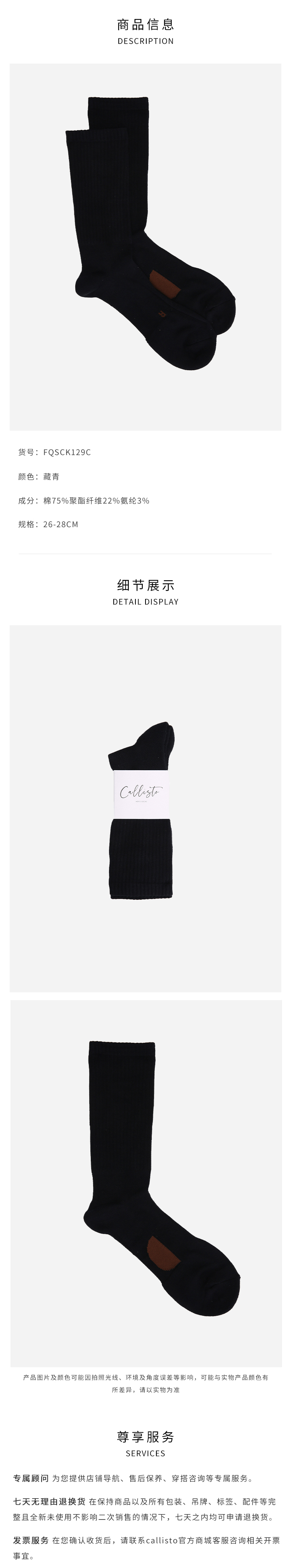 callisto藏青棉混纺袜子 FQSCK129C