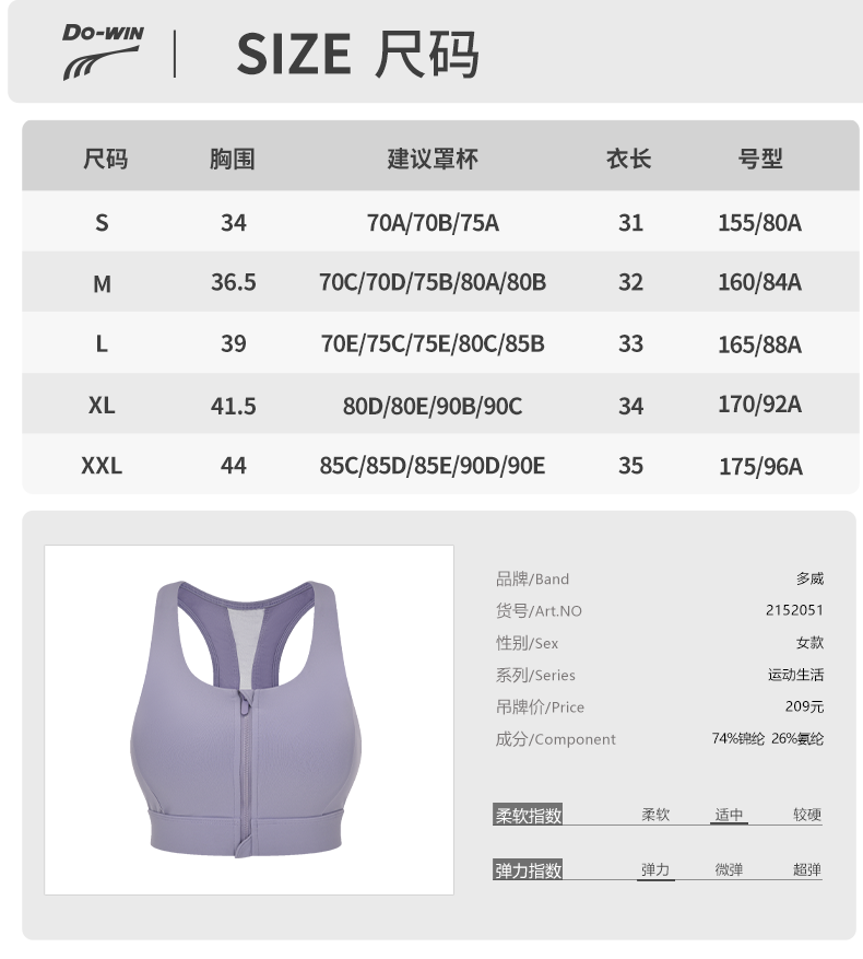多威新款上衣运动内衣高弹排湿女士背心2152051