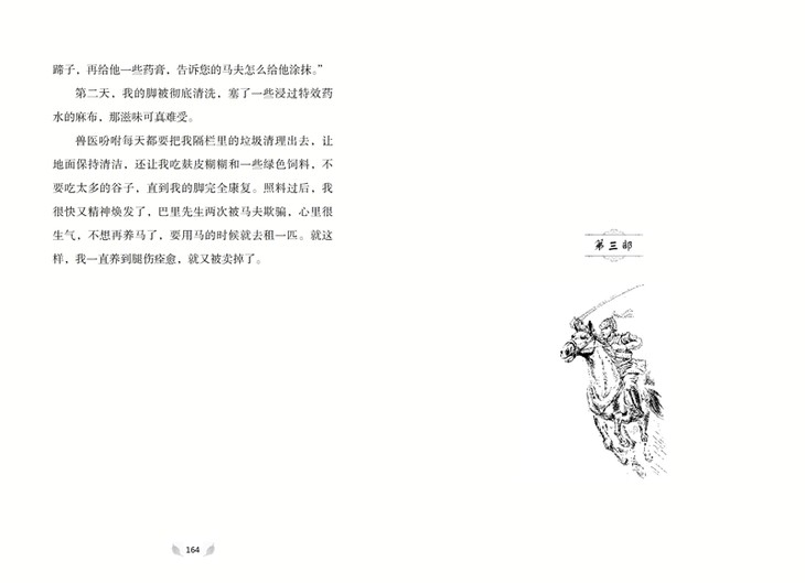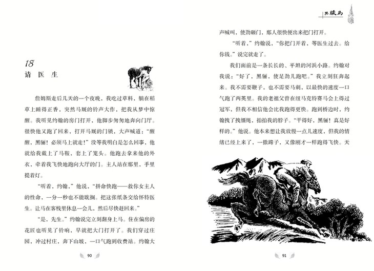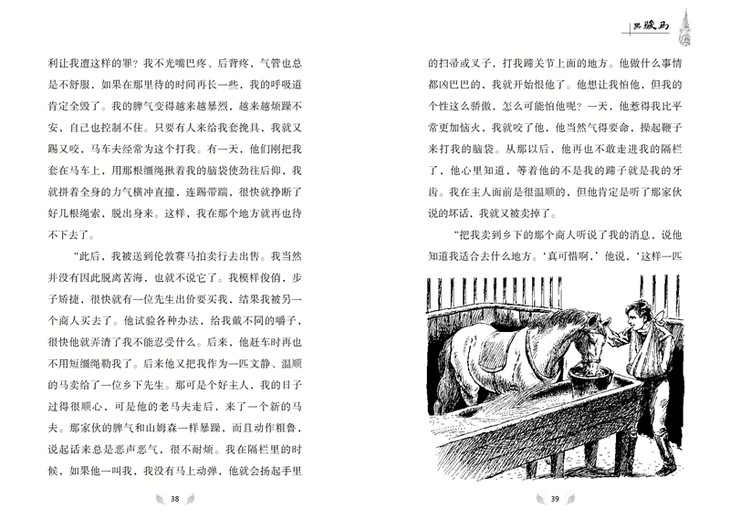 小说主人公“黑骏马”是一匹漂亮的优种黑马,从小生活在贵族人家,受过良好的训练,性格温顺,聪明机智,备受主人喜欢。但是好景不长,主人家庭发生变故,黑骏马不得不被卖掉。他一连被卖过多次,接触过各种人:有喝多了酒就拿马撒气的醉汉,有动辄抽鞭子的出租马车车夫,有把动物当死机器的野蛮人,也有把动物当成朋友的好人家。黑骏马尝尽了人间的甜酸苦辣,*后侥幸有了一个好的归宿