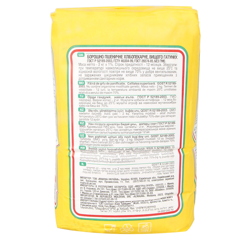 【中欧班列精选】WWJ 俄罗斯原装进口马克发小麦面包粉烘焙原料面粉袋装1kg/2kg装