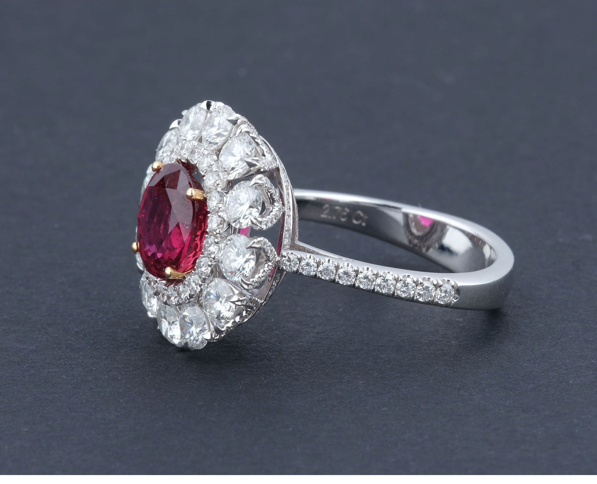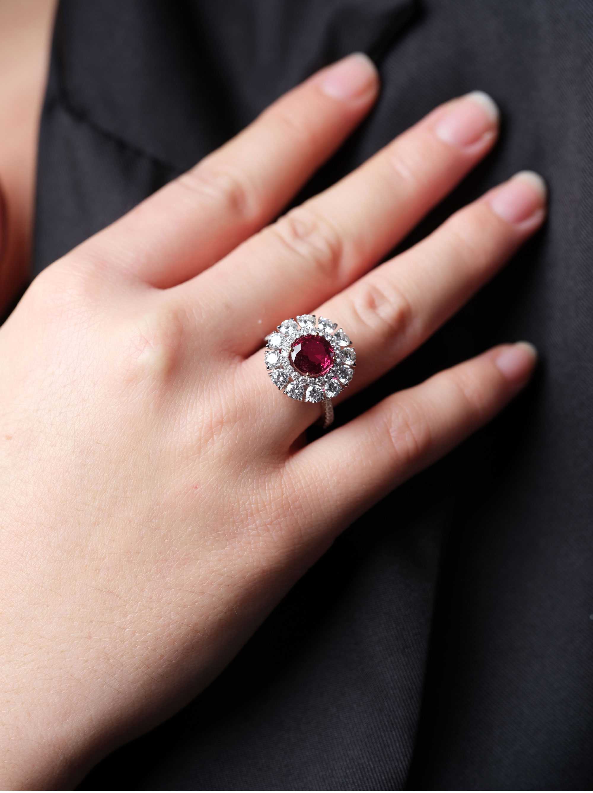 2000年代欧洲出品18k白金镶嵌钻石及红宝石戒指