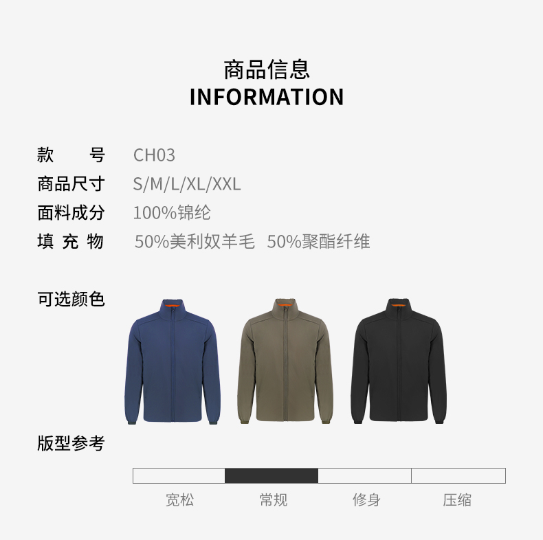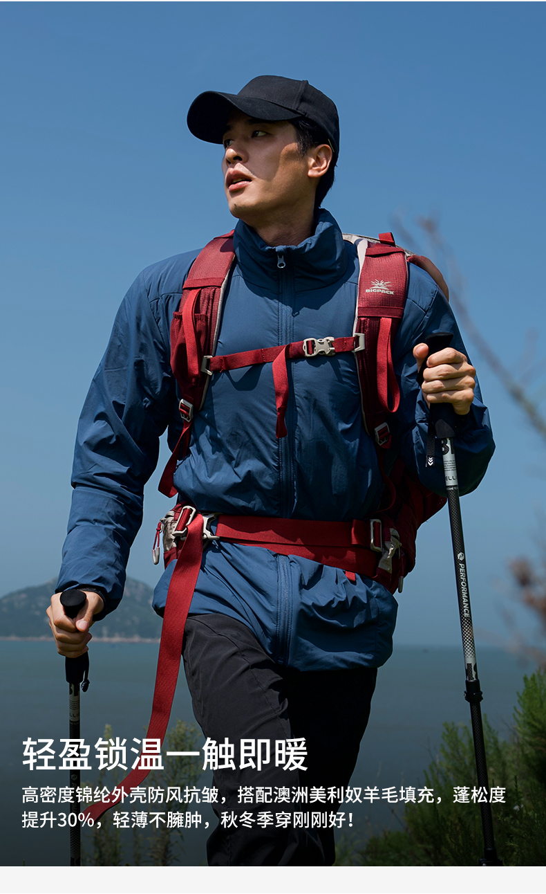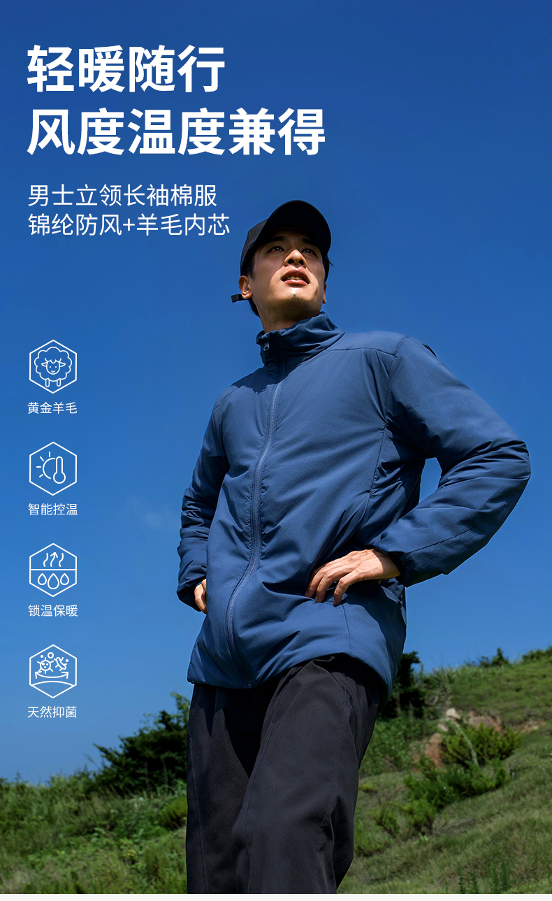 灰壳秋冬保暖羊毛服户外运动立领羊毛外套美利奴羊毛轻柔保暖外套