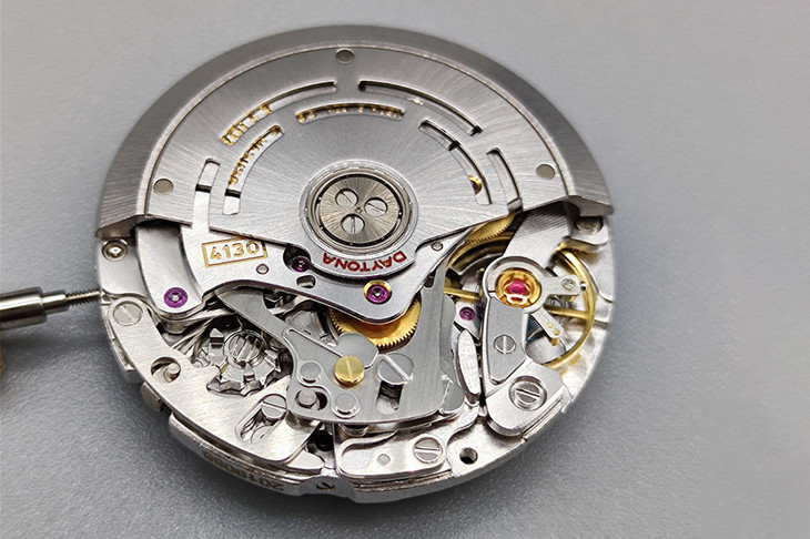 第一:4130劳力士迪通拿之所以强大,首先是在于对机芯的改制,复刻版迪通拿到今天为止其实也有两个版本,一个7750机芯版本,一个为4130机芯版本,但是4130版迪通拿,是定位为高端腕表,这里大家一定的区分,同时在入手腕表的同时,也得问复刻商需要那种机芯!因为两者机芯不同,价格相差很大的数据!在机芯的设计上4130机芯此次,使用了定制版KIF避震器,KIF避震器是定位比较高端的机芯避震器,走时更加稳定,同时大家也可以百度KIF是什么东西,简单说,这是用在高端腕表上面的避震器,能最大限度保护到腕表!如何识别机芯版本,可以直接用橡皮球,转开机芯,看机芯结构,当然妮影工作室也对机芯进行过实拍!