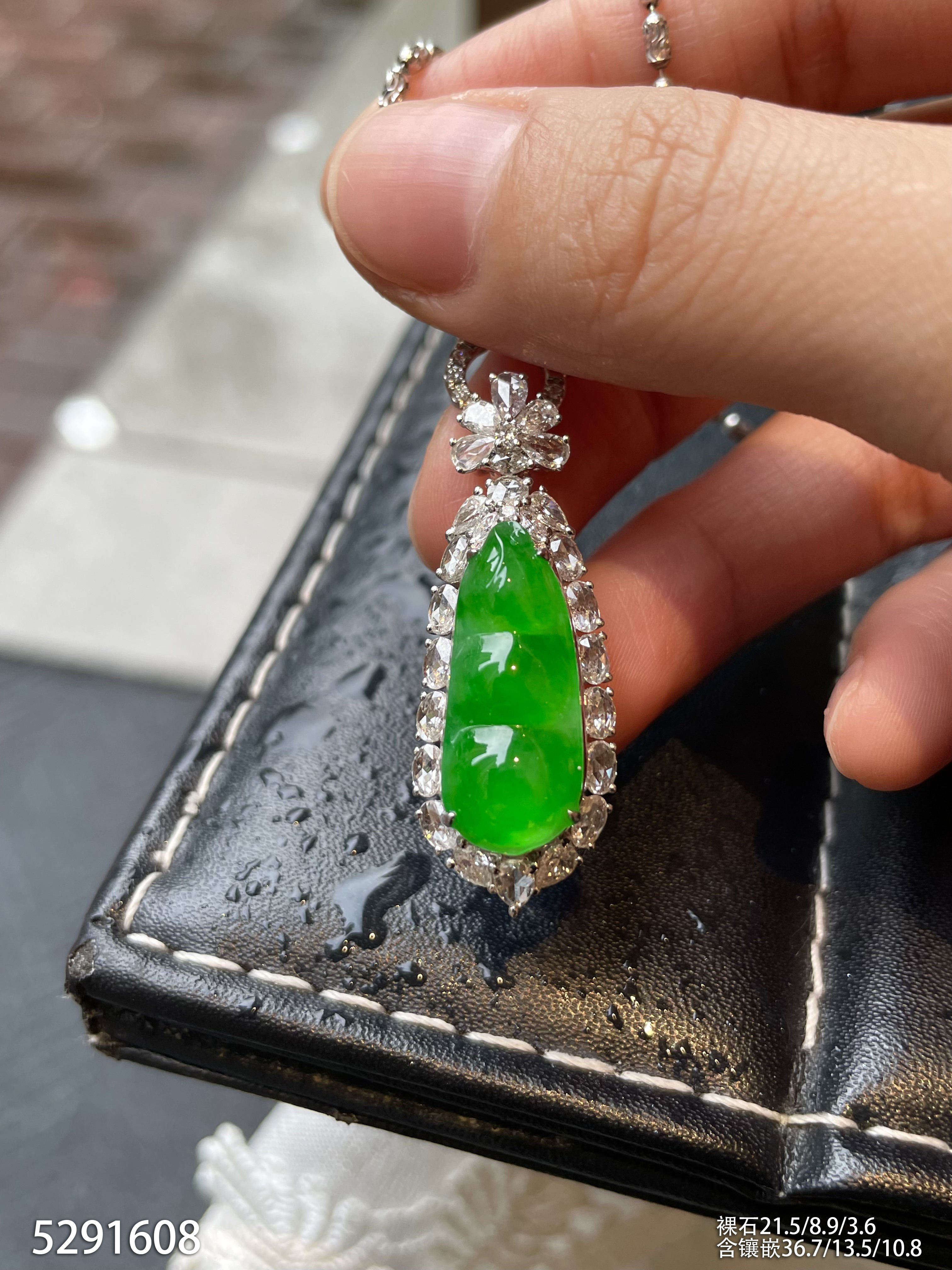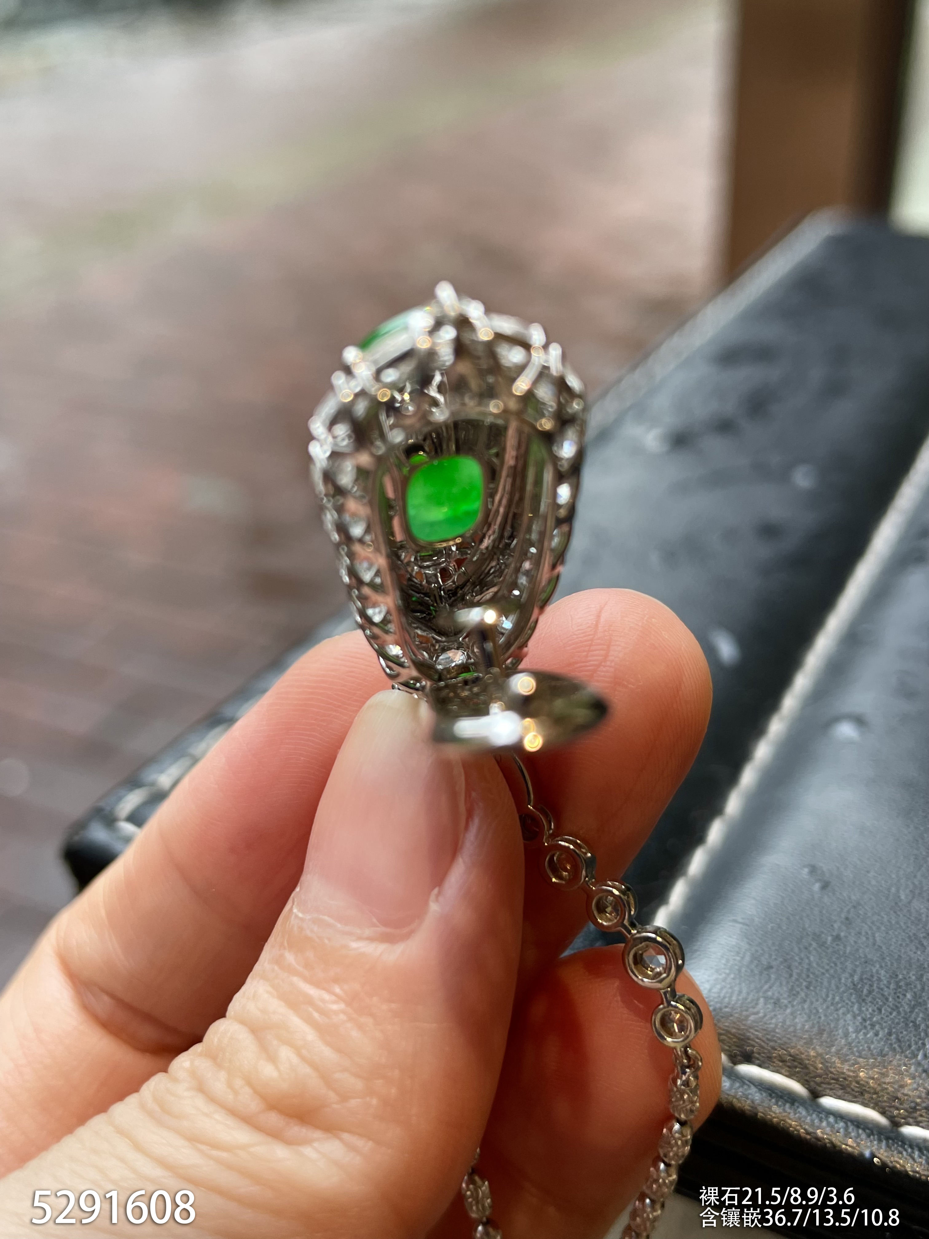 120-1232908,玻璃种木那艳绿蛋面戒指,具体价格微信咨询
