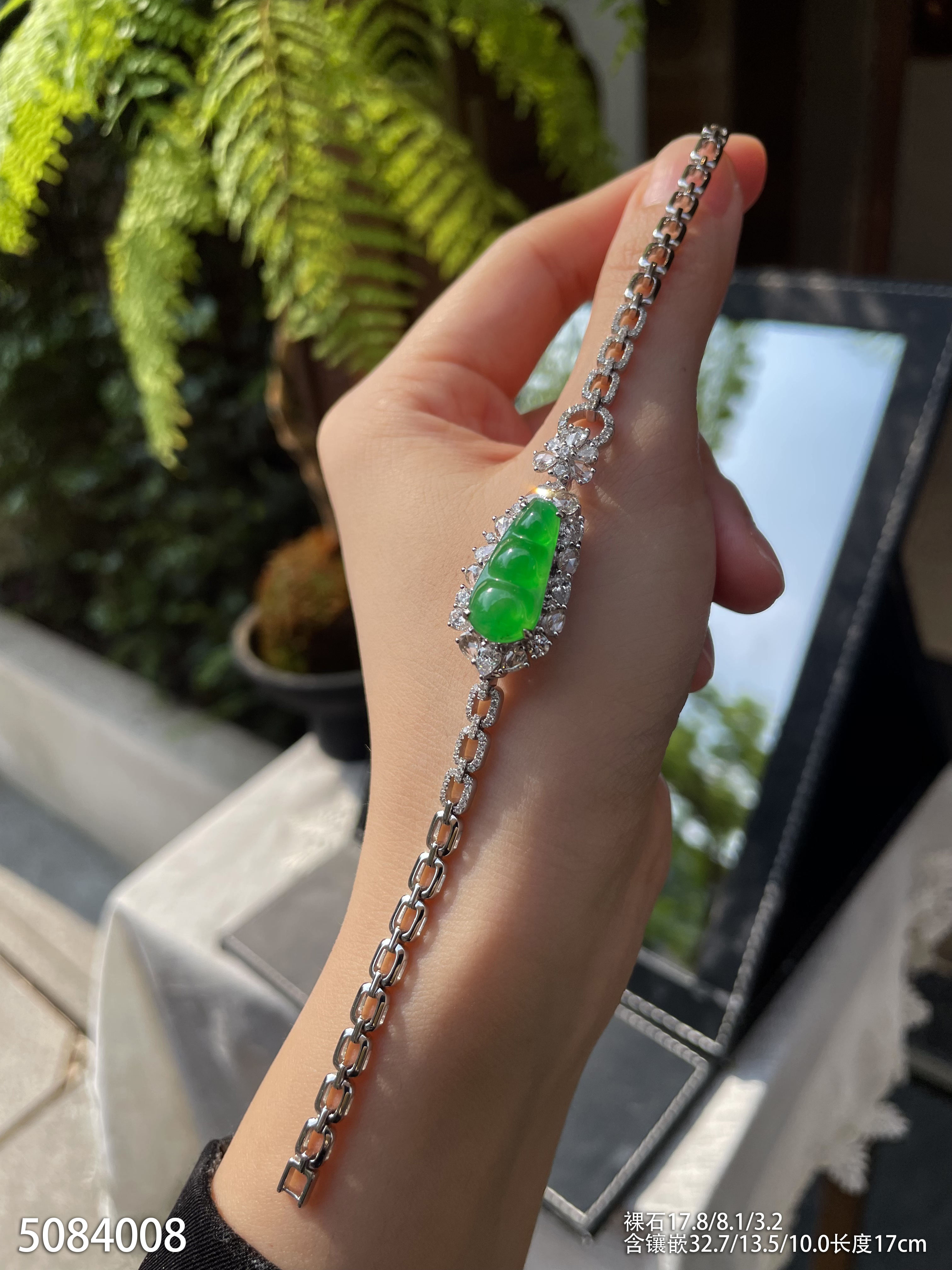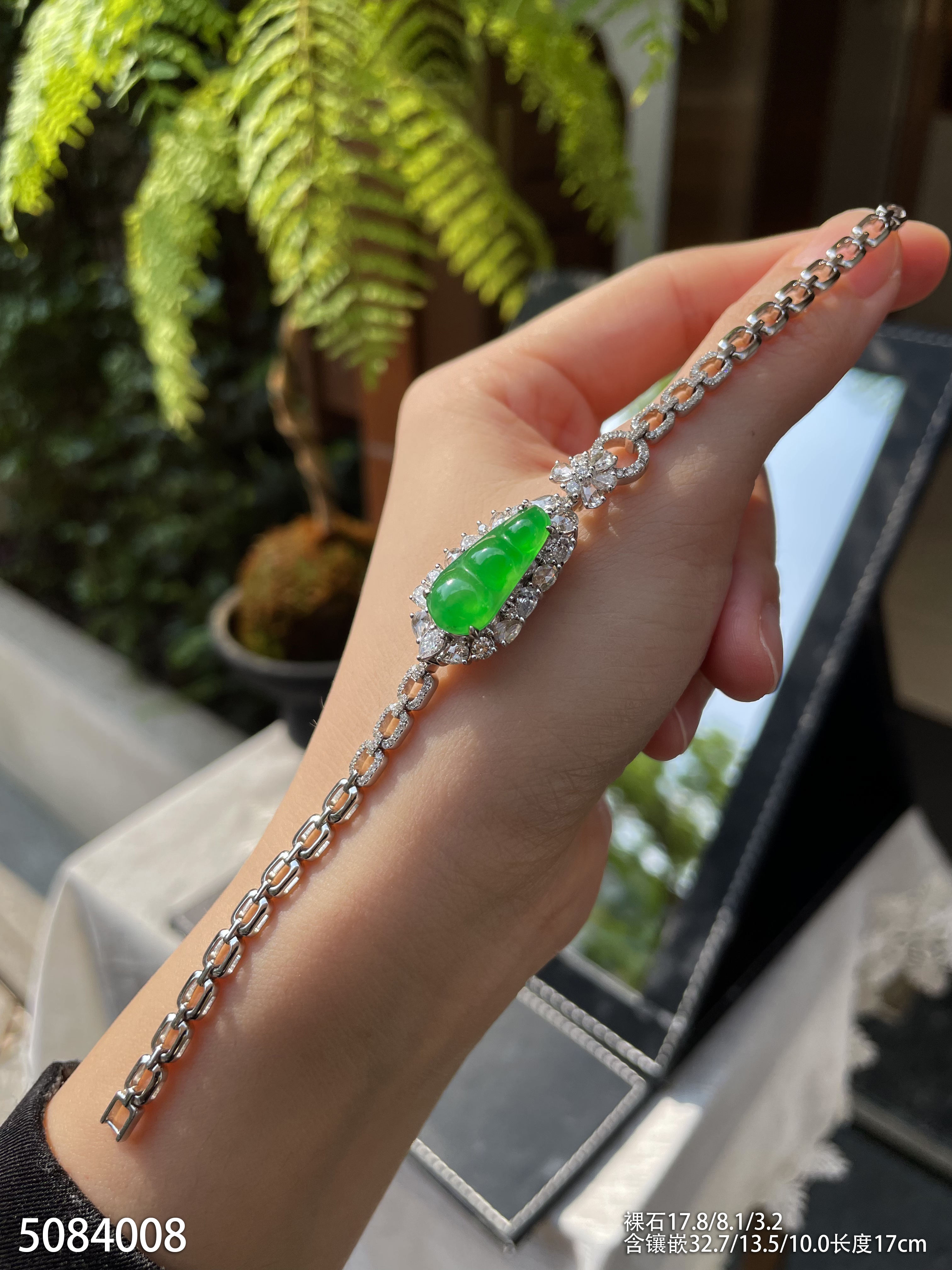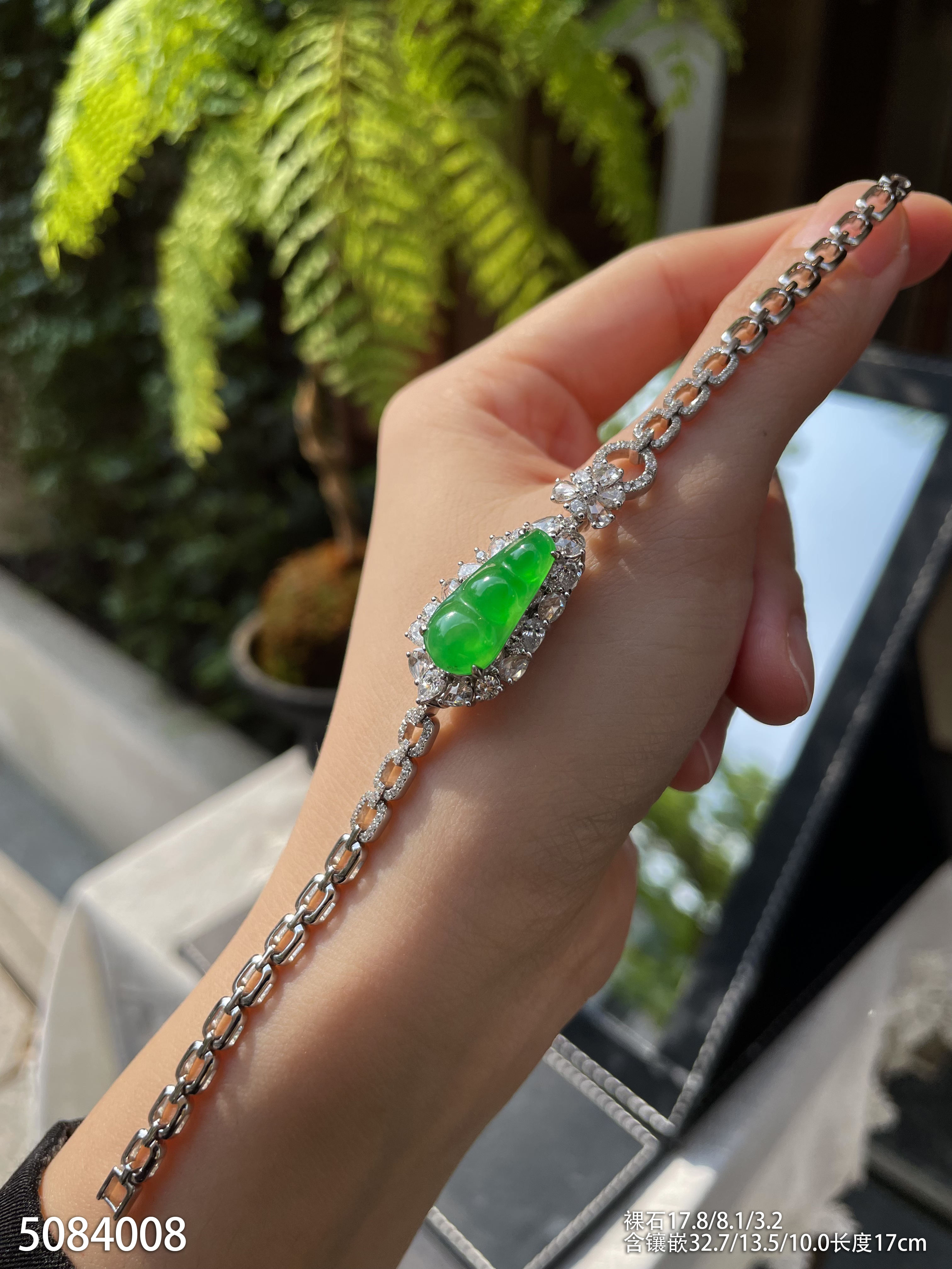 高冰种艳绿福豆手链 89999【5084008】