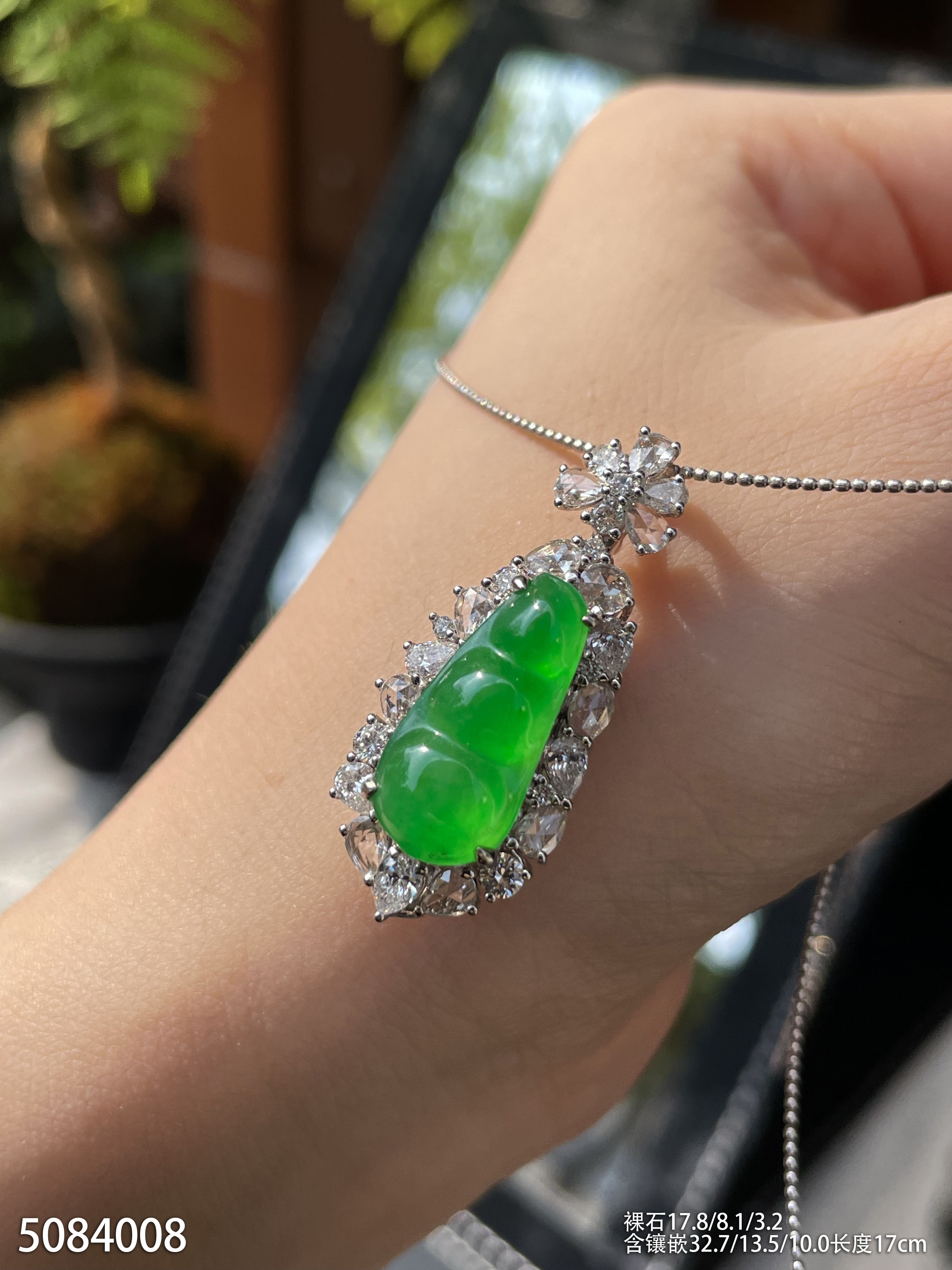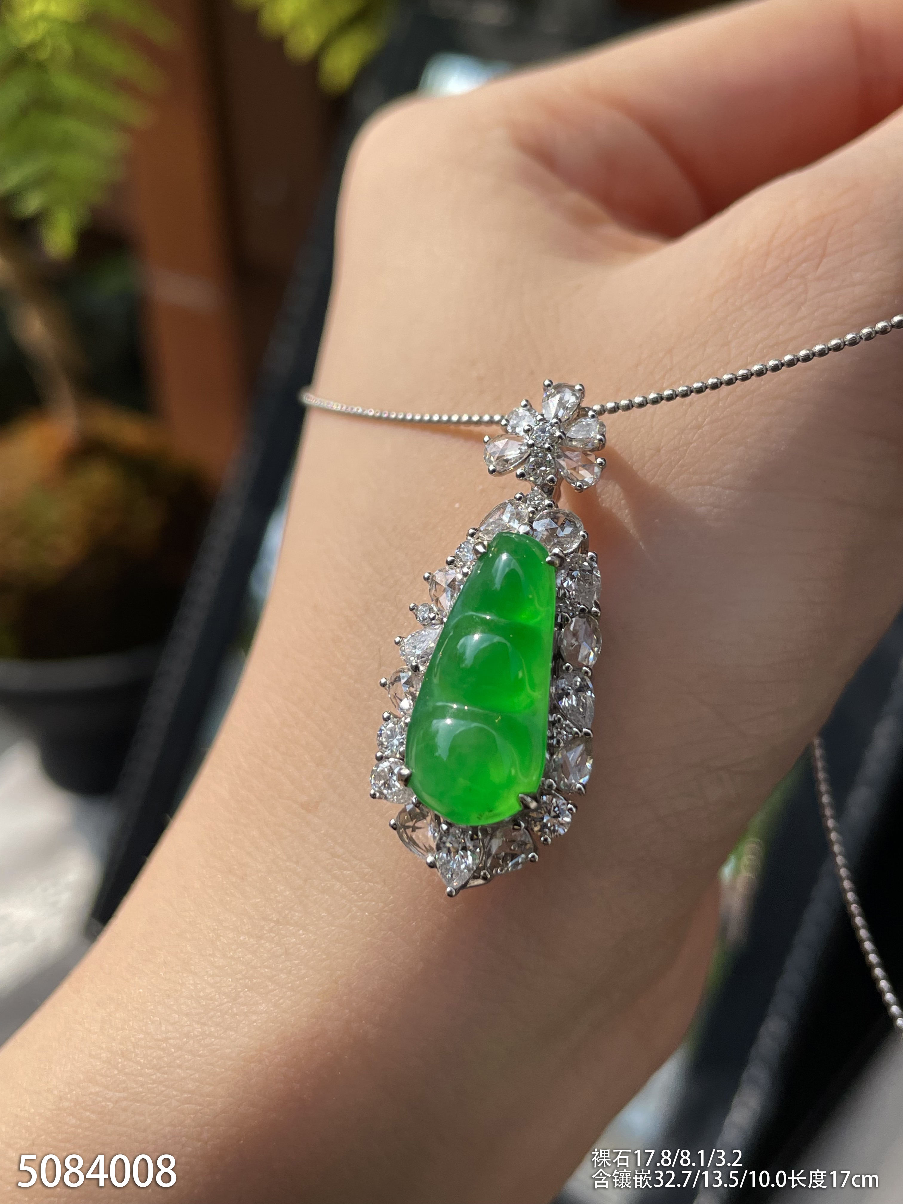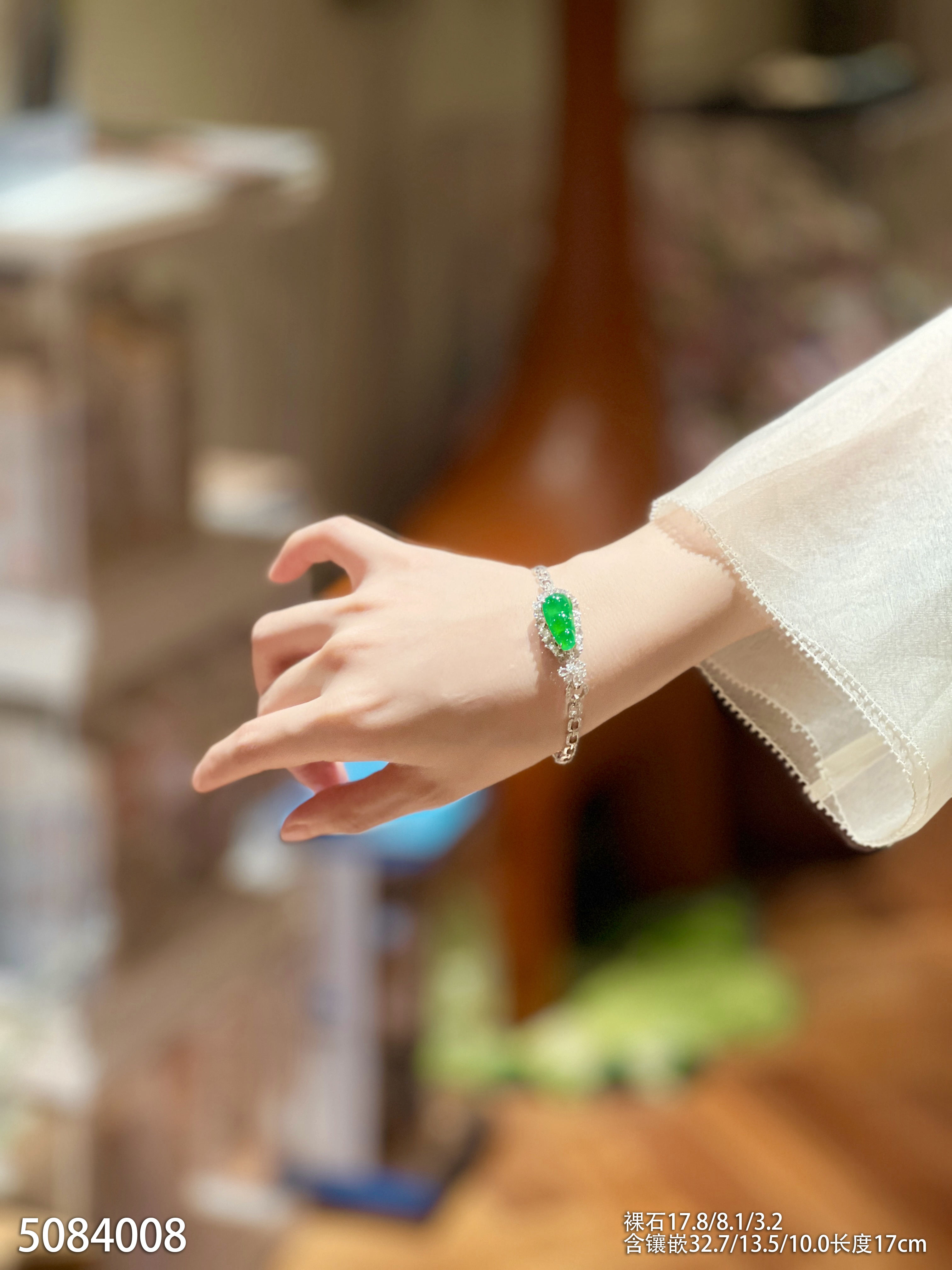 高冰种艳绿福豆手链 89999【5084008】