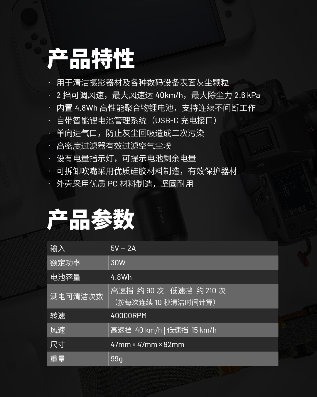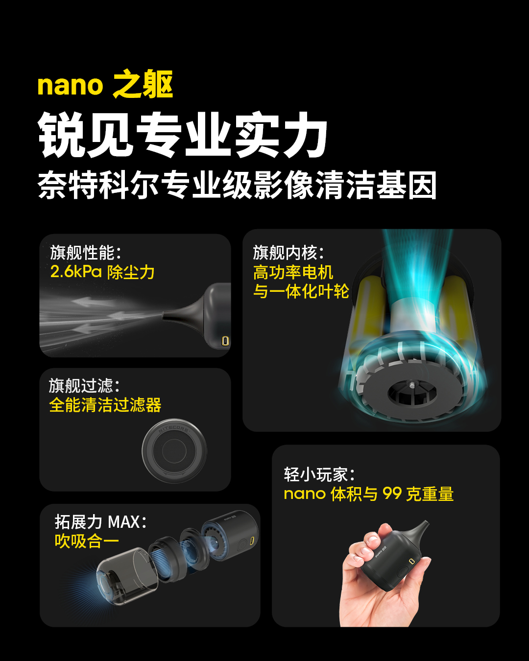 nitecore奈特科尔电动气吹BB nano吹气宝尘吹器镜头清洁相机吹风机清洁套装镜头气吹涡轮键盘清洁便携式单反清洁