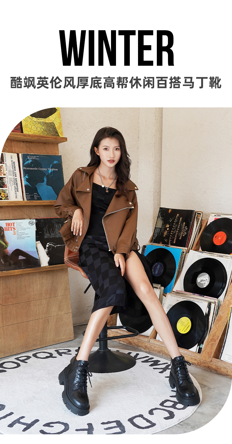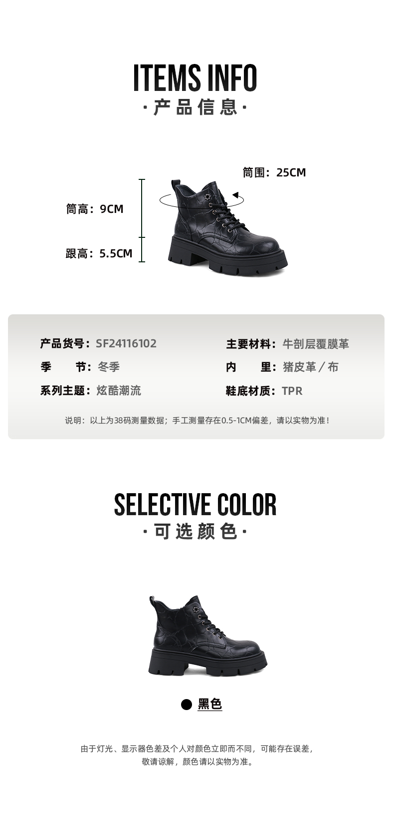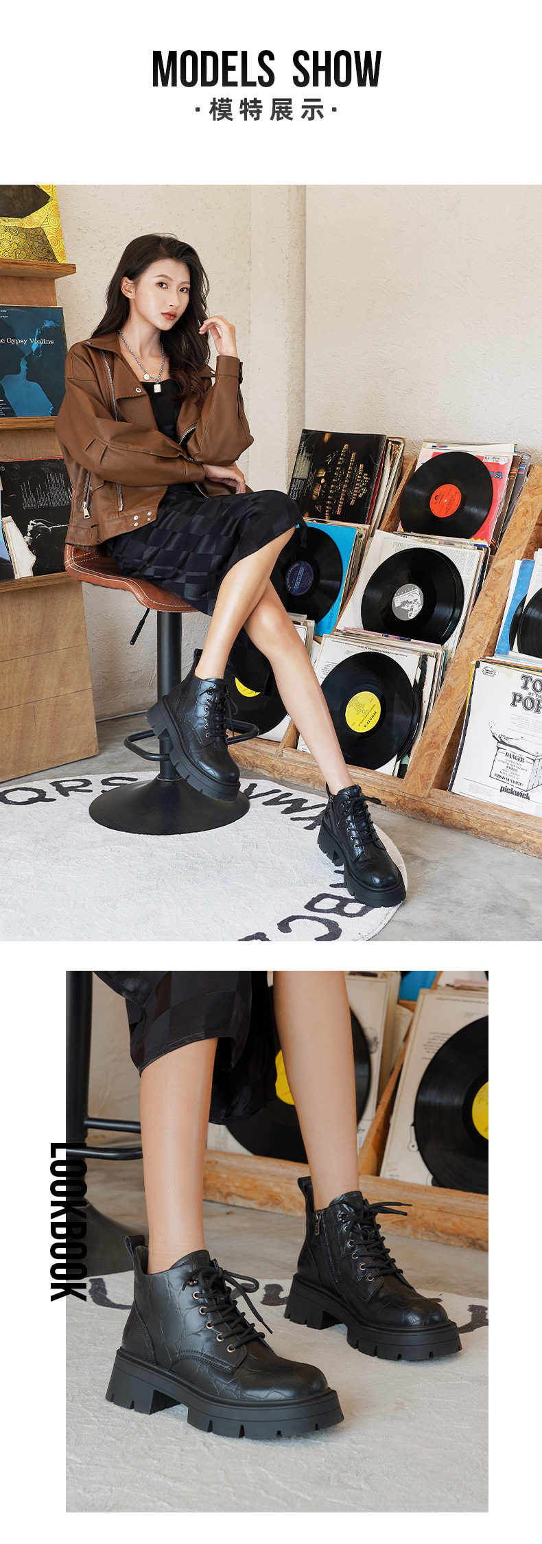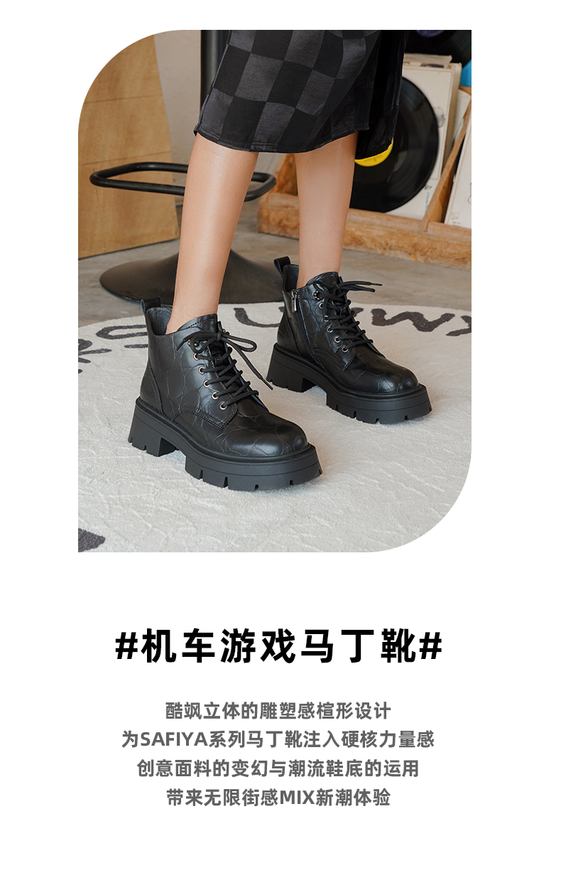 【春节不打烊】Safiya/索菲娅 商场同款2022冬季新款英伦风厚底短筒休闲百搭马丁靴女 SF24116102