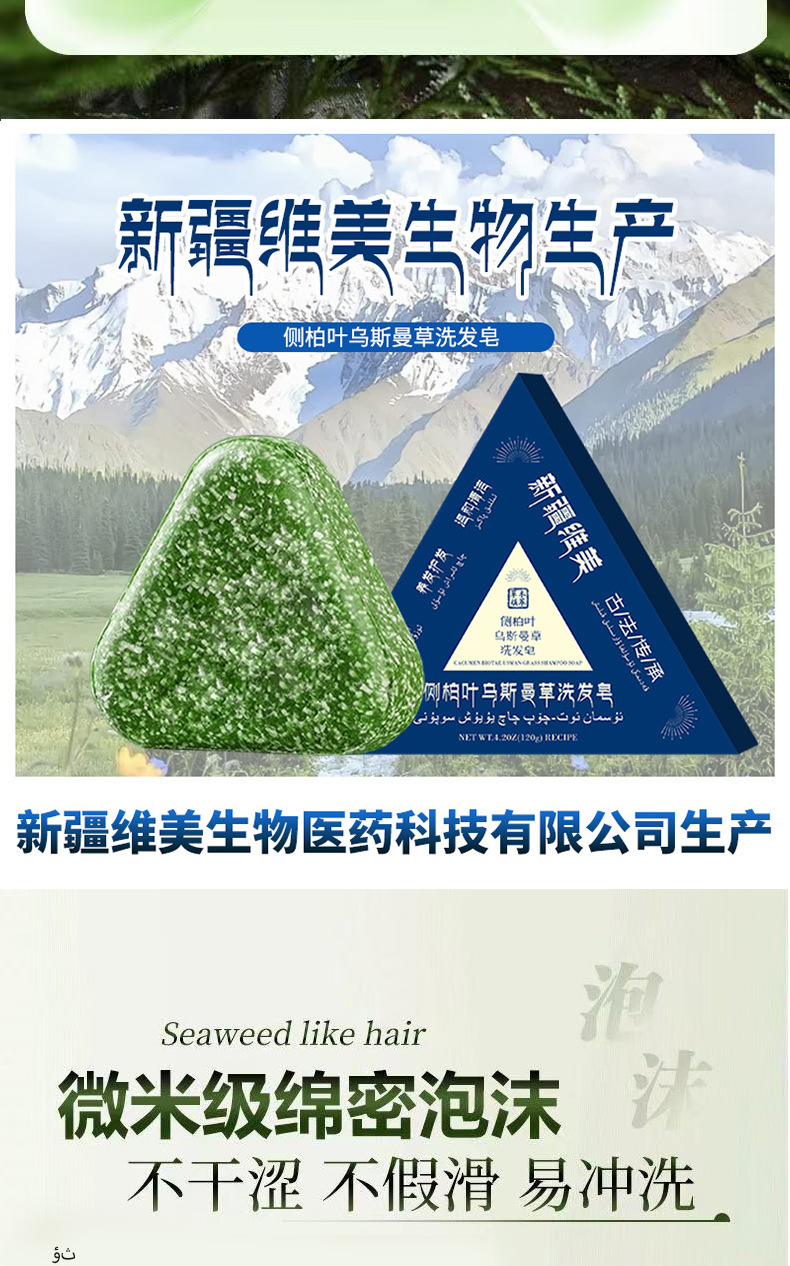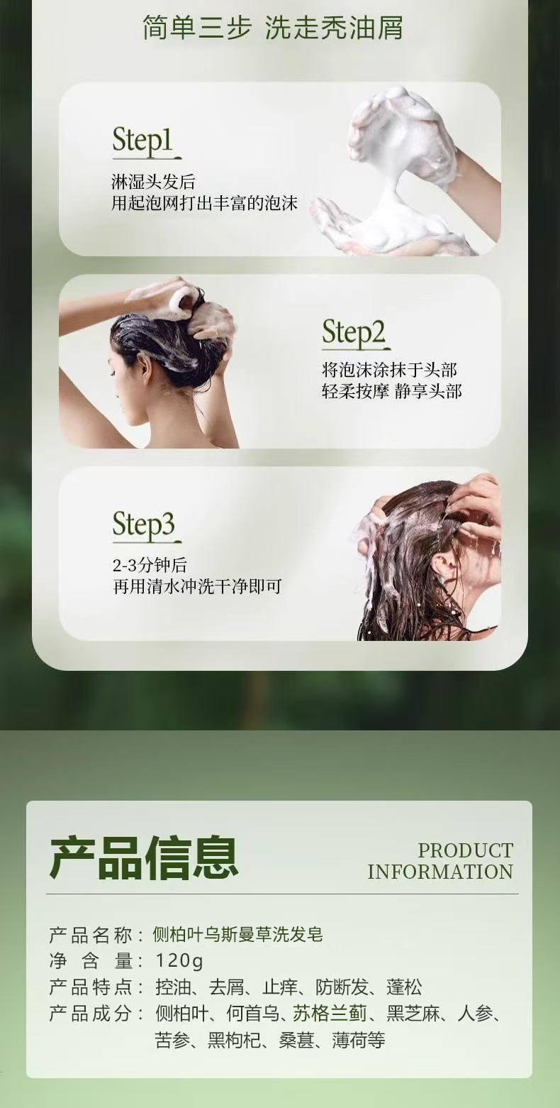 「买1送1!乌斯曼草皂洗发皂」侧柏叶洗头皂何首乌手工固发防断发控油洗发护发