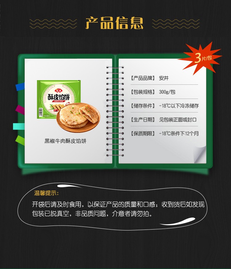 300g(3个)安井 酥皮馅饼黑椒牛肉馅早餐速冻半成品煎饼