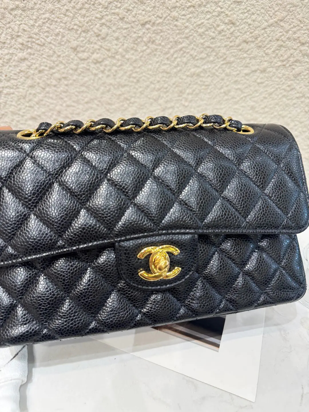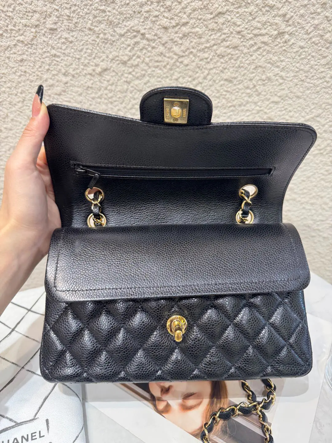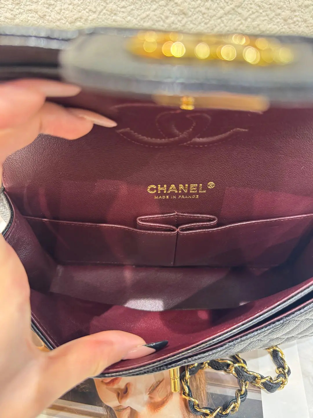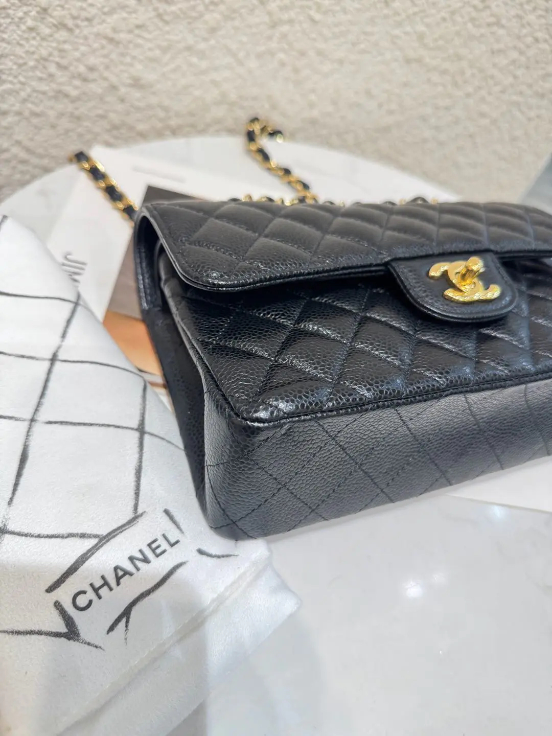 【商品详情】正品二手 Chanel CF 小号 黑金 荔枝纹牛皮 单肩包😋97新 23*14 镭射29开 配件:镭射卡 防尘袋。超级大包王