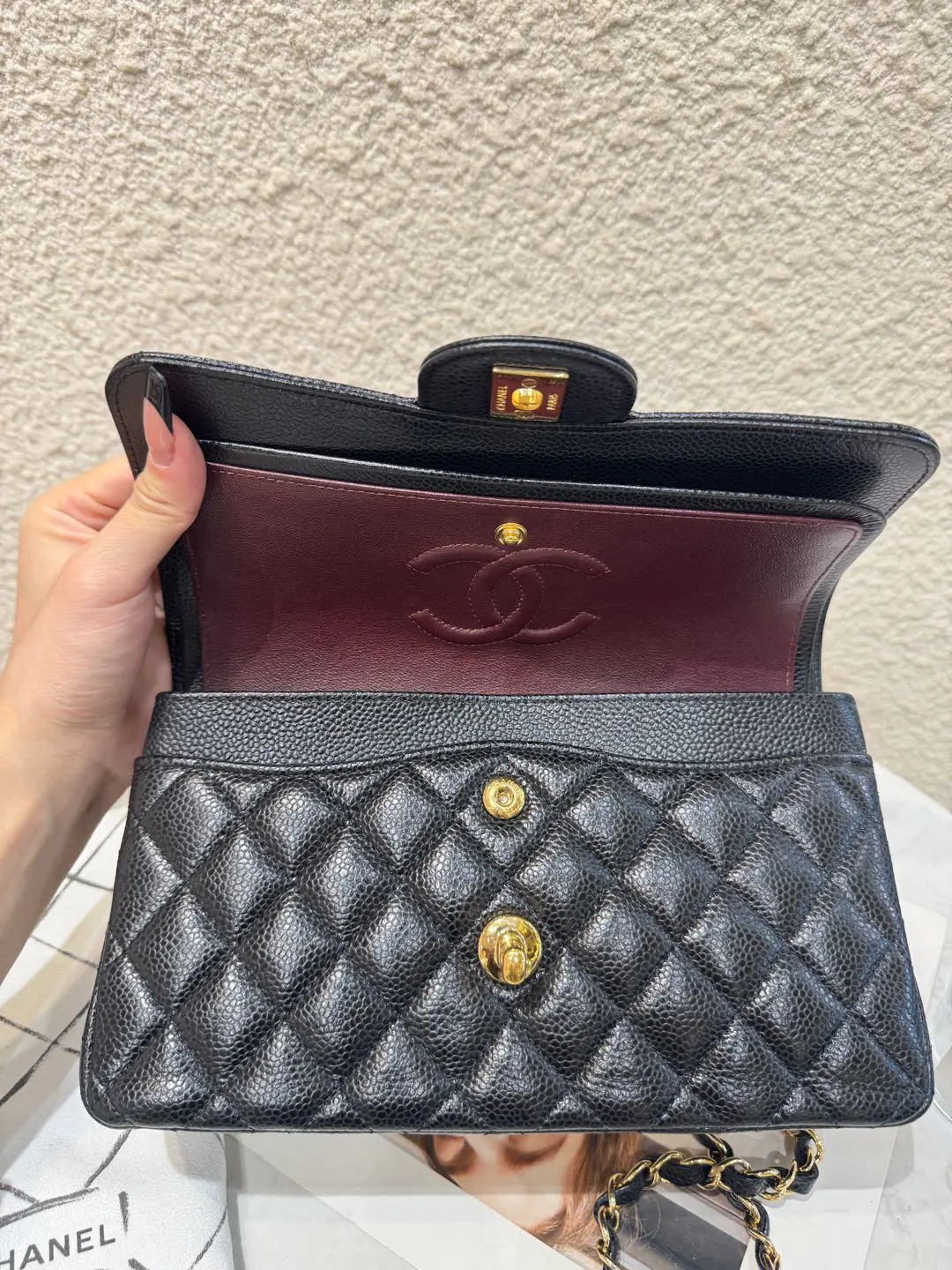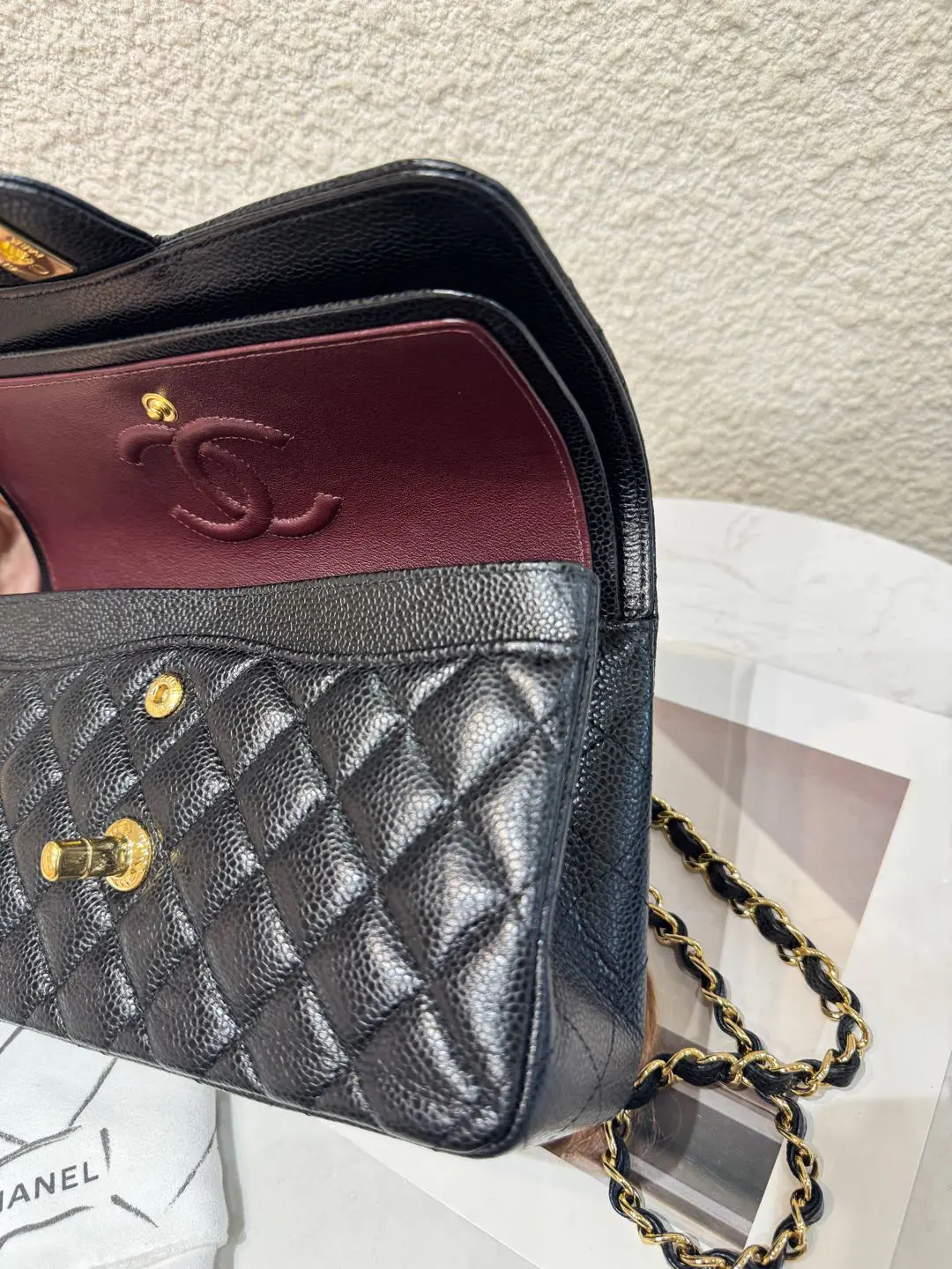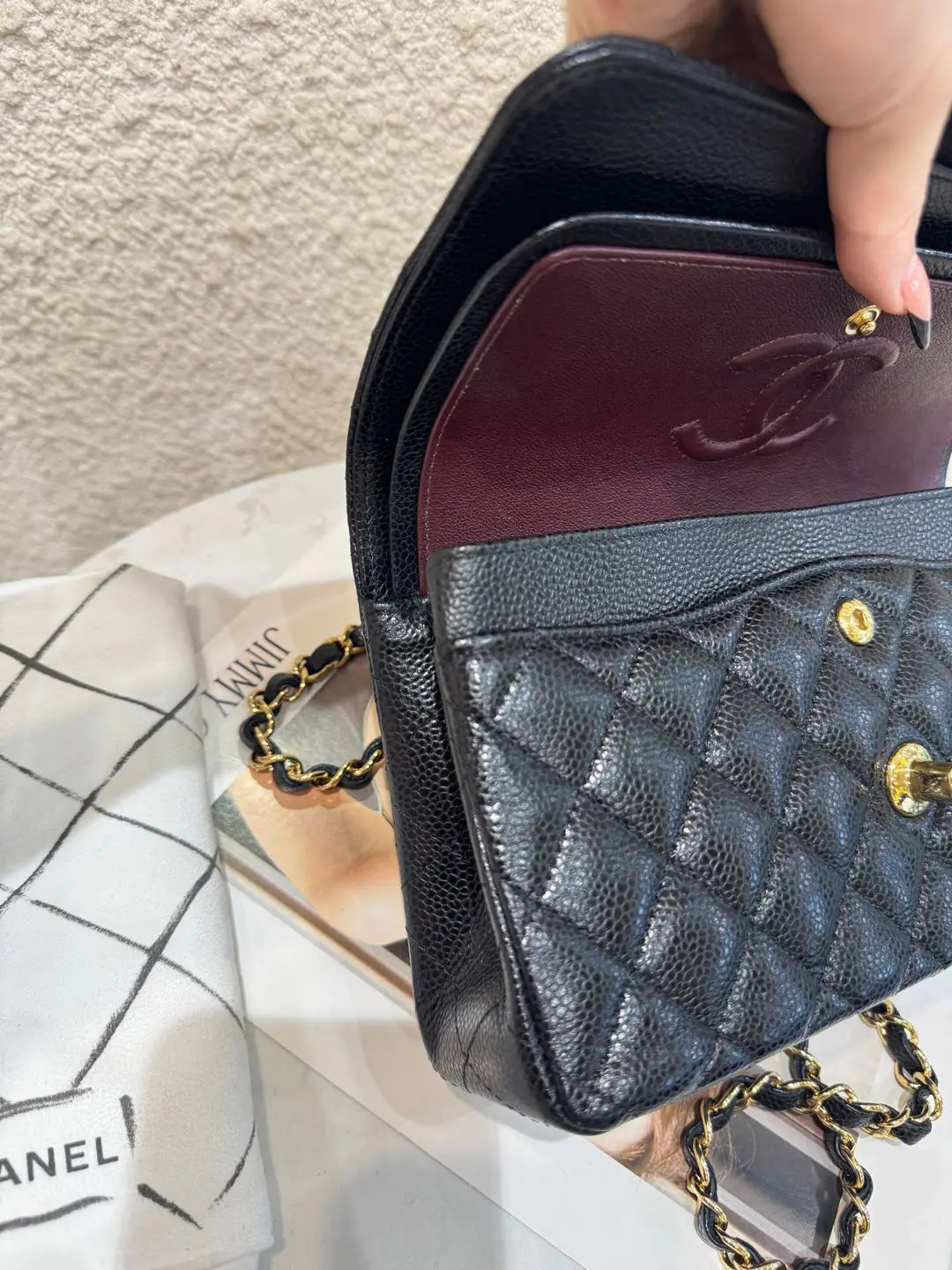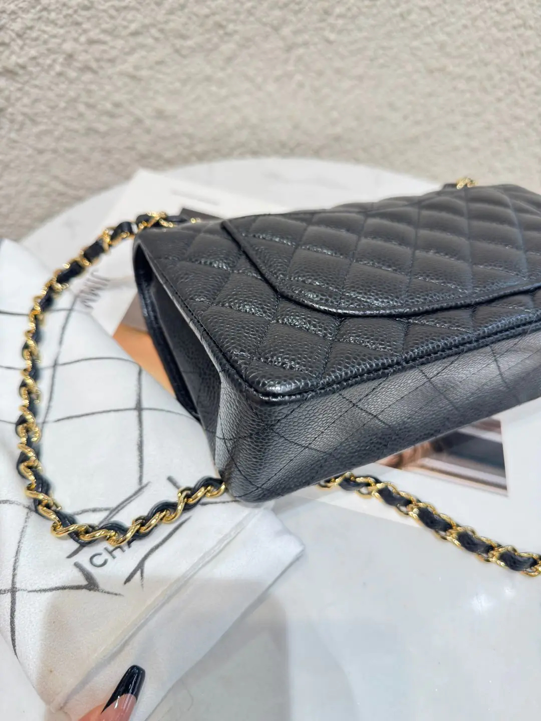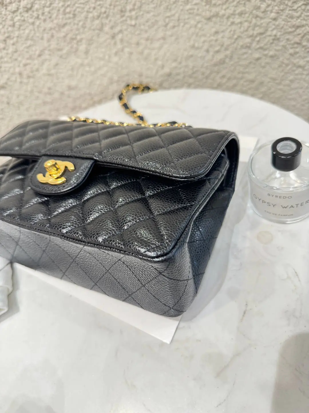 【商品详情】正品二手 Chanel CF 小号 黑金 荔枝纹牛皮 单肩包😋97新 23*14 镭射29开 配件:镭射卡 防尘袋。超级大包王