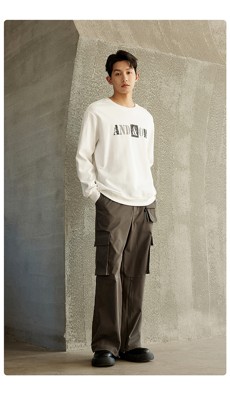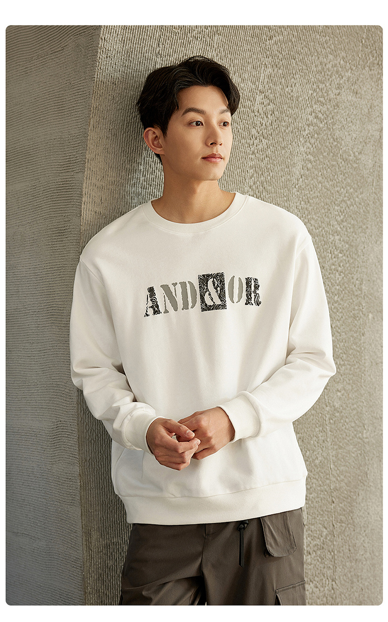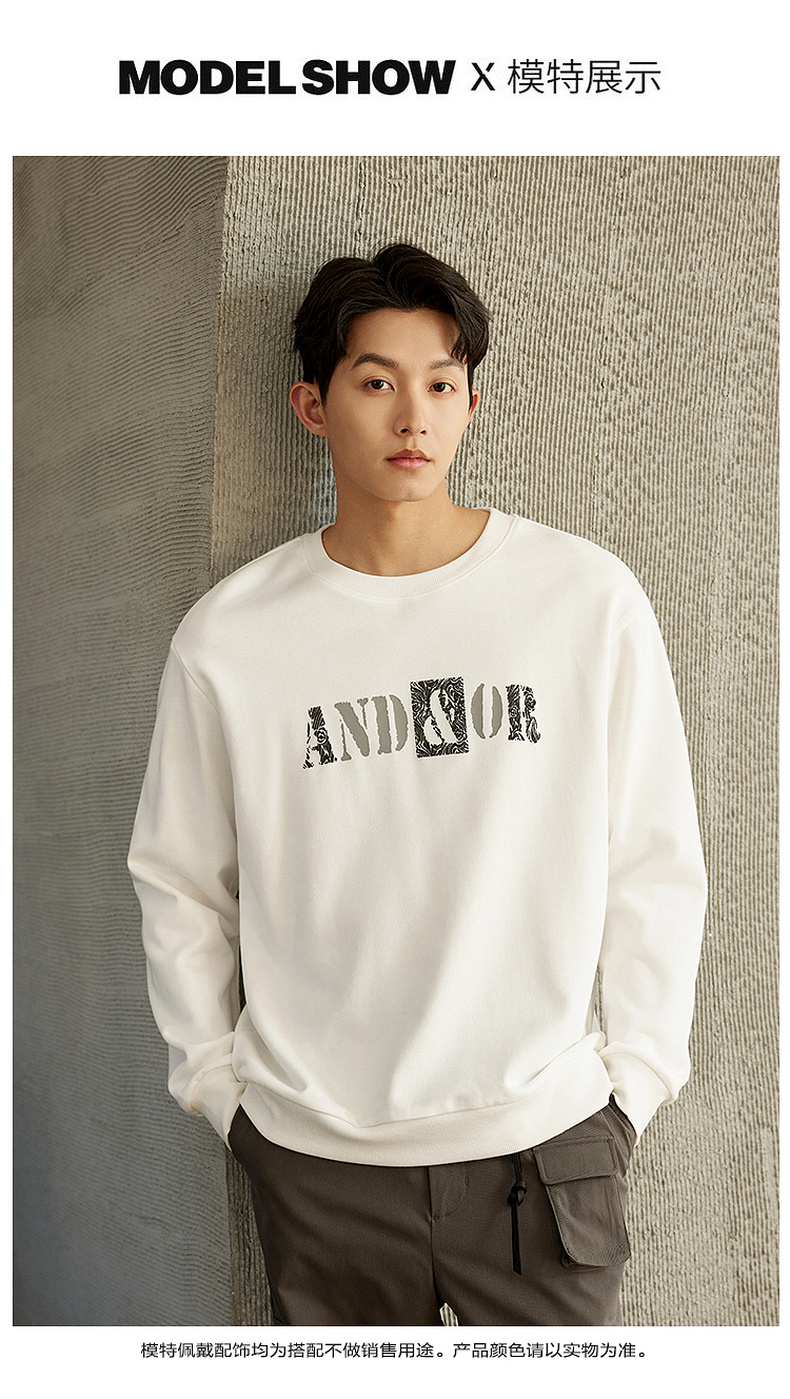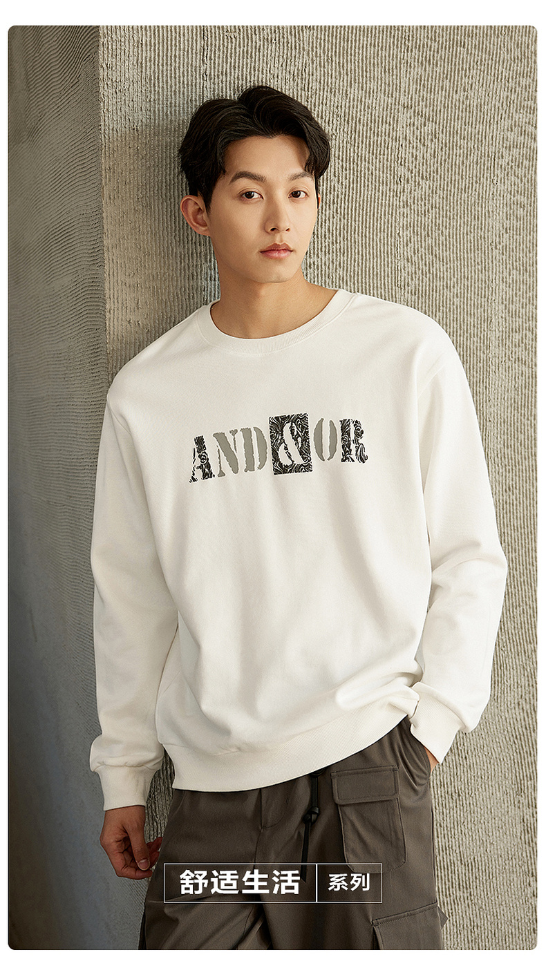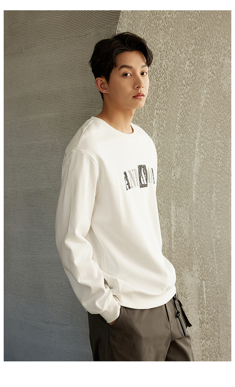 GXG男装【100%棉】春季简约字母印花男士圆领百搭长袖卫衣K&C