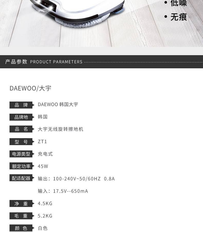大宇 无线旋转蒸汽拖地机JPY带授权招加盟代理