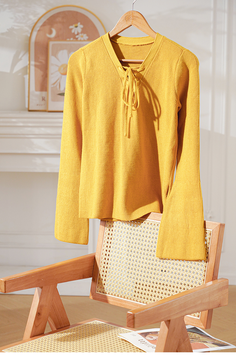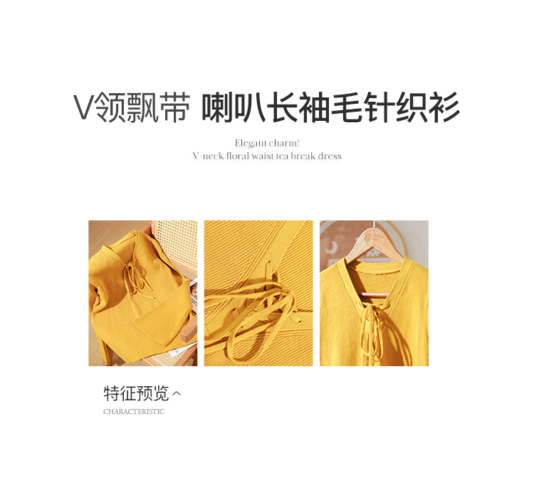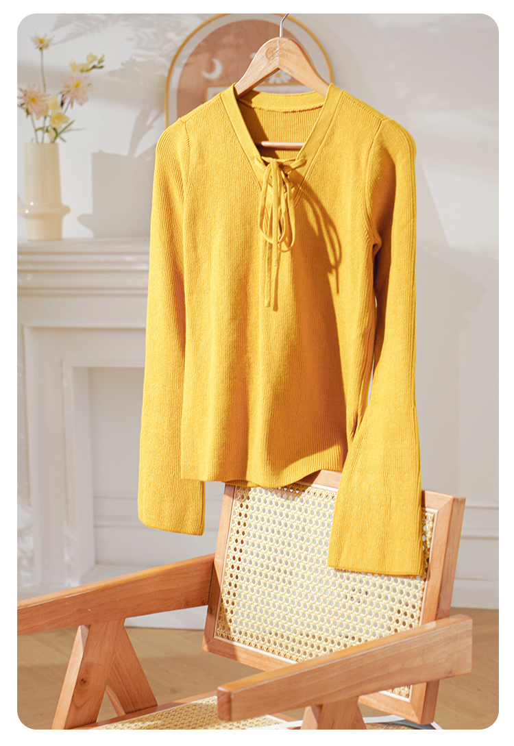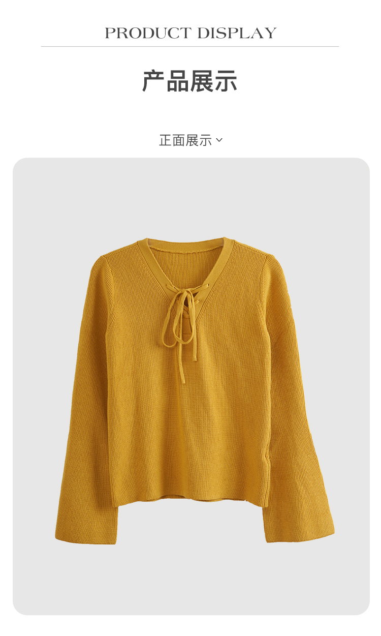 欧芮儿 新慵懒风喇叭袖泫雅网红绑带套头毛针织衫上衣女