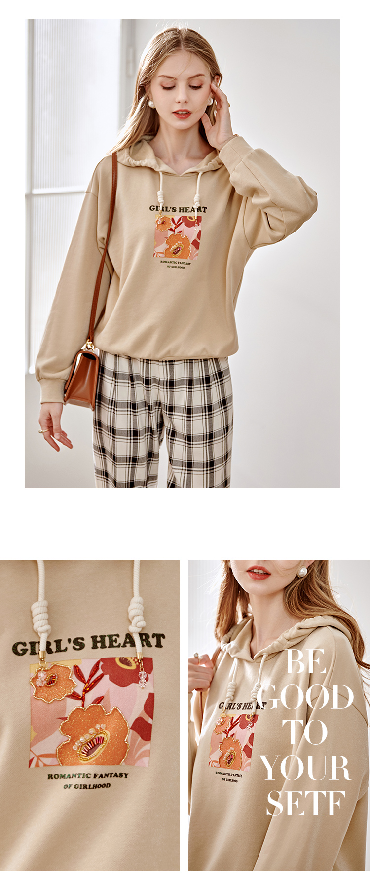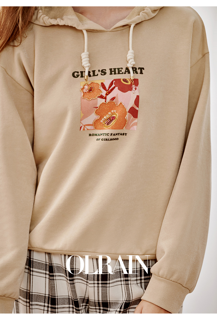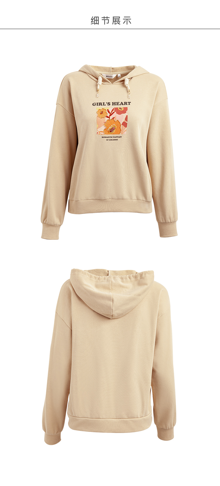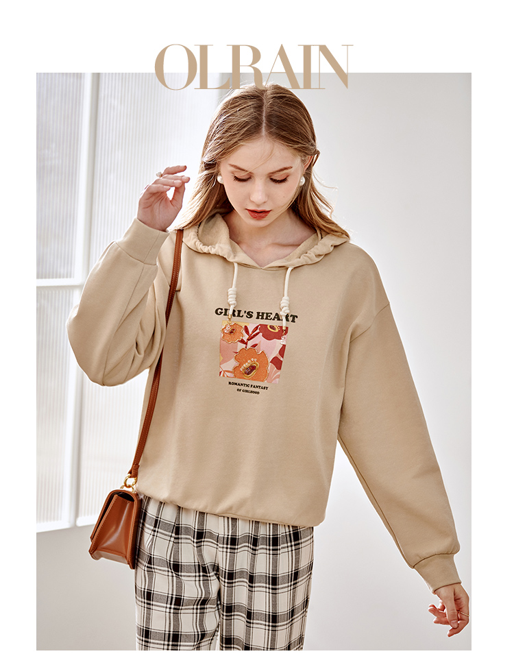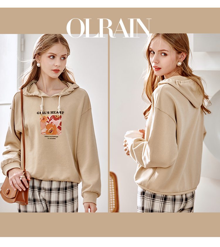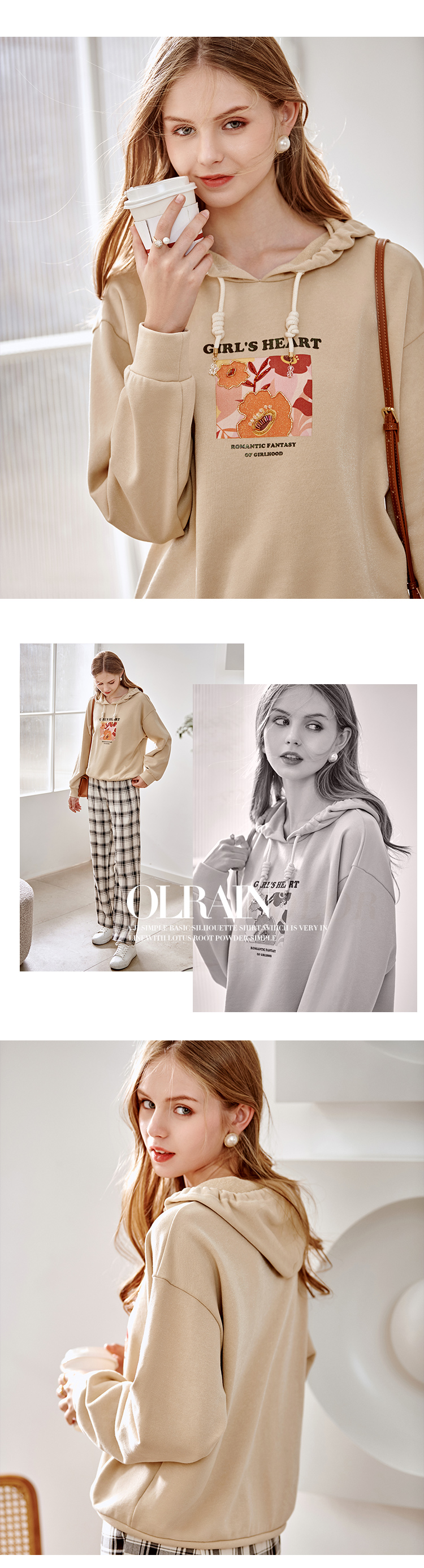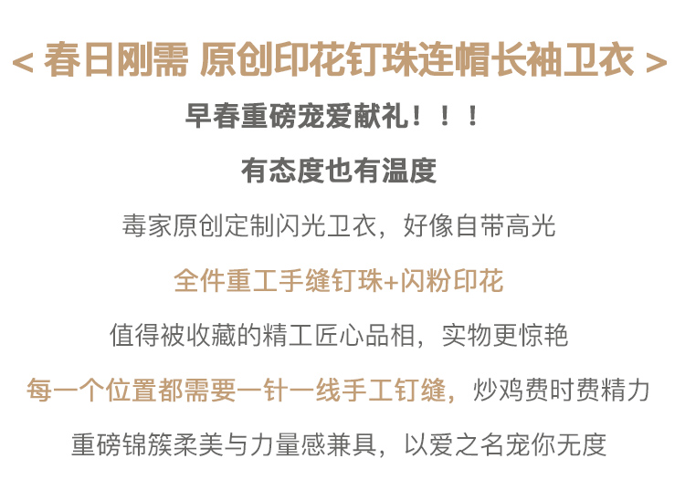 【最后一天】欧芮儿连帽长袖卫衣女春季新款印花钉珠年轻时髦宽松慵懒保暖上衣