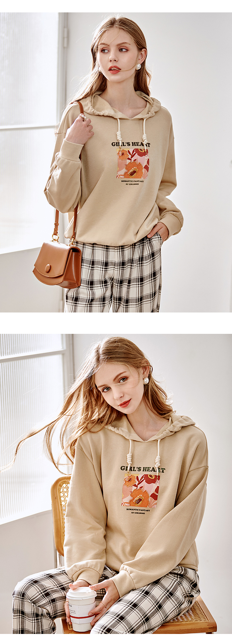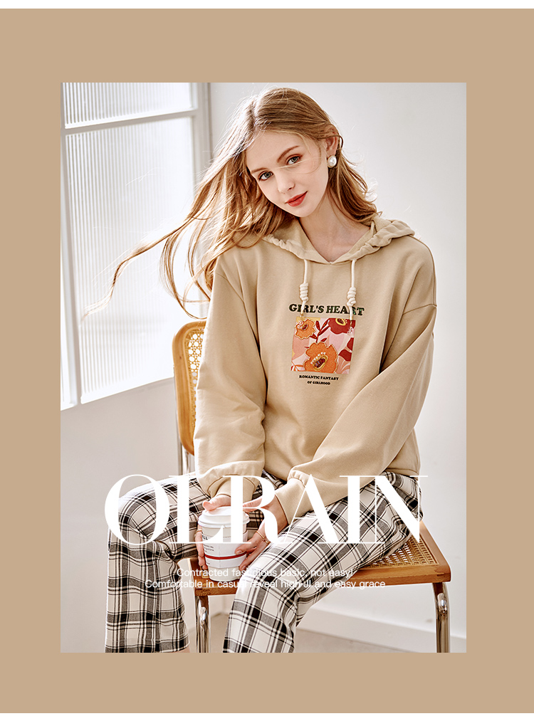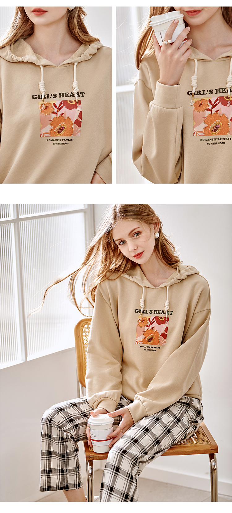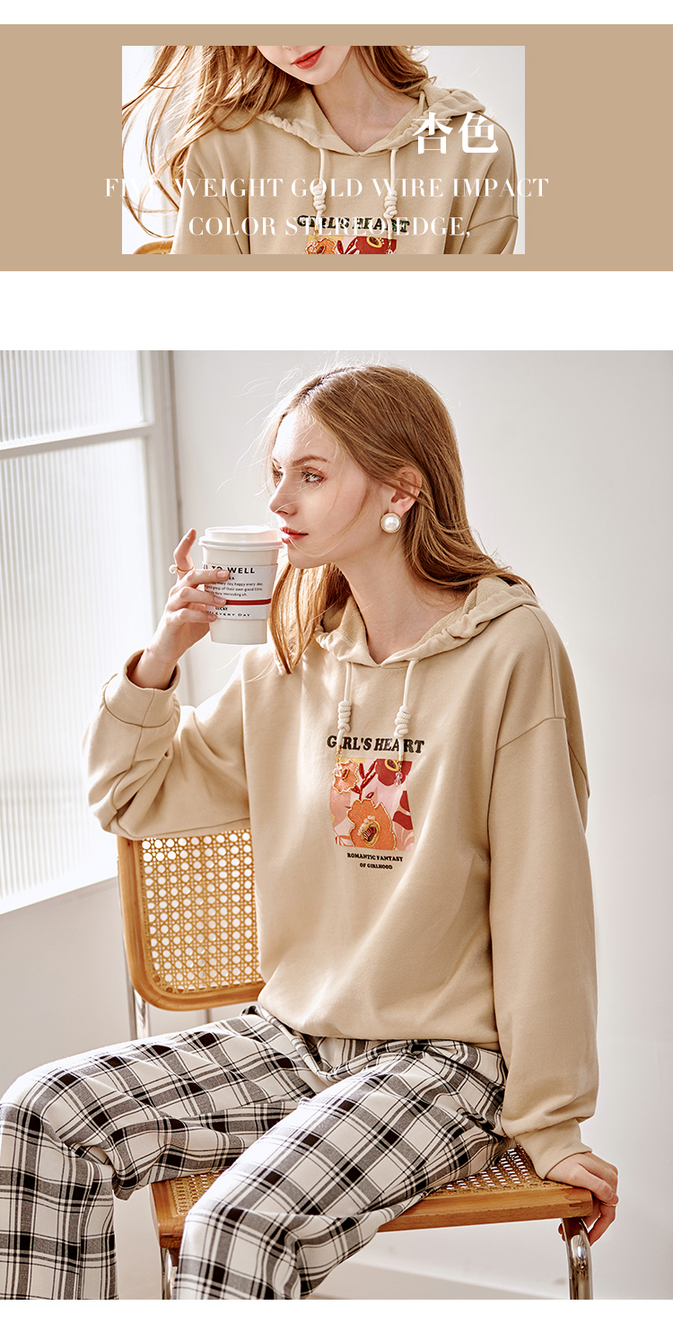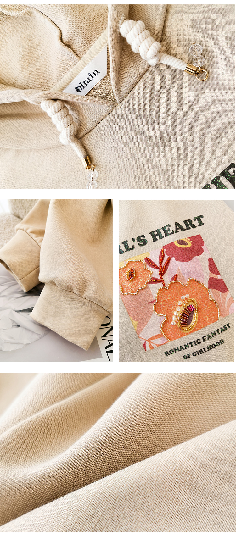 【最后一天】欧芮儿连帽长袖卫衣女春季新款印花钉珠年轻时髦宽松慵懒保暖上衣