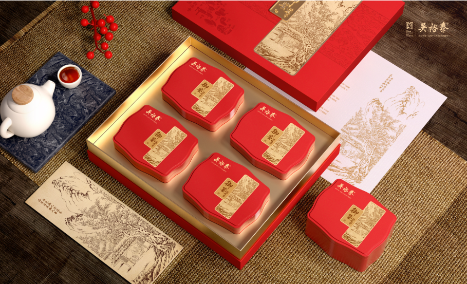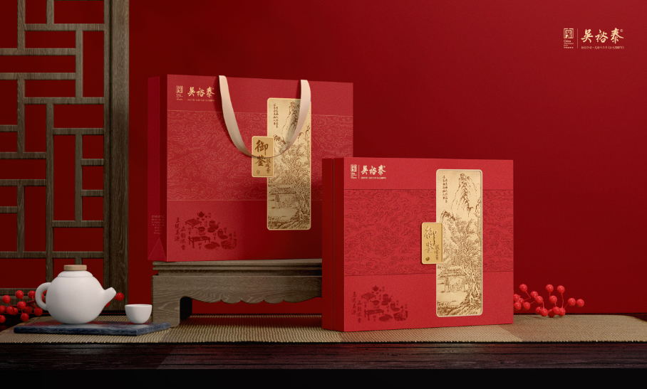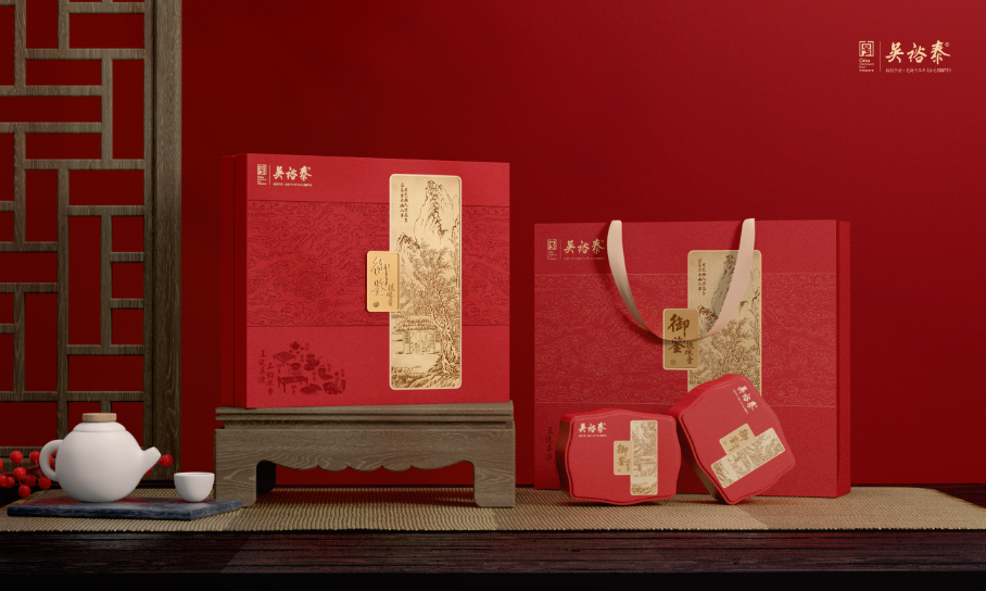 「御鉴」系列铁观音礼盒,承袭铁观音“王说”渊源,以唐寅《品茶图》为视觉核心,将画中人物品茗、山水相伴的悠然意境融入礼盒设计,并与乾隆御题诗句“品茶自是幽人事,我岂幽人亦品茶”相互映照。一图一诗,开启一场跨越时空的对话,更彰显吴裕泰百年茶庄的匠心与传承。