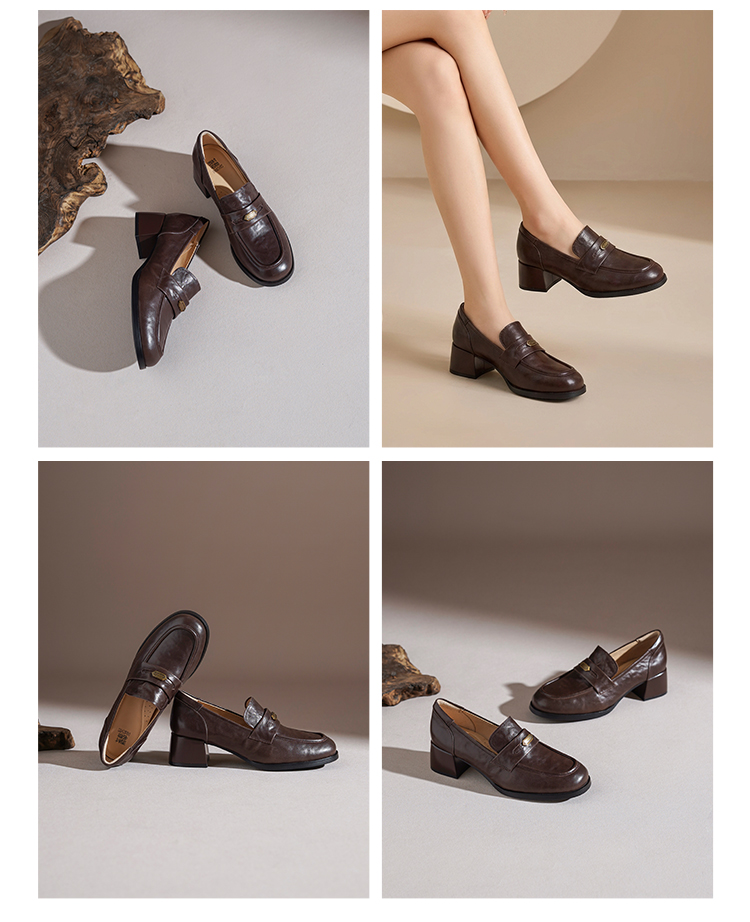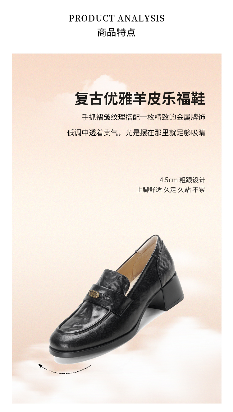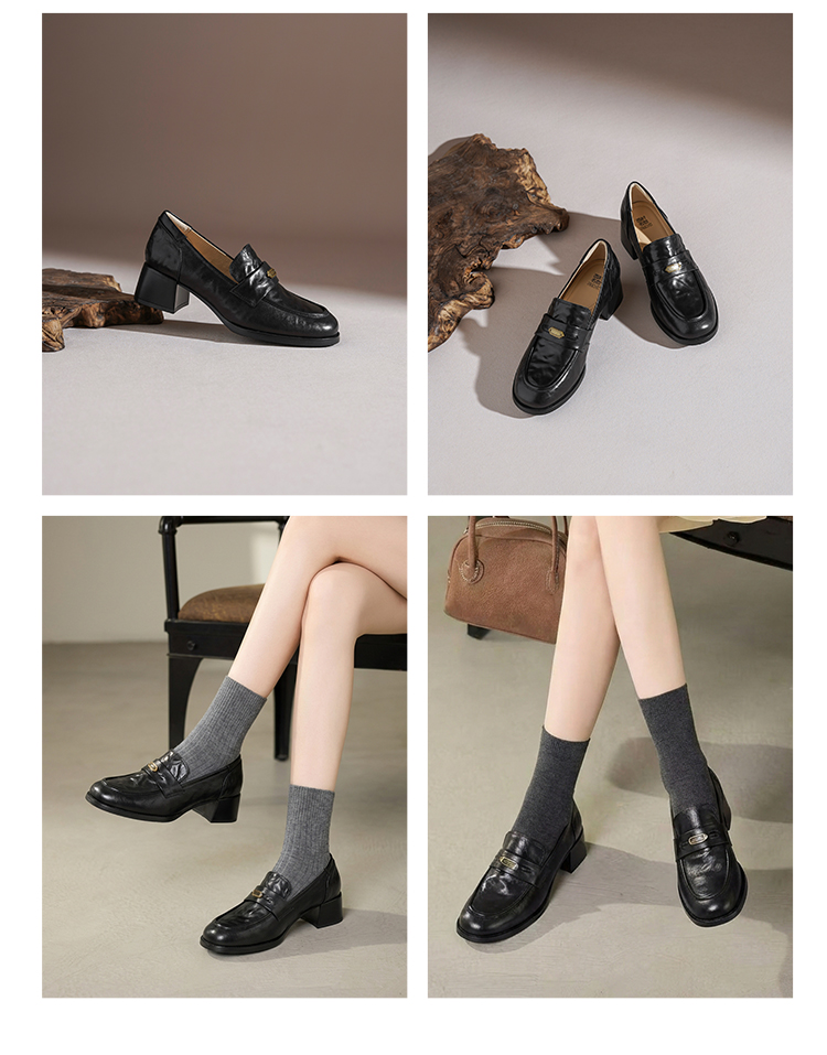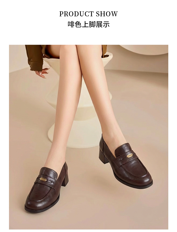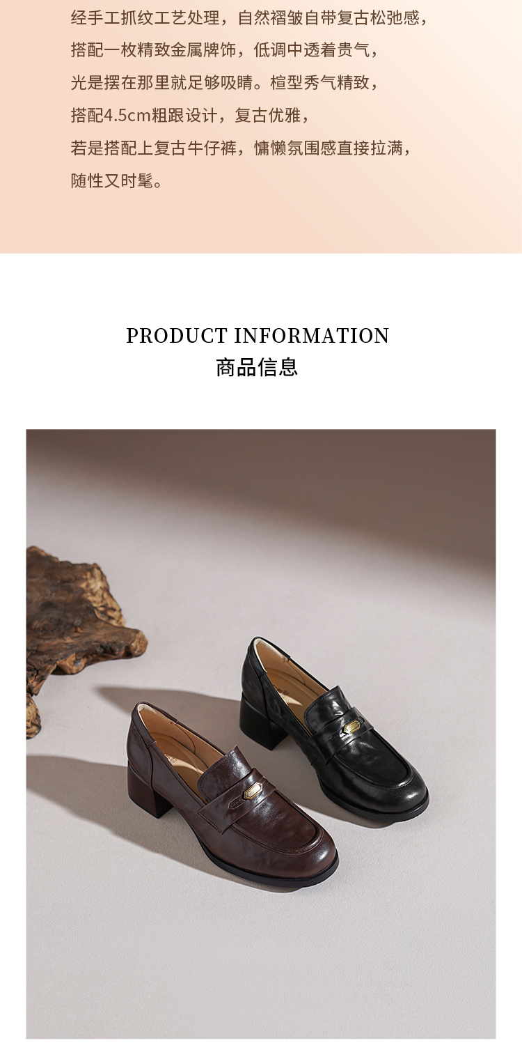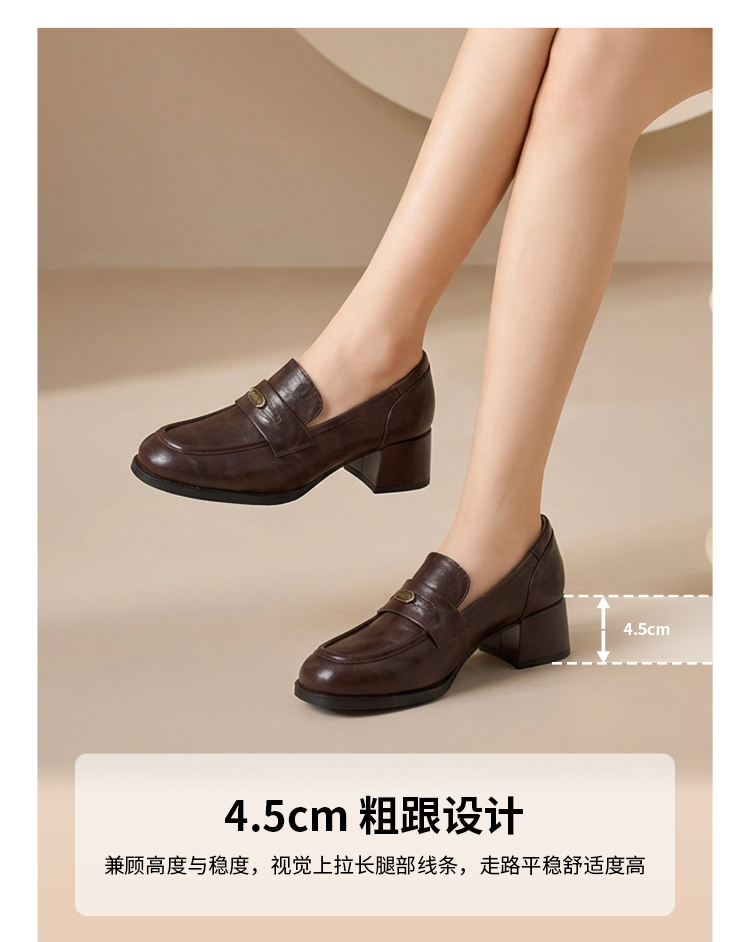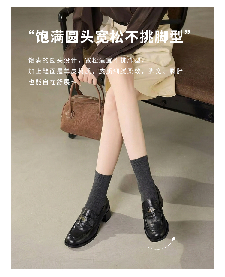 【羊皮革】西村名物2026年春季新款厚底粗跟防滑舒适百搭优雅深口单鞋乐福鞋T26AM17981