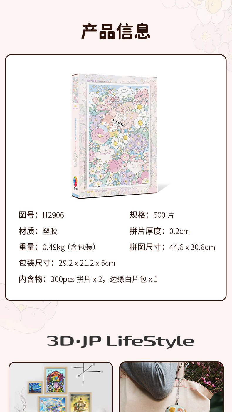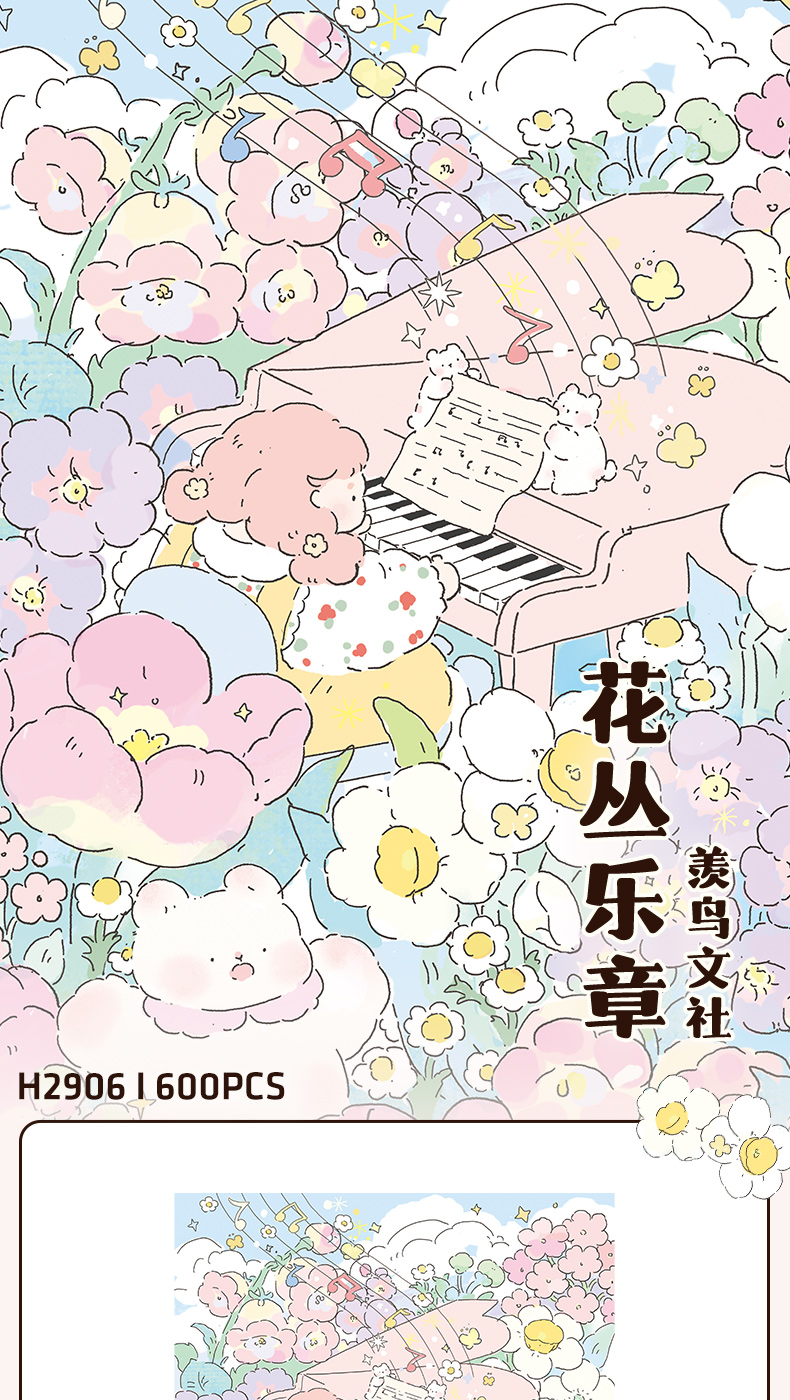 600片 平面拼图 塑料拼图H2906 羨鸟文社 - 花丛乐章
