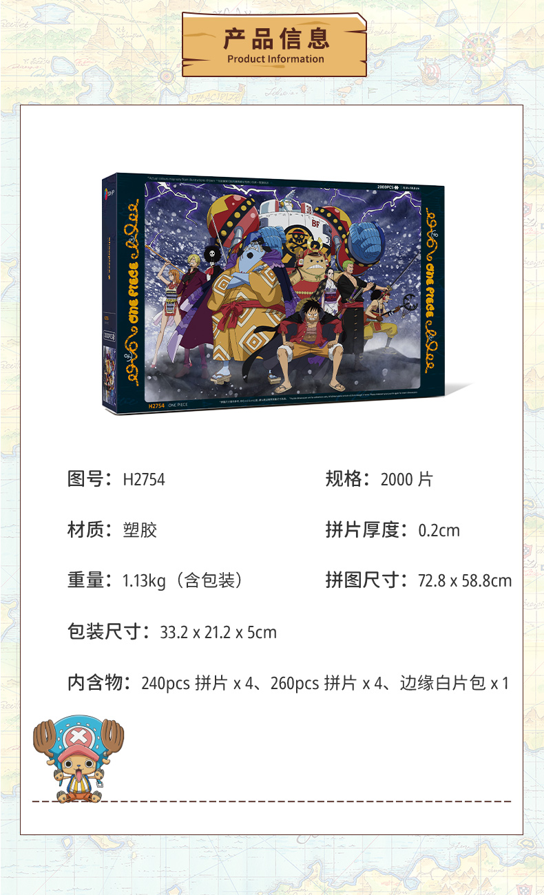 【折扣商品 不退不换】2000片 平面拼图 塑料拼图 H2754 ONE PIECE-全新草帽团