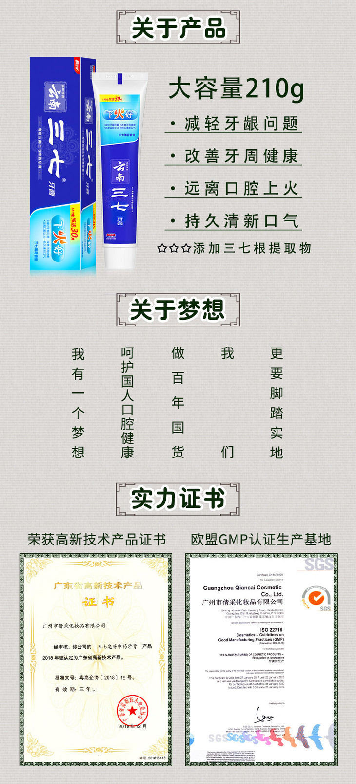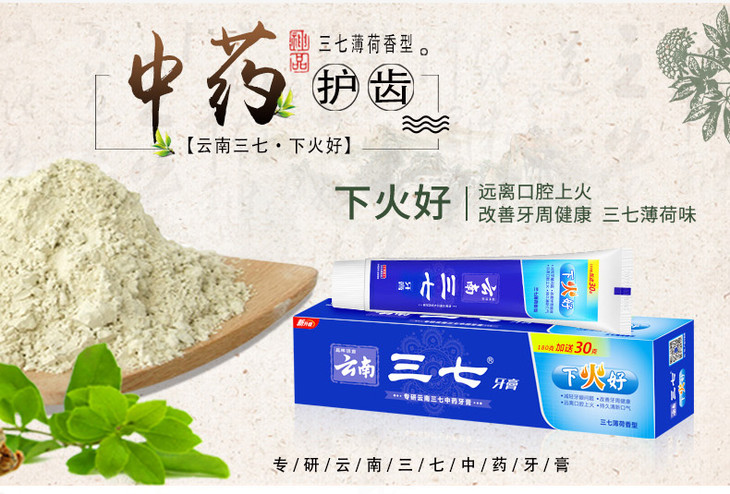 云南三七下火好牙膏180g+30g