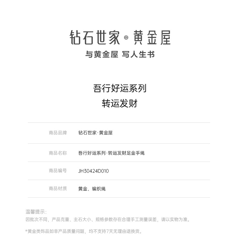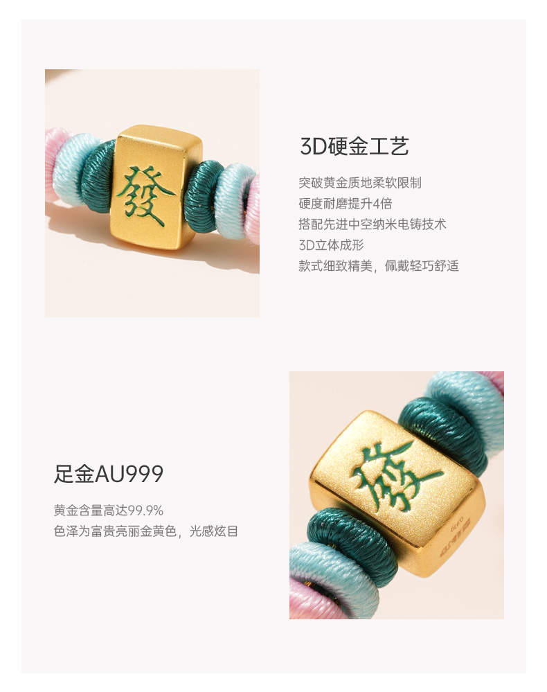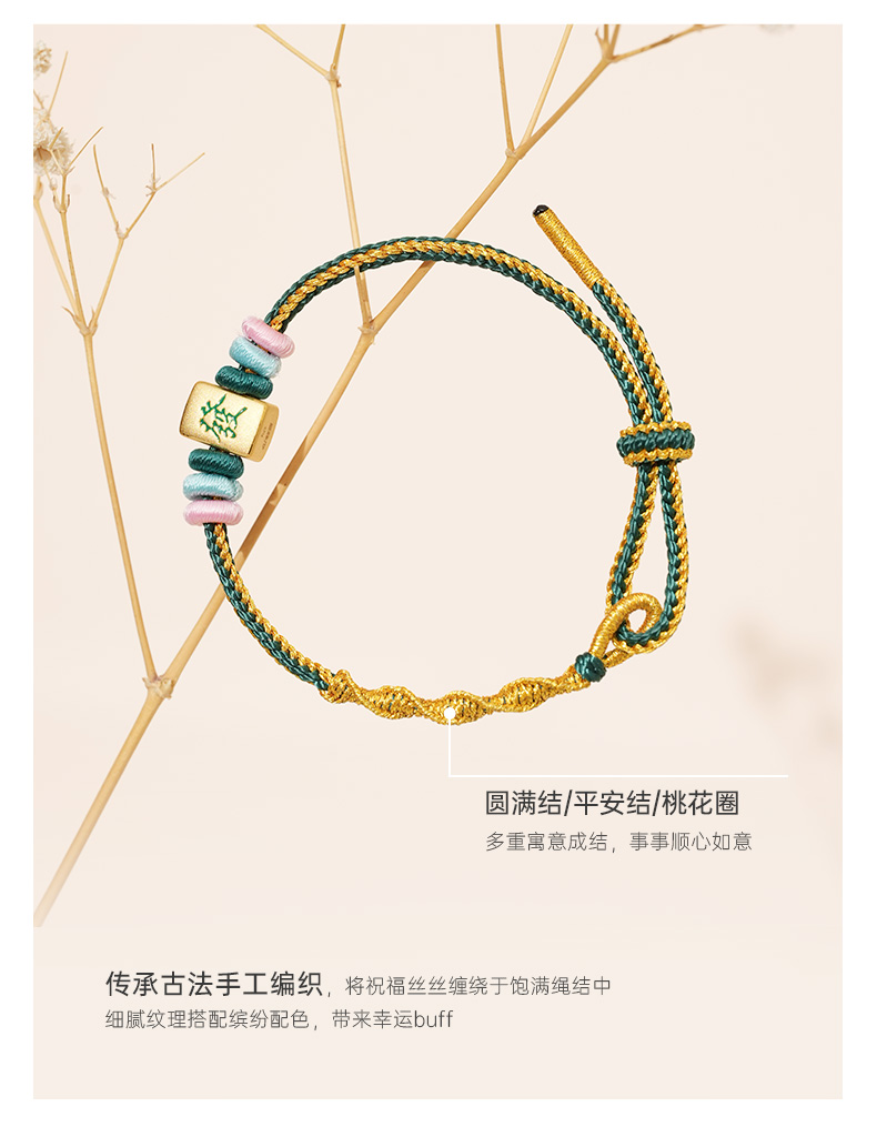 【定价黄金】【限时8折】【现货】钻石世家 心喜吉言系列 足金黄金手串圆满结盘龙结平安结 麻将发财元素 转运发财 足金手绳