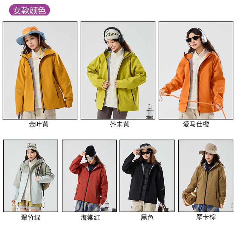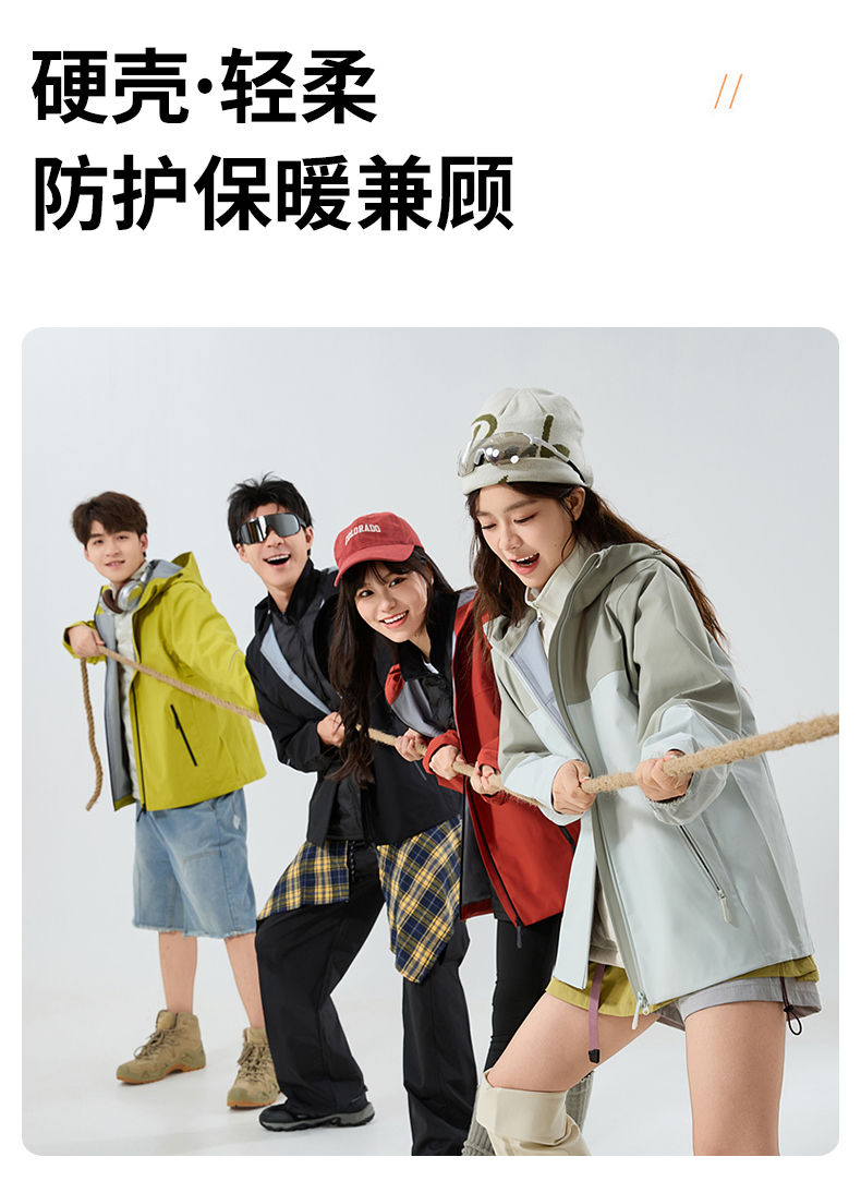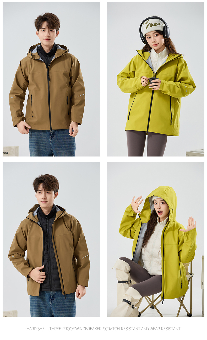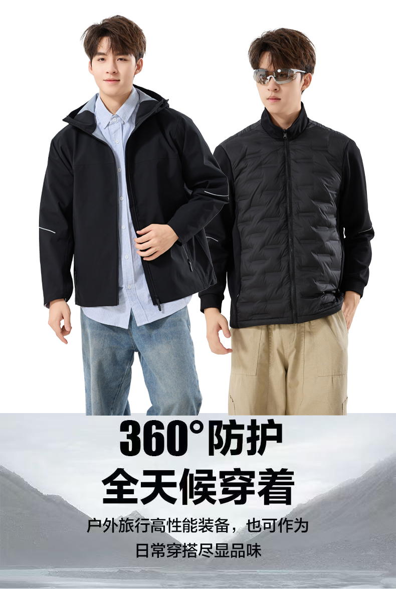 情侣款三合一冲锋衣,羽绒内胆可拆卸,外层冲锋衣防风防水防油污,内胆80%白鸭绒,轻盈不臃肿,保暖性能出色。硬壳设计+全无缝压胶工艺,有效抵御风雨侵袭,超适合户外多变天气。