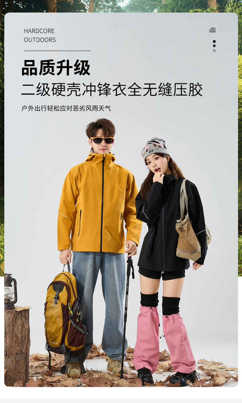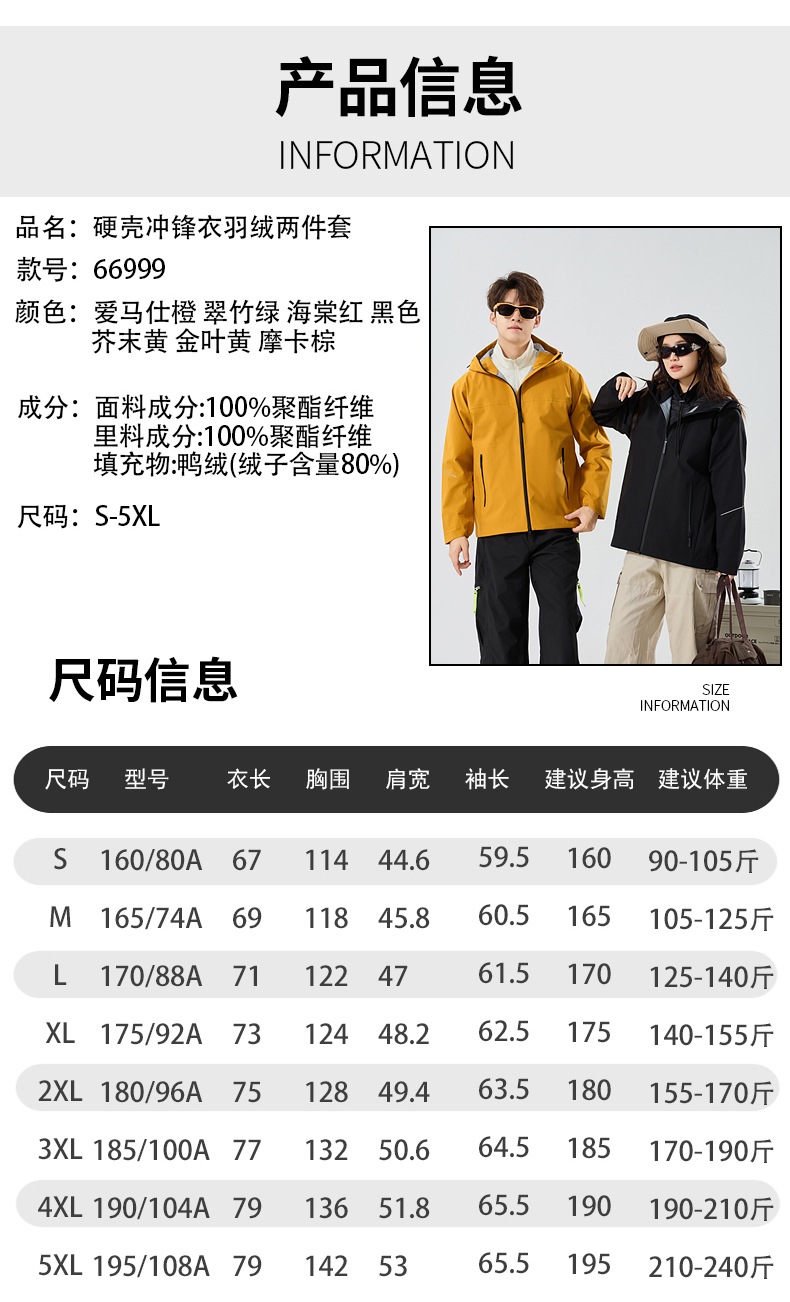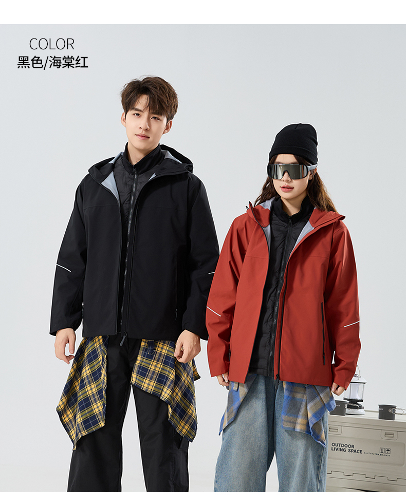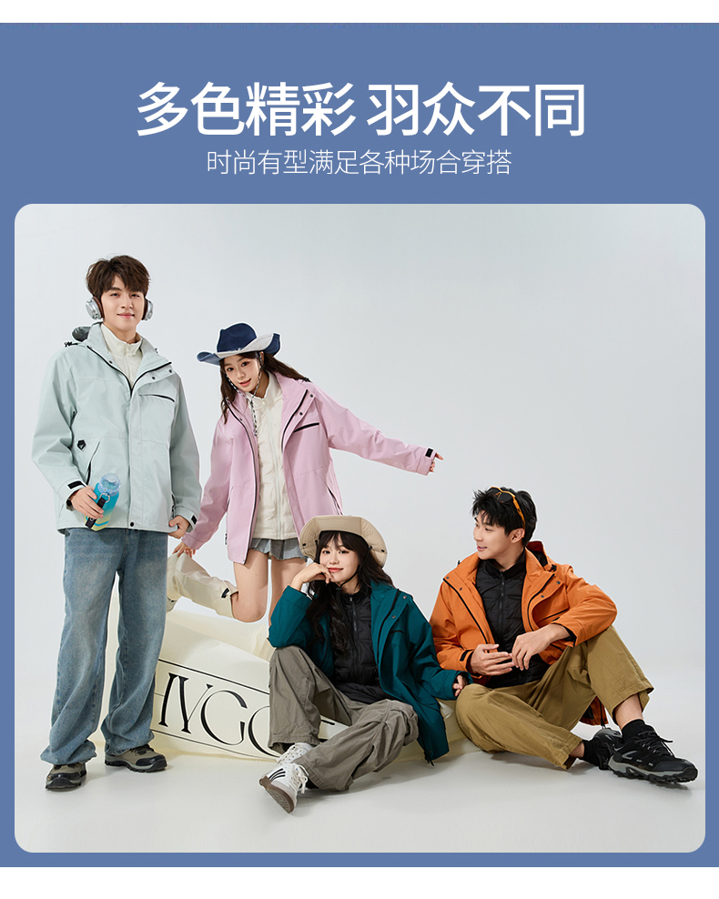 情侣款三合一冲锋衣,羽绒内胆可拆卸,外层冲锋衣防风防水防油污,内胆80%白鸭绒,轻盈不臃肿,保暖性能出色。硬壳设计+全无缝压胶工艺,有效抵御风雨侵袭,超适合户外多变天气。