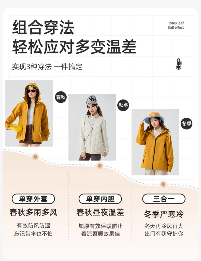 冬季户外爱好者们 ,这件三合一设计的羽绒冲锋衣,会是你寒冷季节的“御寒神器”!一件衣服,三种穿法!都可拆卸单穿哦!根据天气和场景自由组合,~