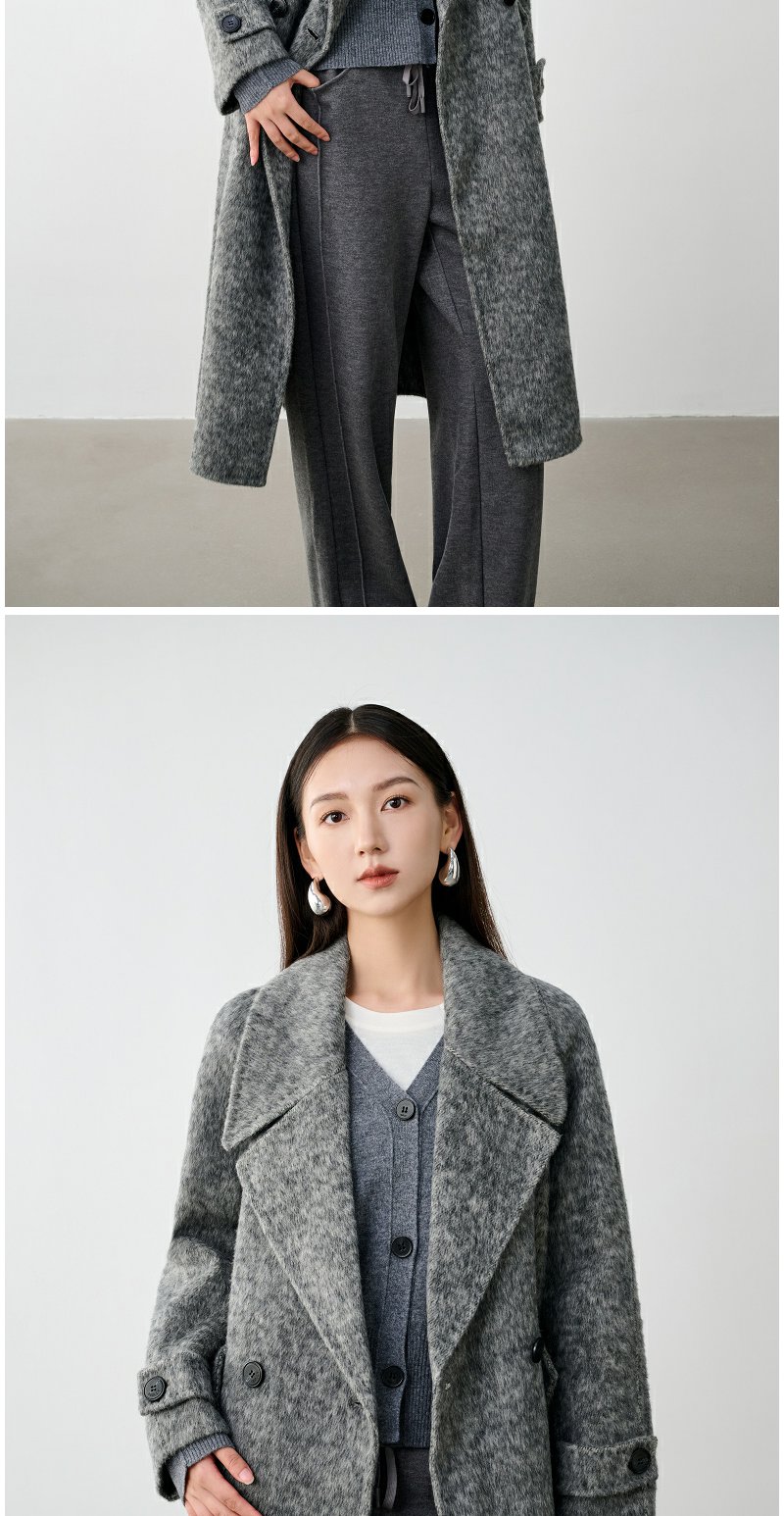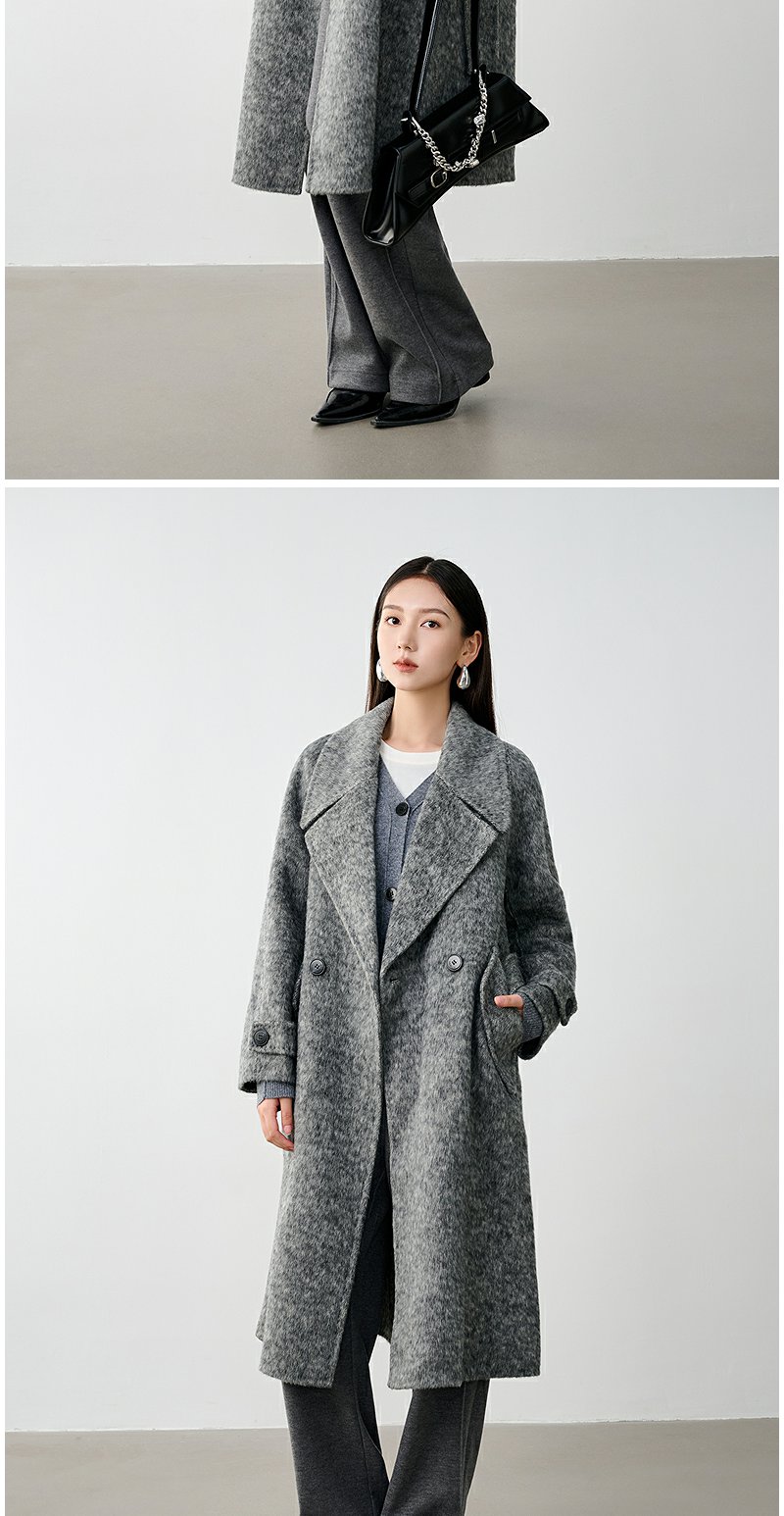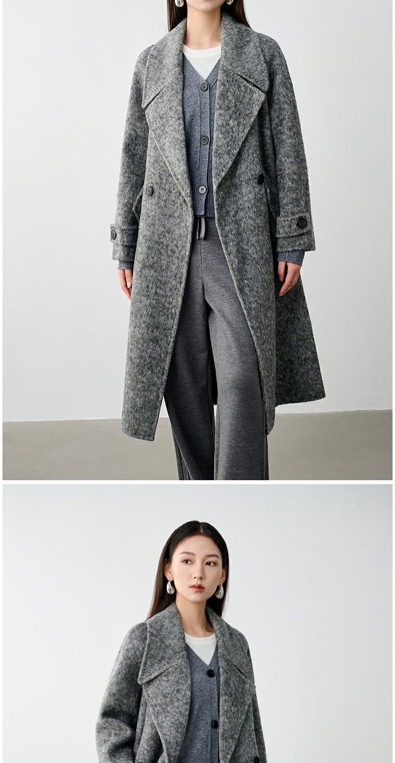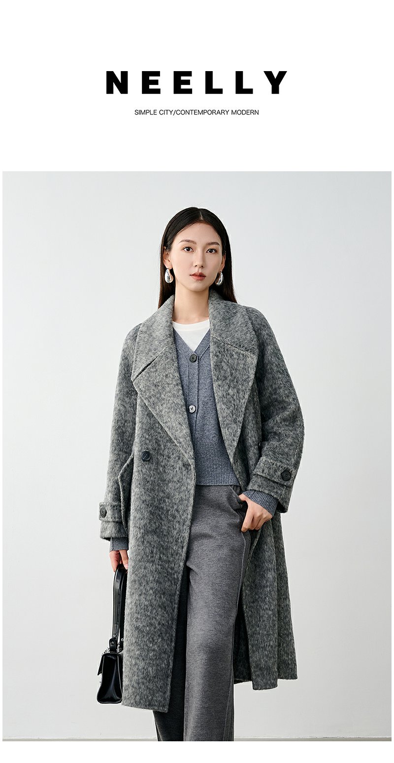 NEELLY纳俪商场同款冬季新款高级感绵羊毛兔毛双面呢大衣女灰色N24104N04401