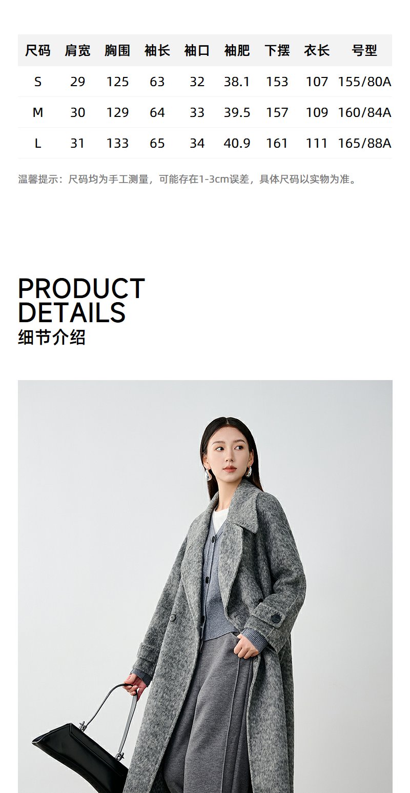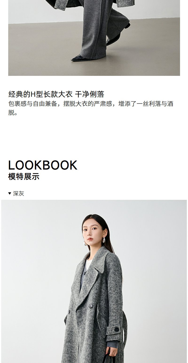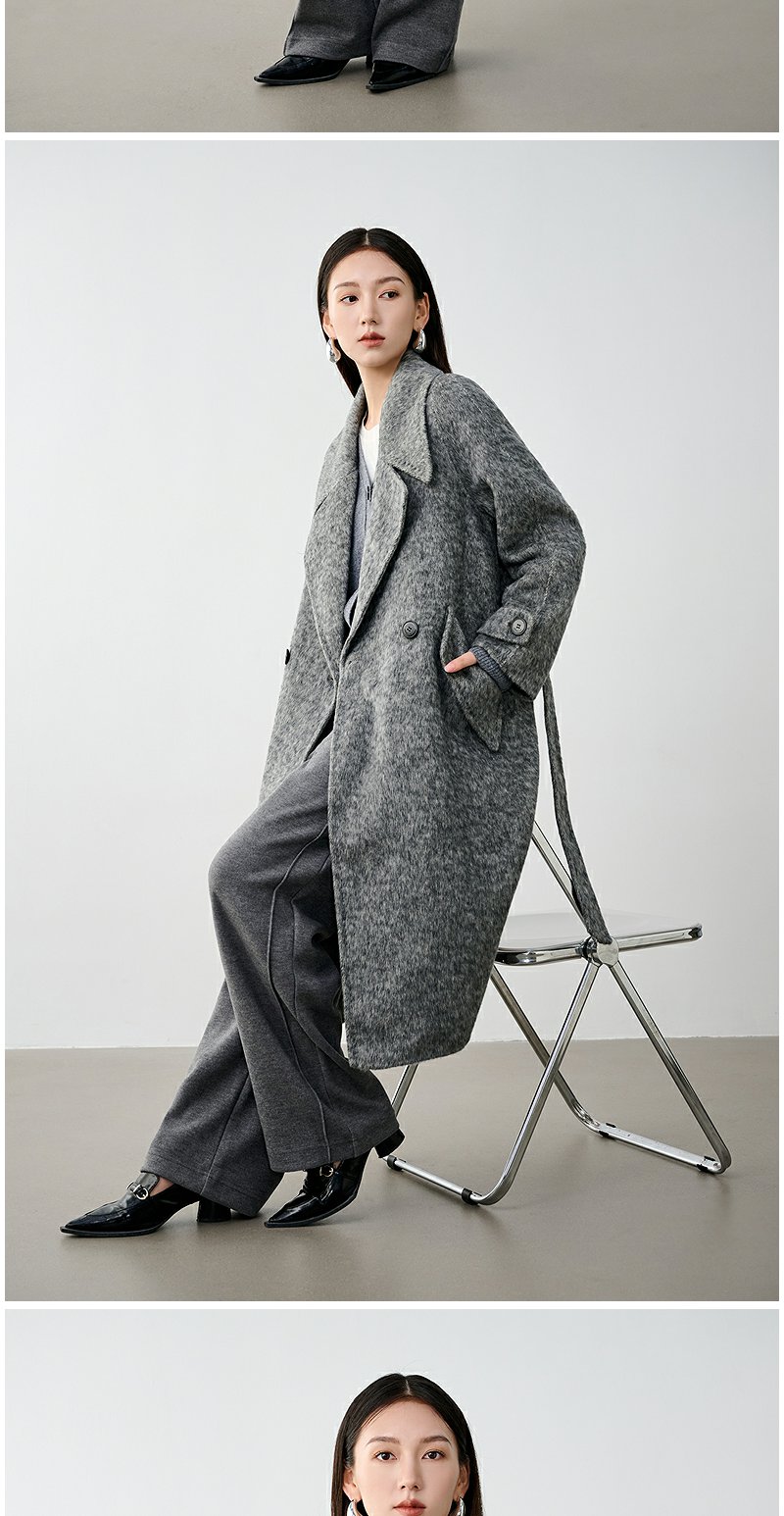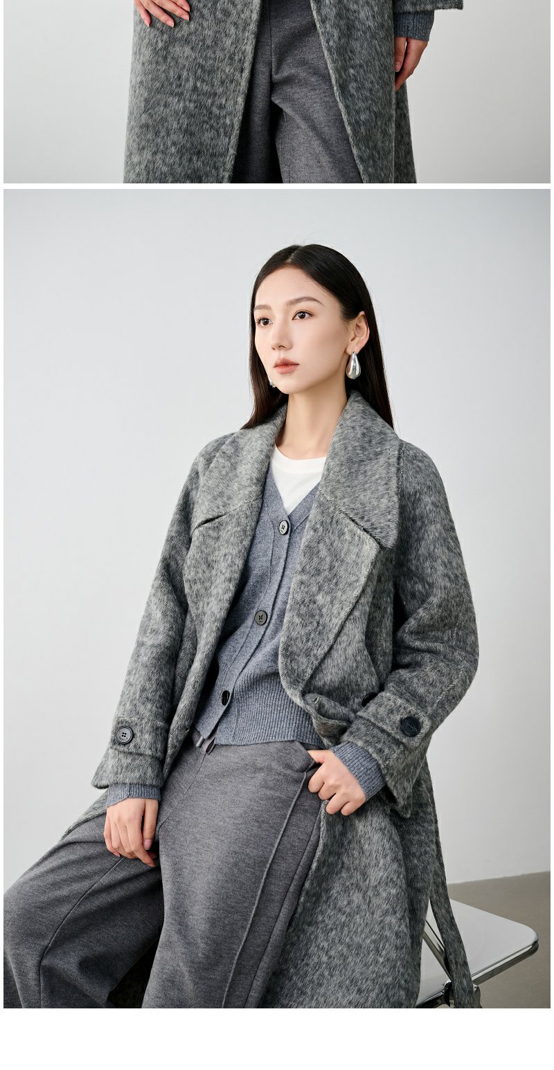 NEELLY纳俪商场同款冬季新款高级感绵羊毛兔毛双面呢大衣女灰色N24104N04401