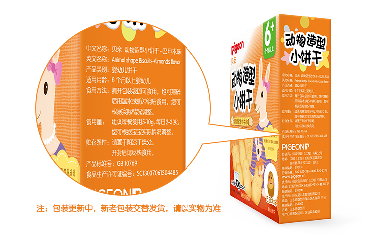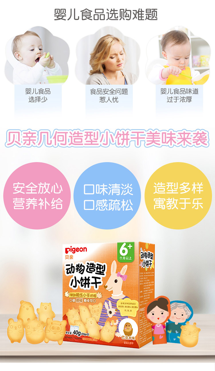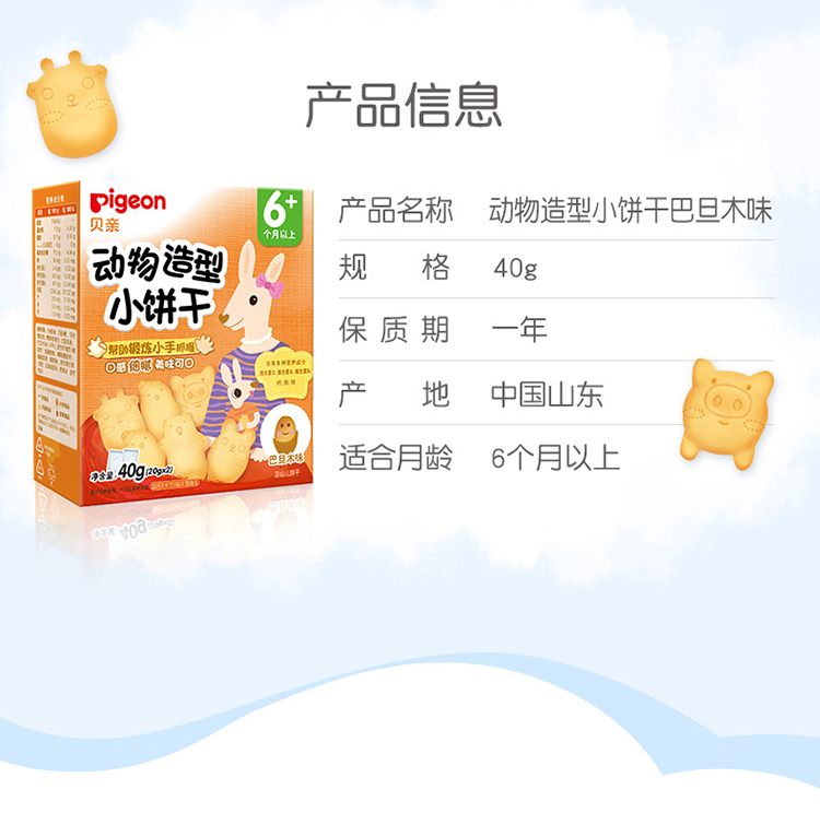 Pigeon贝亲婴儿辅食动物造型小饼干-巴旦木味40g(6个月以上)[FPLFB11]