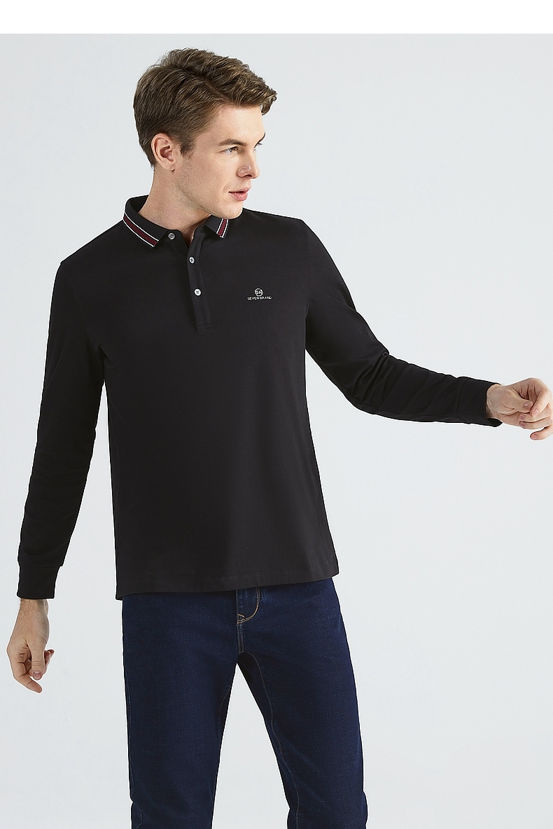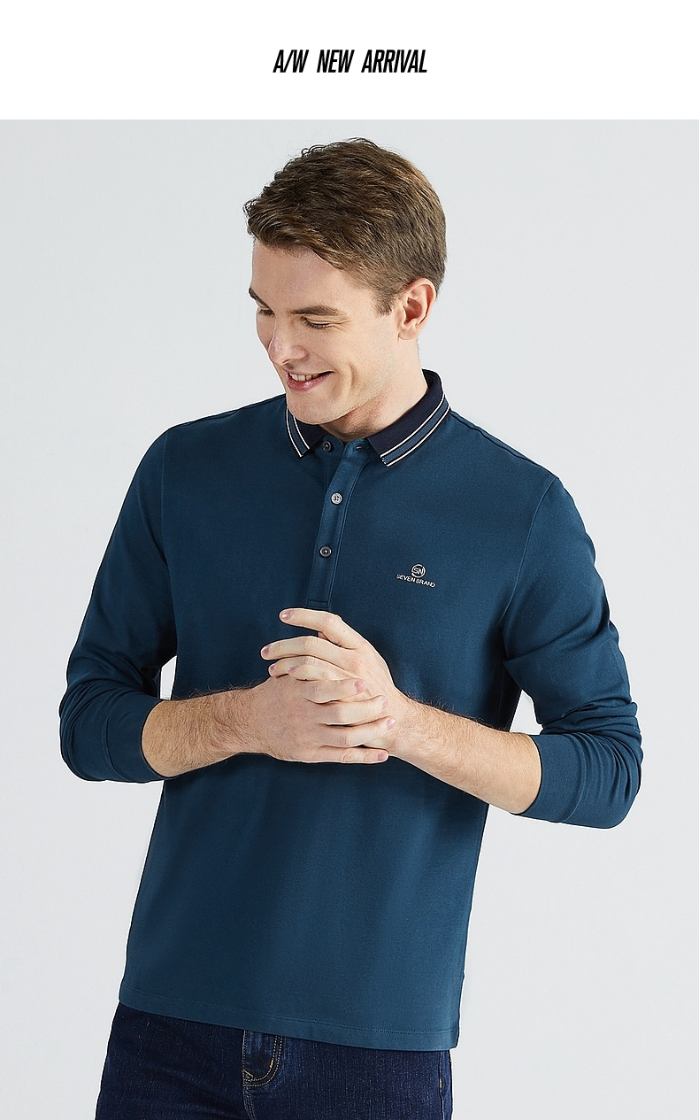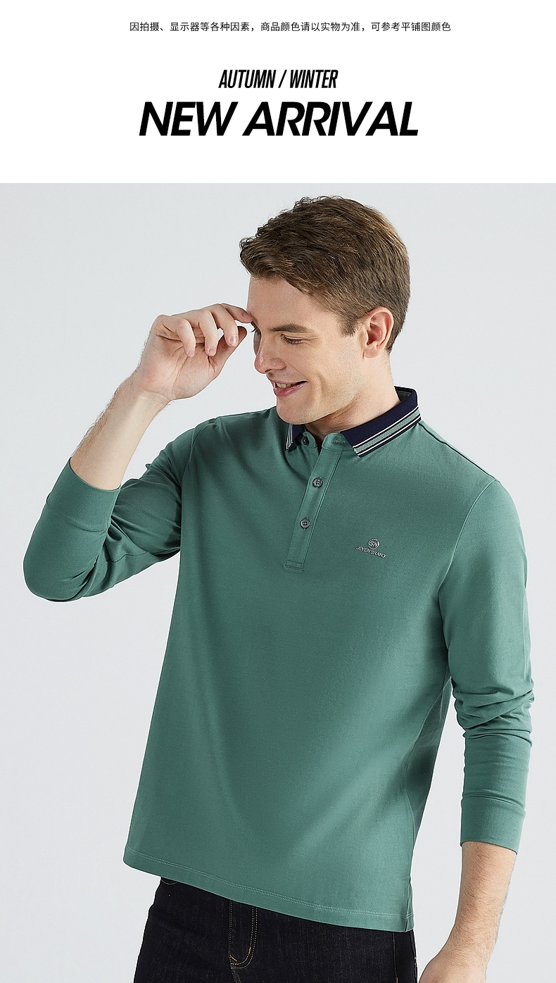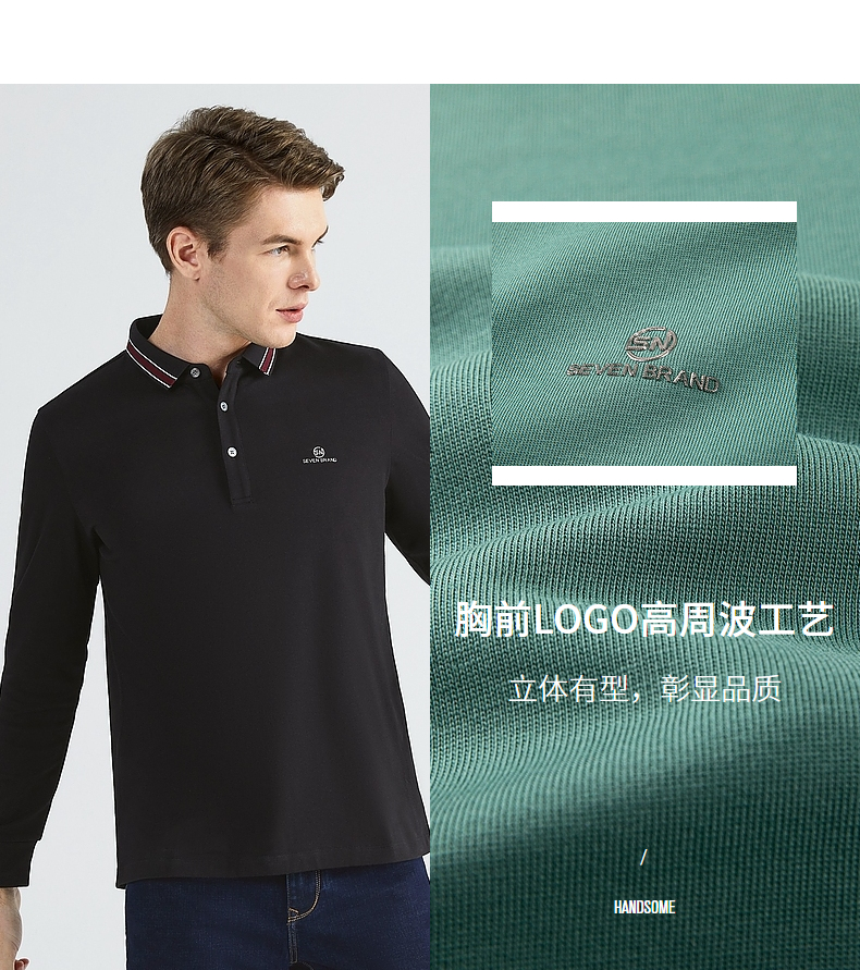 【火山岩】柒牌polo衫男长袖秋冬厚款撞色提花商务休闲保罗衫 123T70060
