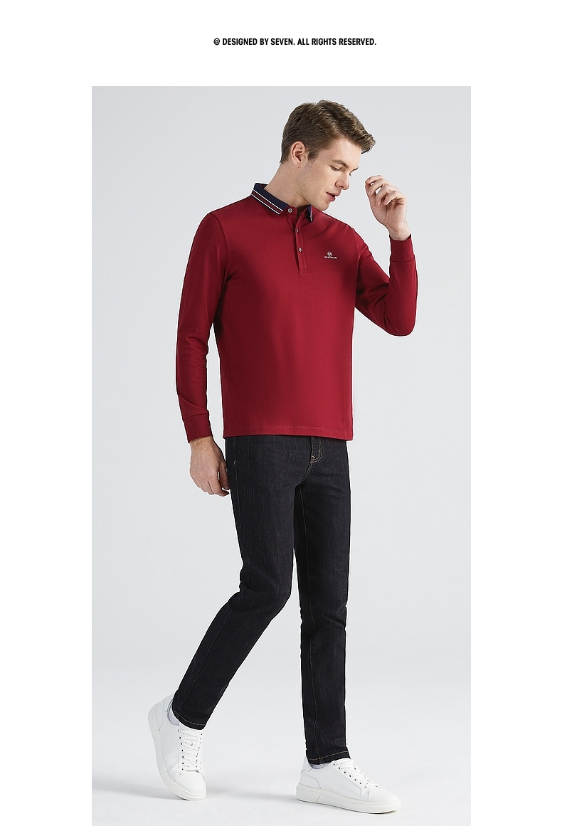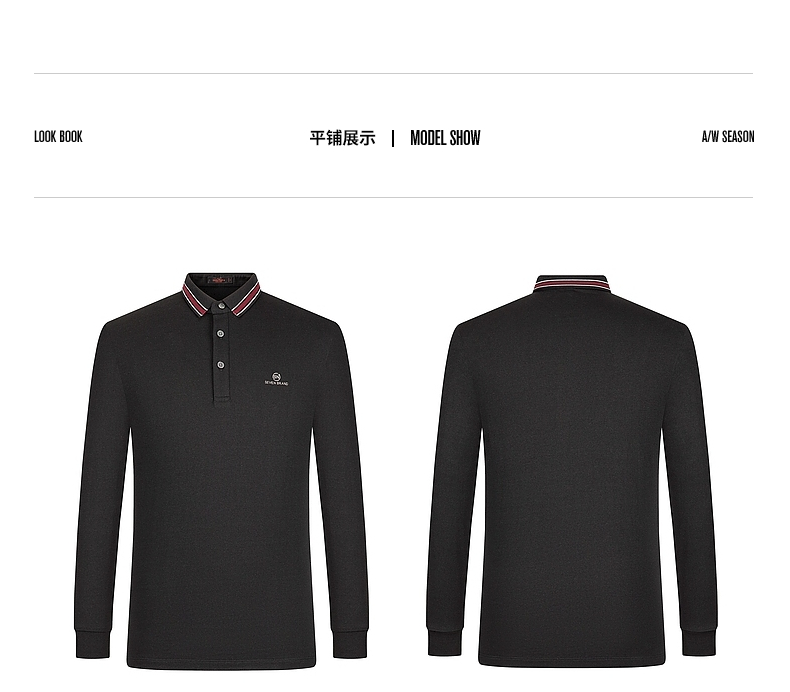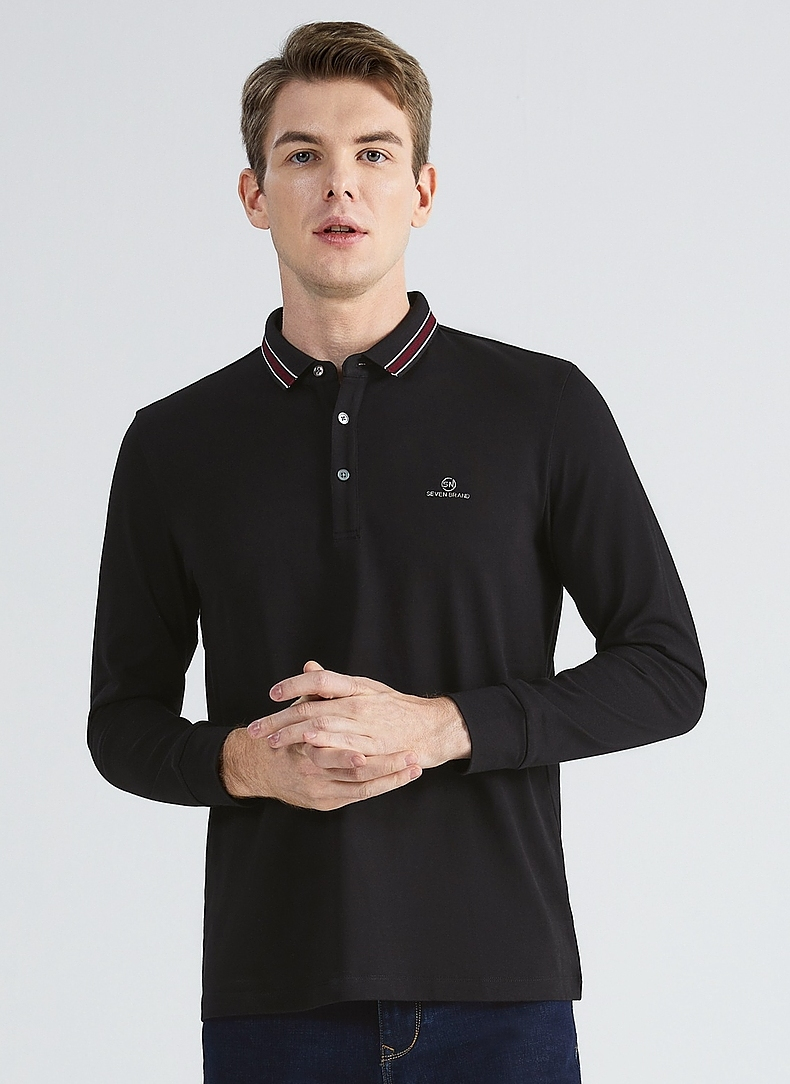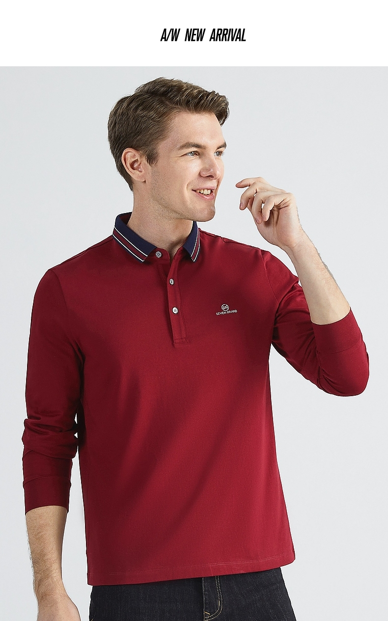 【火山岩】柒牌polo衫男长袖秋冬厚款撞色提花商务休闲保罗衫 123T70060