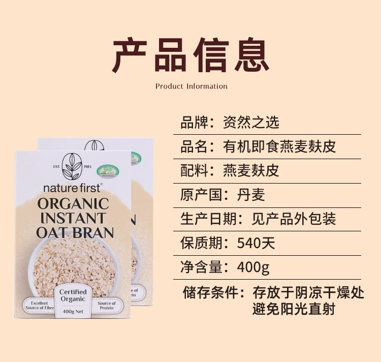 资然之选有机即食燕麦麸皮(冲调谷物制品)400g/033754