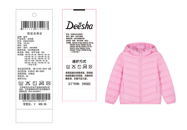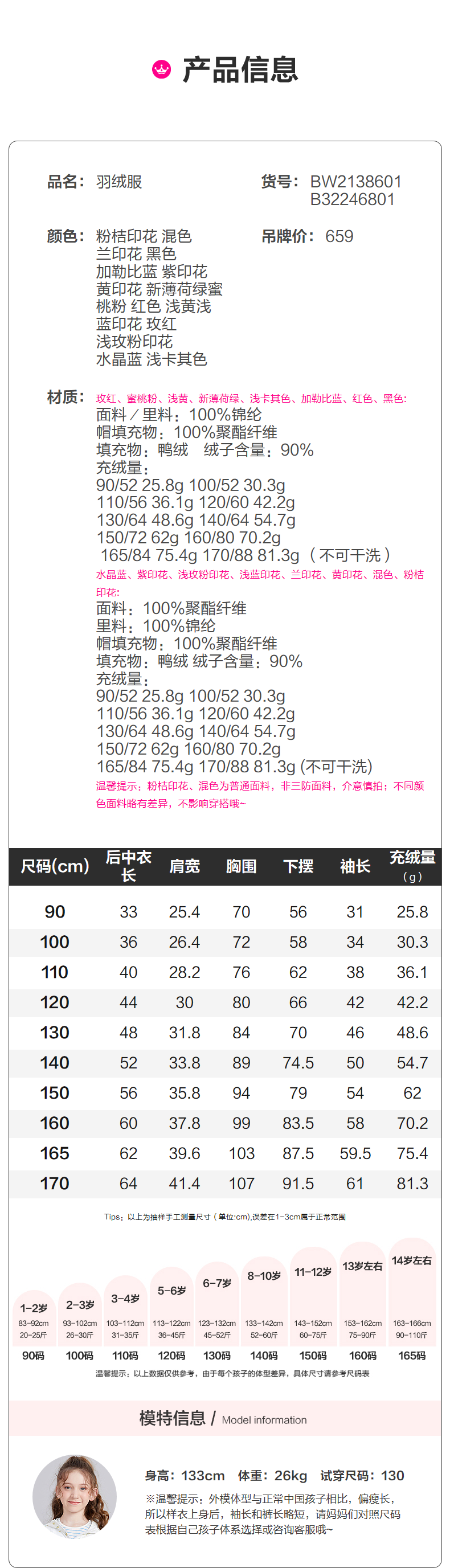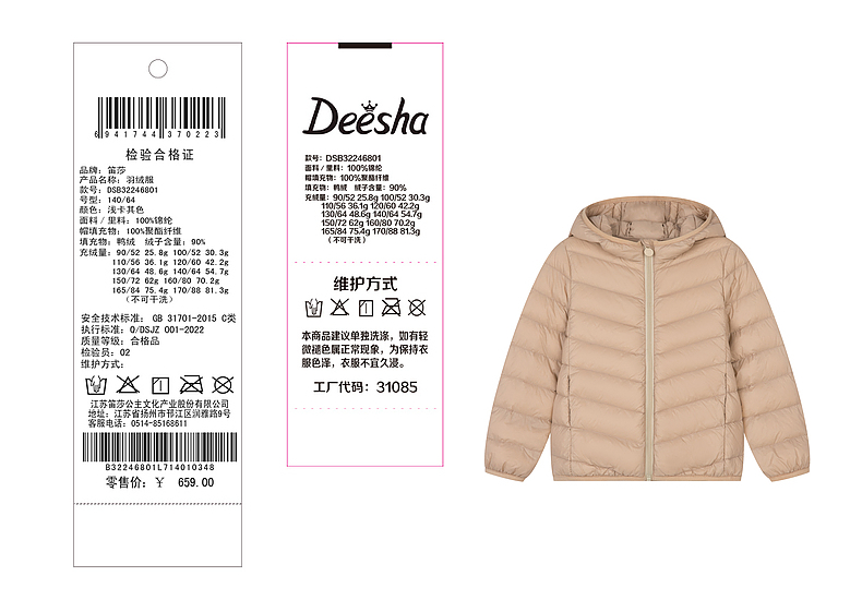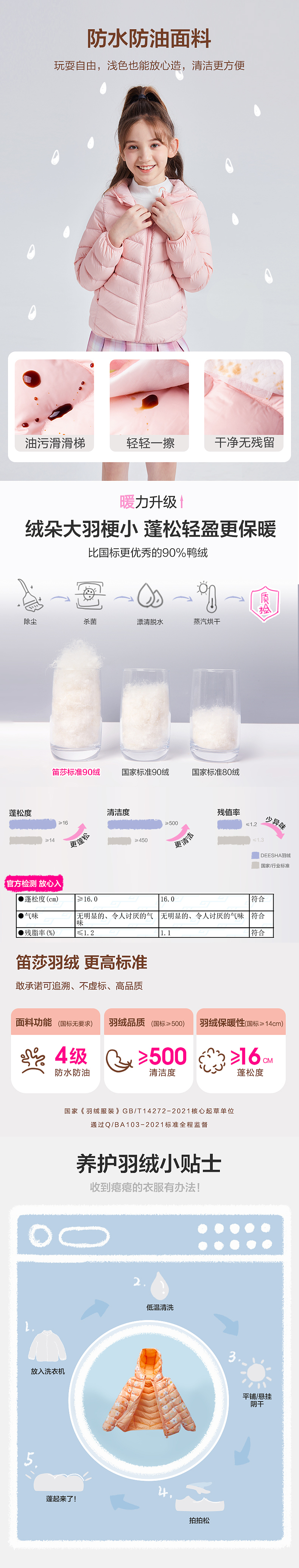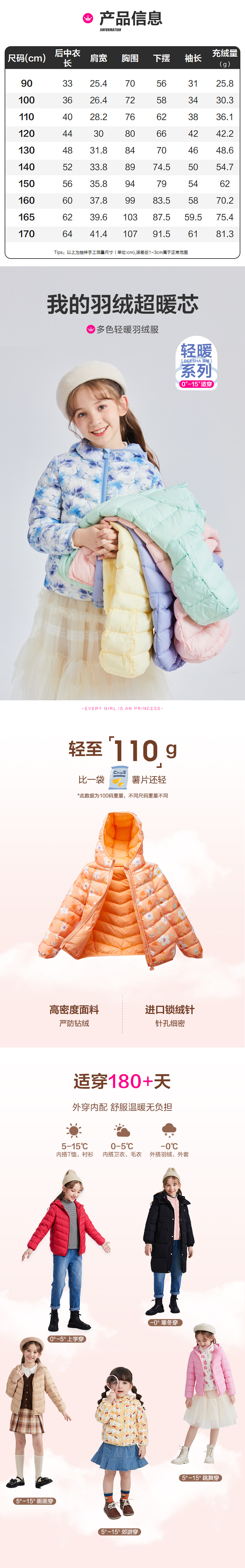 笛莎Deesha 女童羽绒服轻薄秋冬2023新款时尚轻薄羽绒服