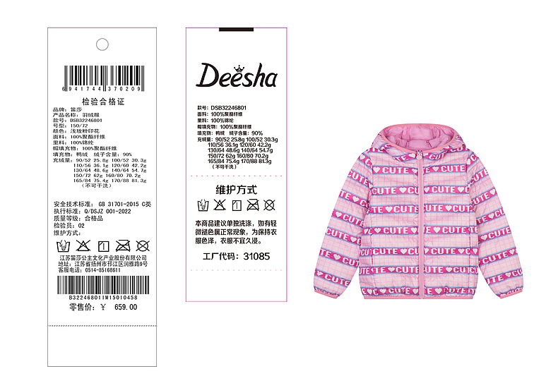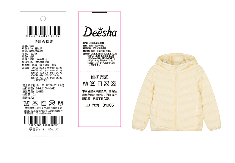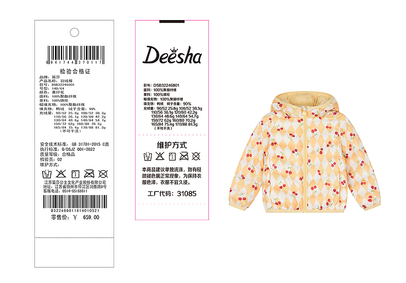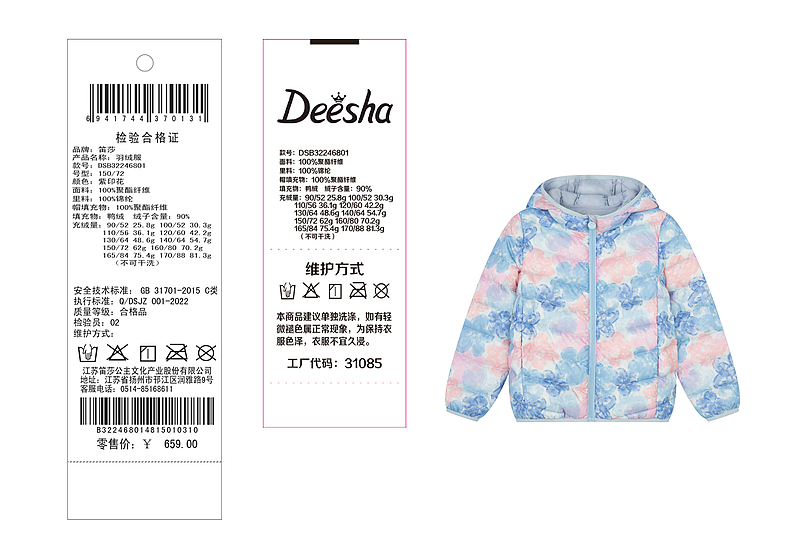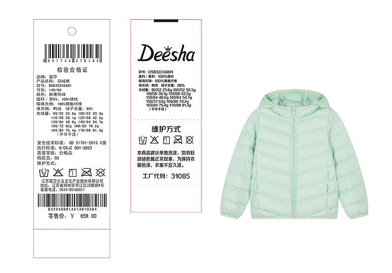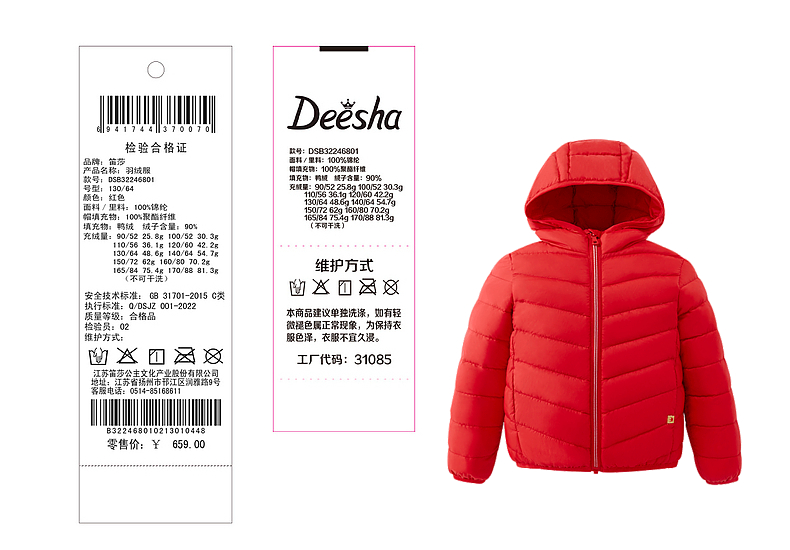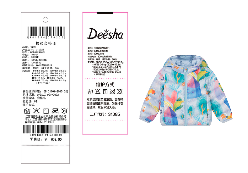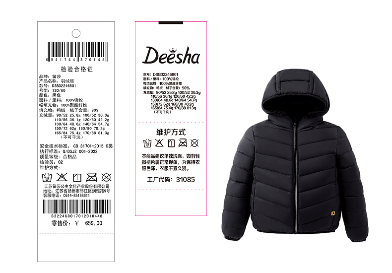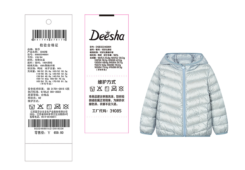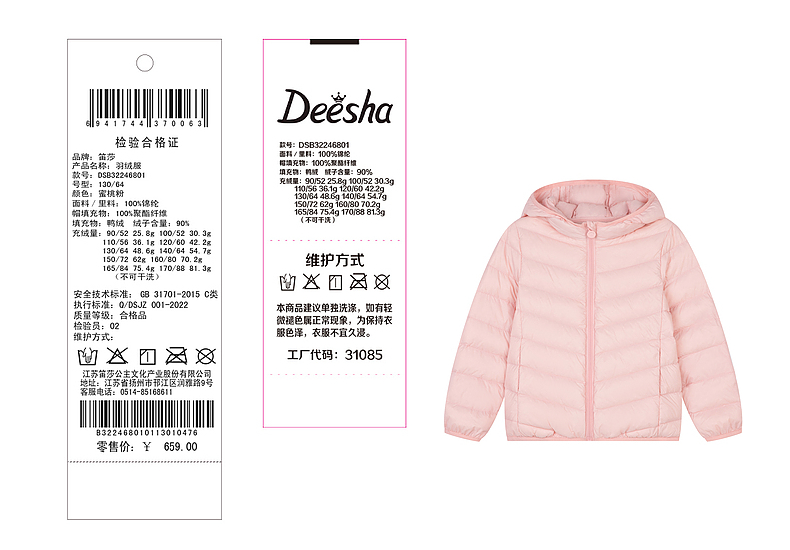 笛莎Deesha 女童羽绒服轻薄秋冬2023新款时尚轻薄羽绒服