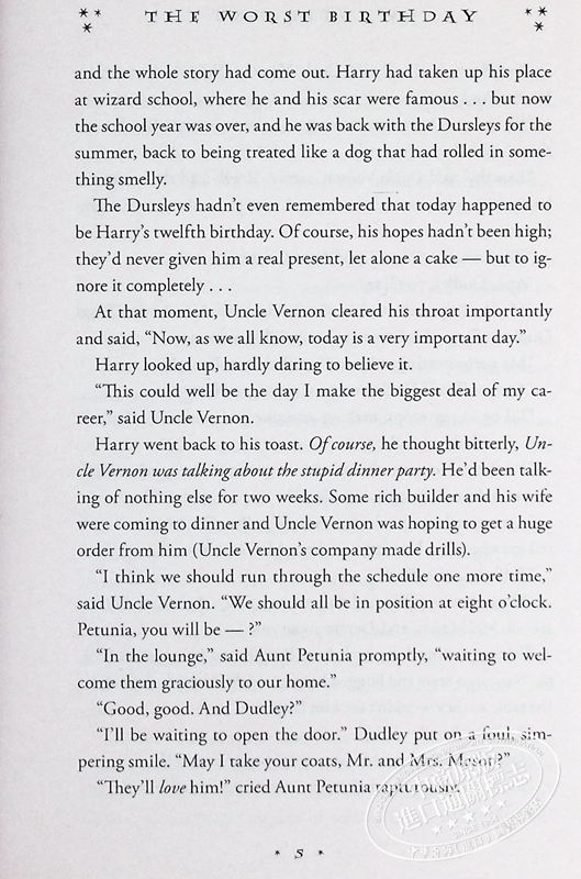 The Dursleys were so mean that hideous that summer that all Harry Potter wanted was to get back to the Hogwarts School for Witchcraft and Wizardry. But just as he's packing his bags, Harry receives a warning from a strange, impish creature named Dobby who says that if Harry Potter returns to Hogwarts, disaster will strike.