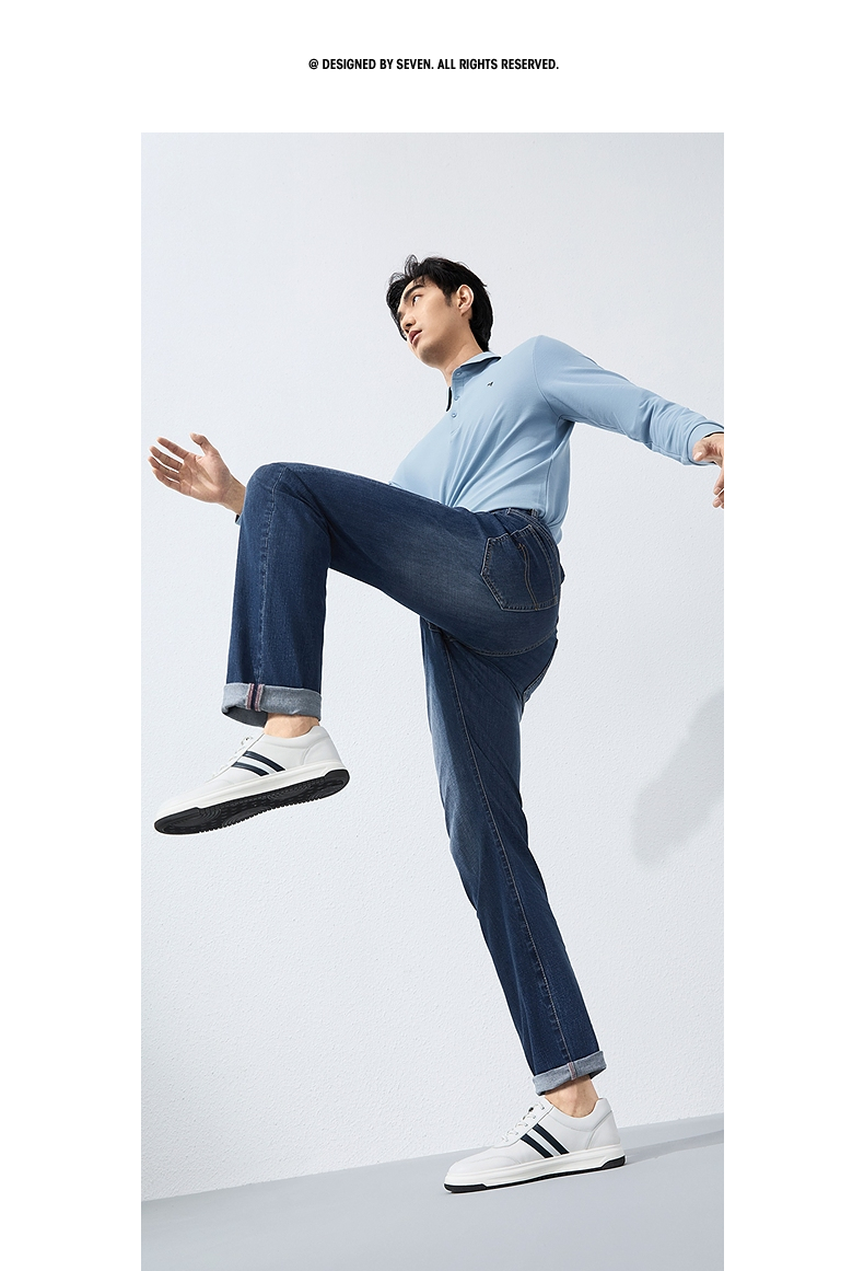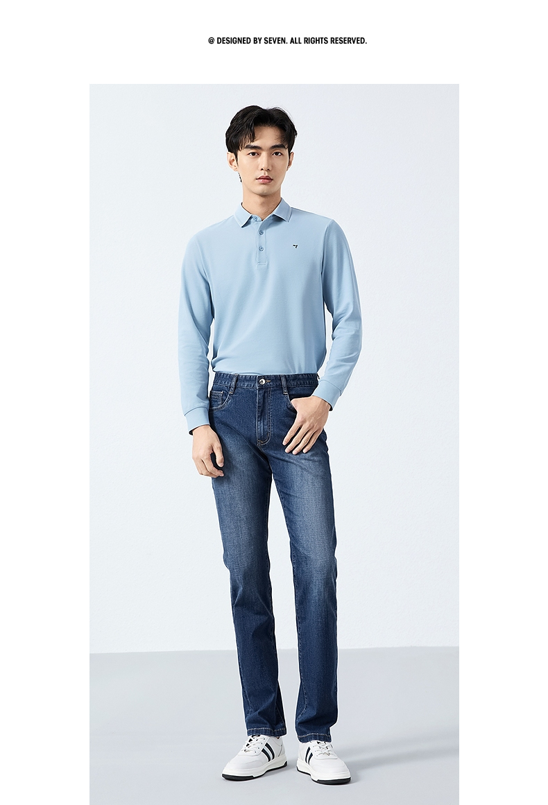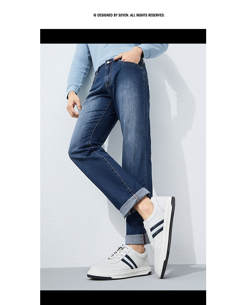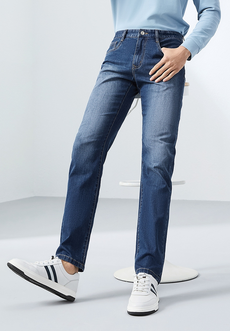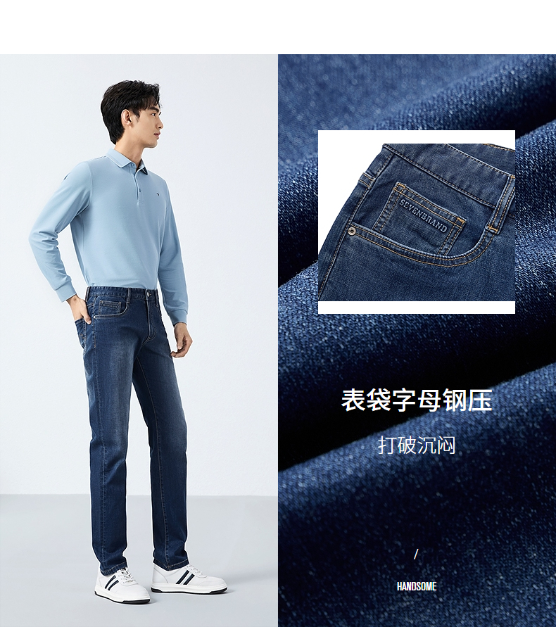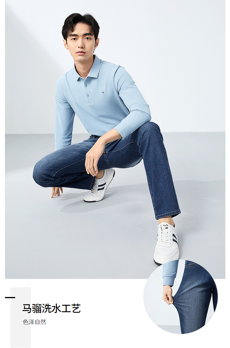 柒牌男装牛仔裤男士2025春季新款时尚潮流百搭中腰水洗直筒长裤子128H72690