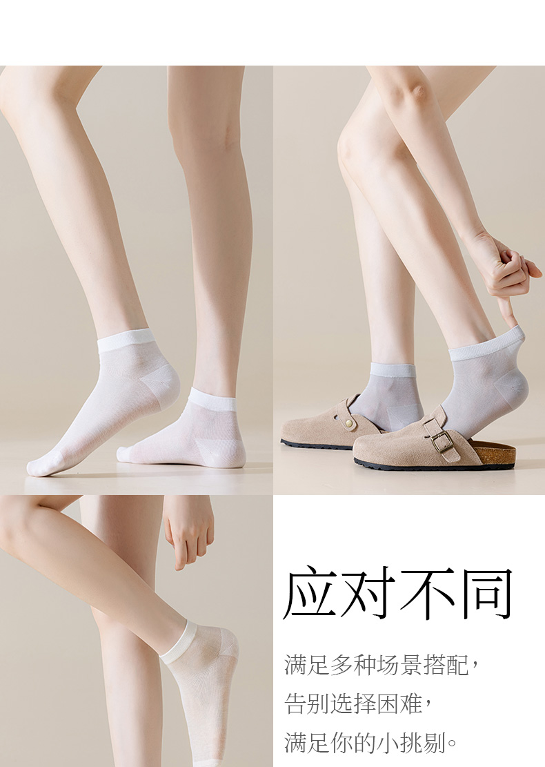 【9双超值装】酷艾妮超薄桑蚕丝凉感短袜 添加桑蚕丝混纺自带凉感超透气不闷汗 弹力十足不勒脚 多巴胺颜色清新好搭
