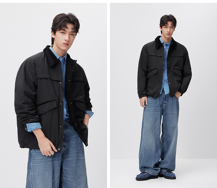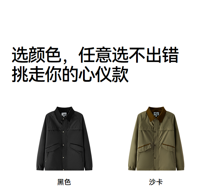 森马棉服男春季轻质猎装撞色灯芯绒外套户外宽松翻领温暖轻盈上衣