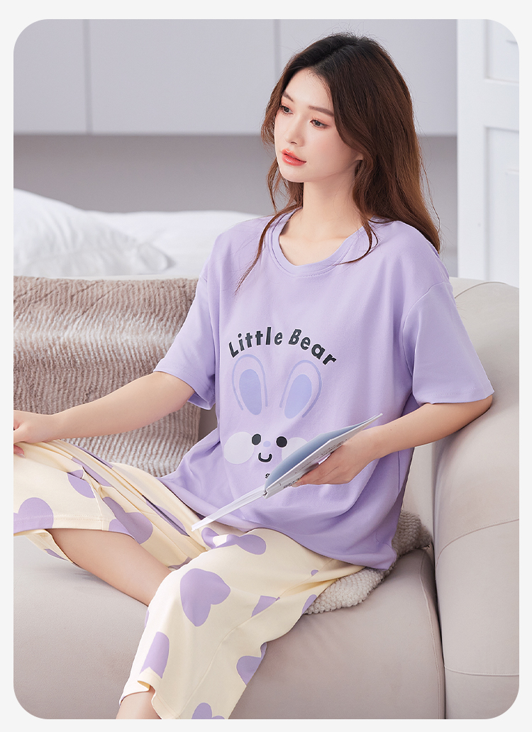 忽然今夏 家居服(VIP) 牛奶丝面料夏季轻薄家居服带胸垫放凸点短袖家居服套装